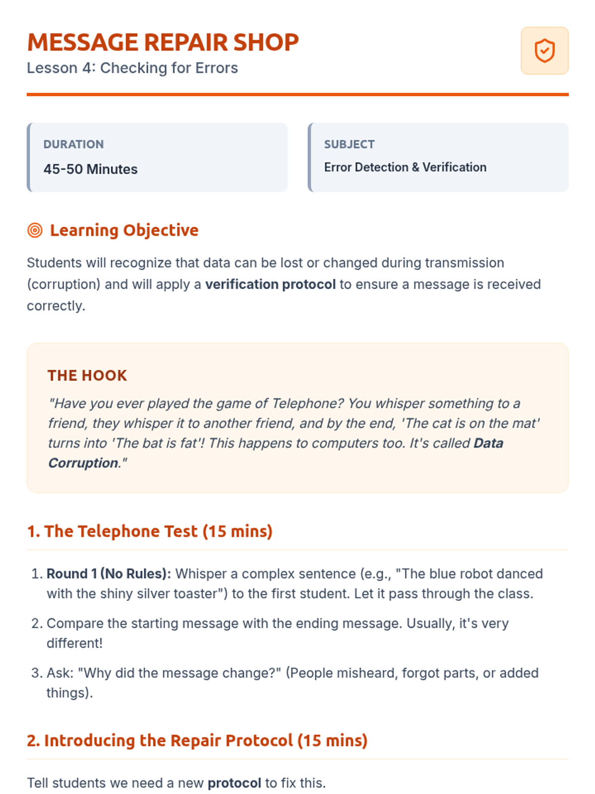 Students explore how data can get corrupted and learn simple methods for checking and verifying information.