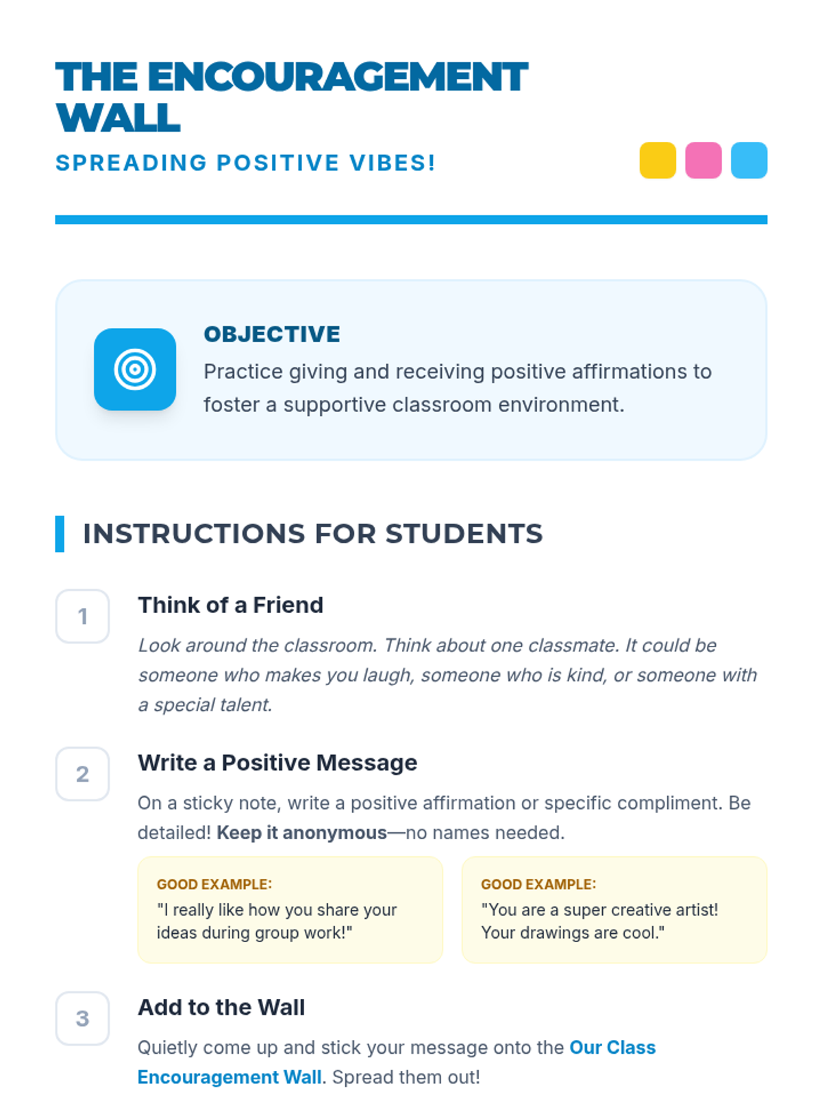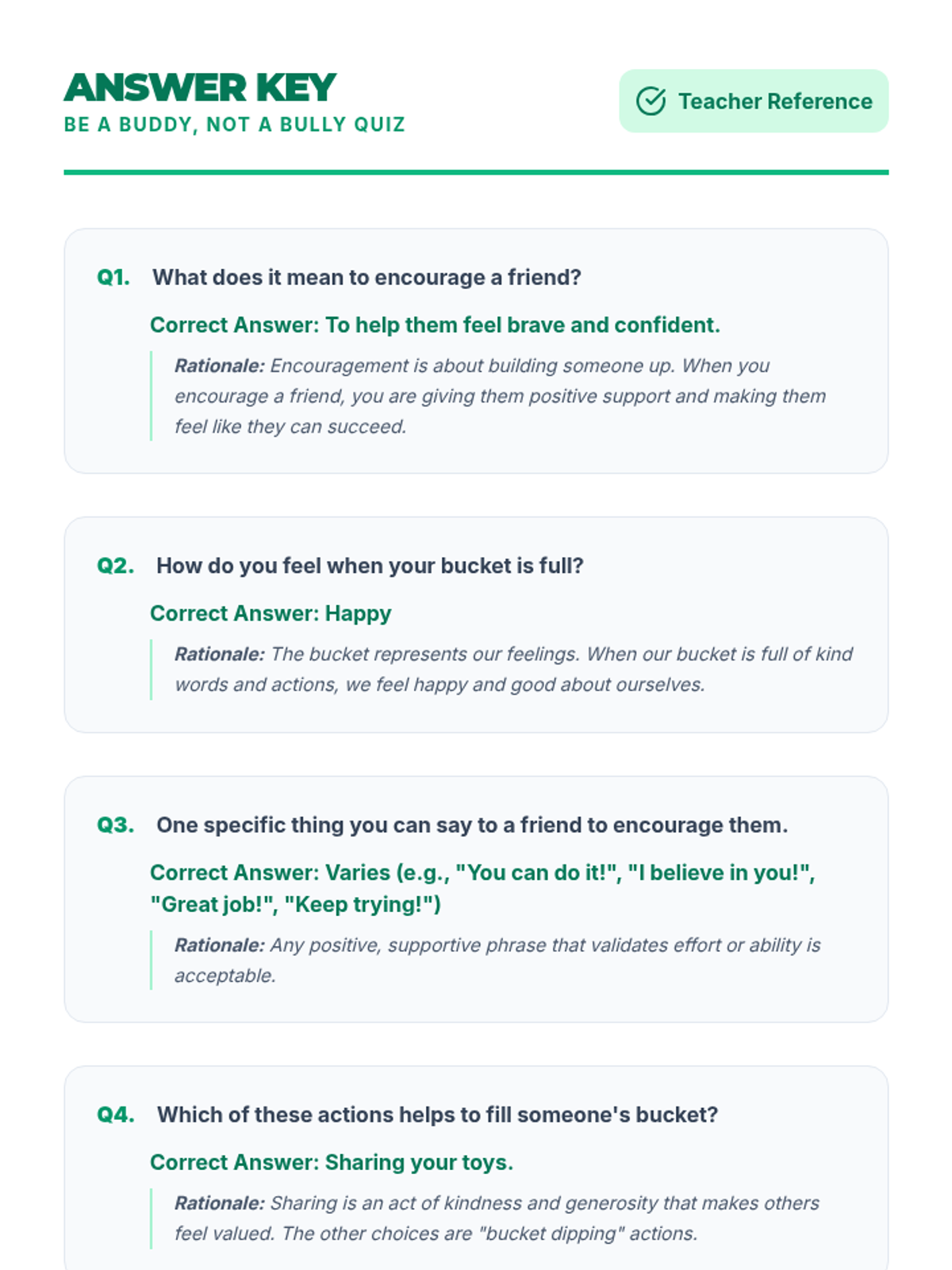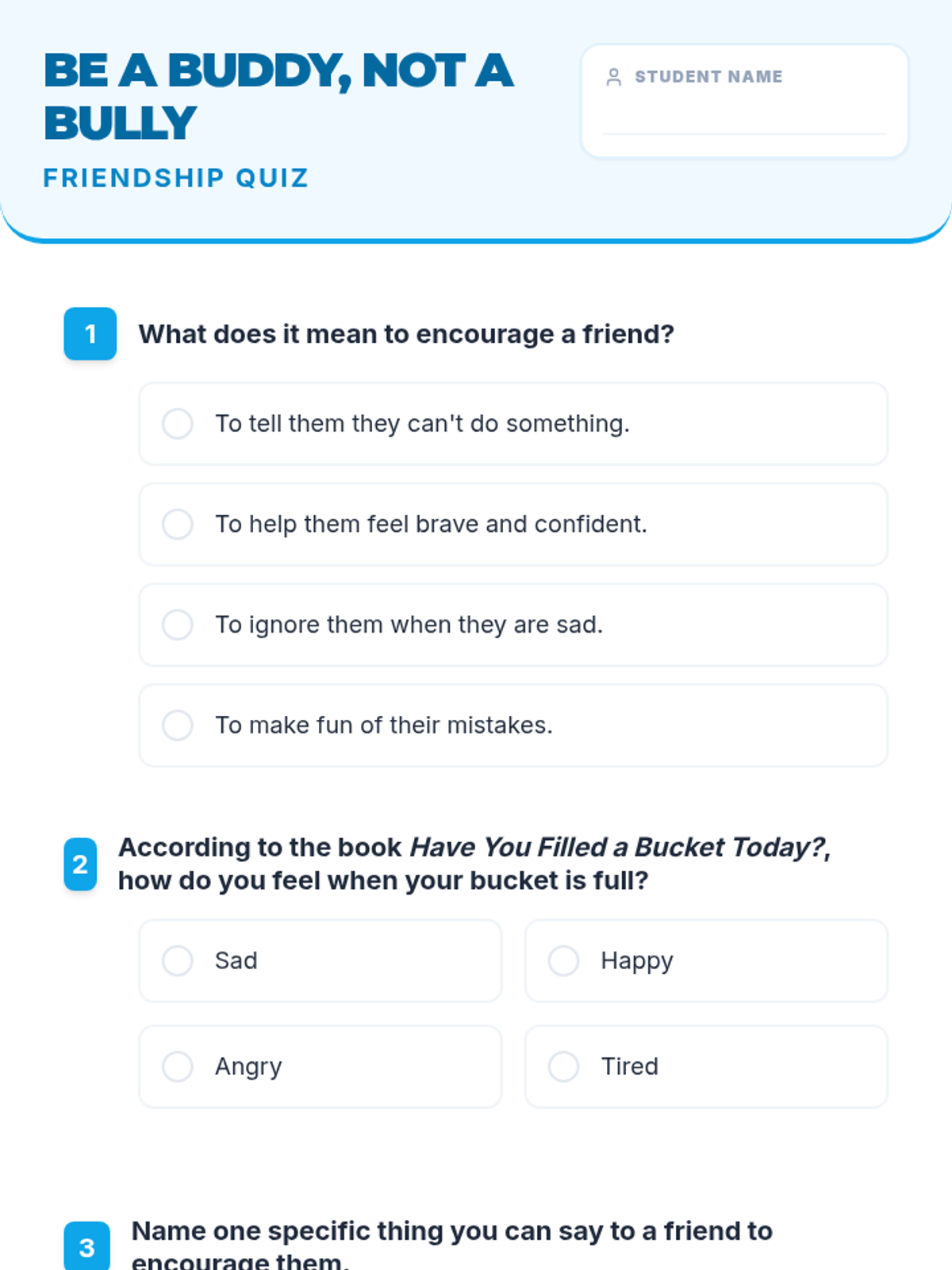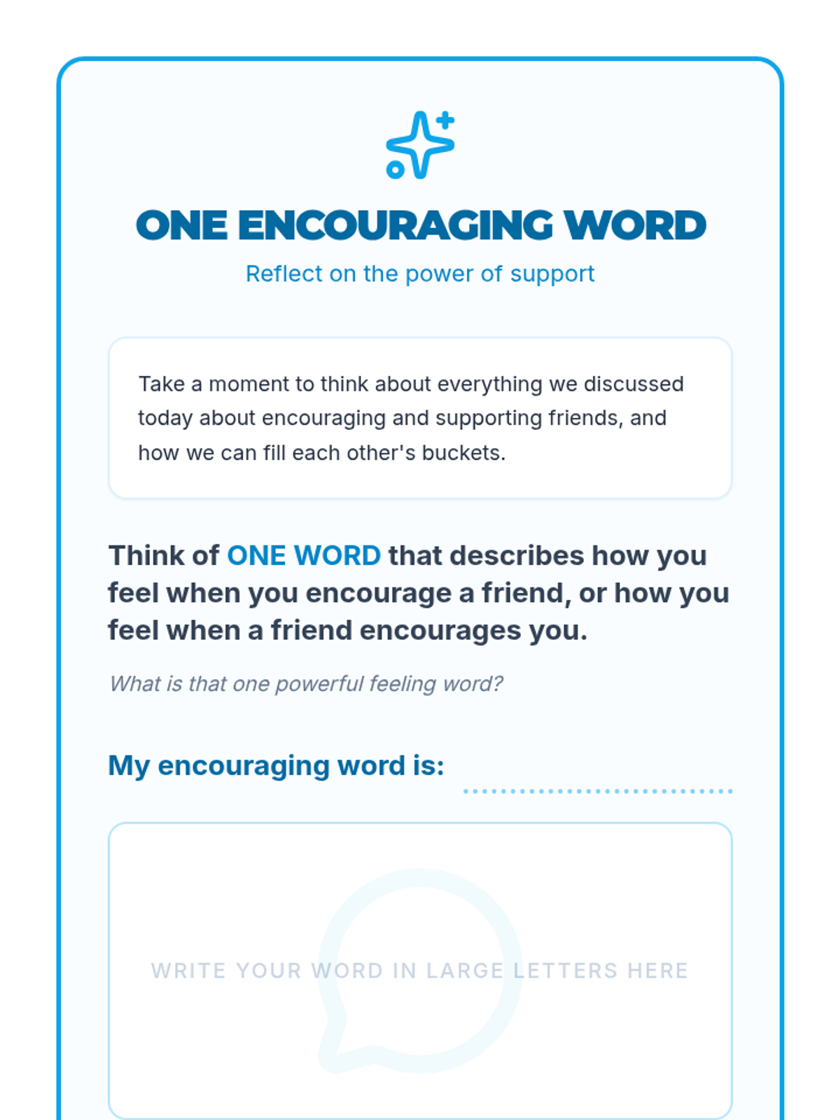 A 45-minute social-emotional learning lesson for grades 3-6 focused on building positive friendships through encouragement, celebration, and the concept of 'bucket filling.' Students engage in discussions, a video, a class activity, and creative reflection.
