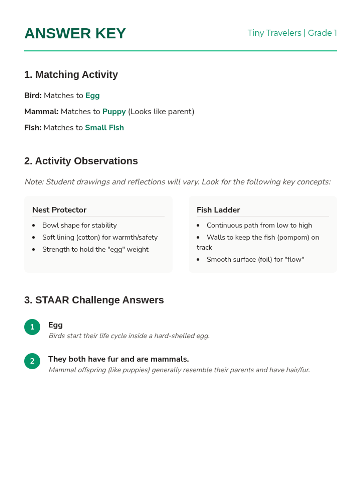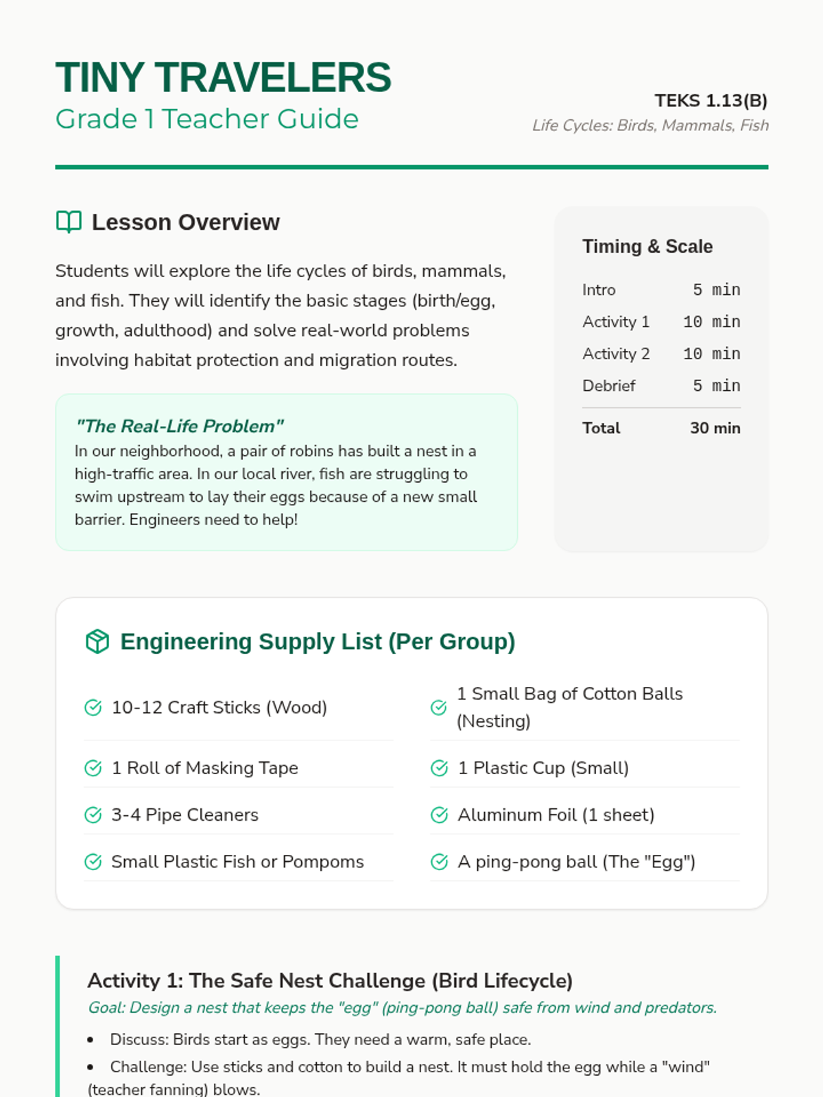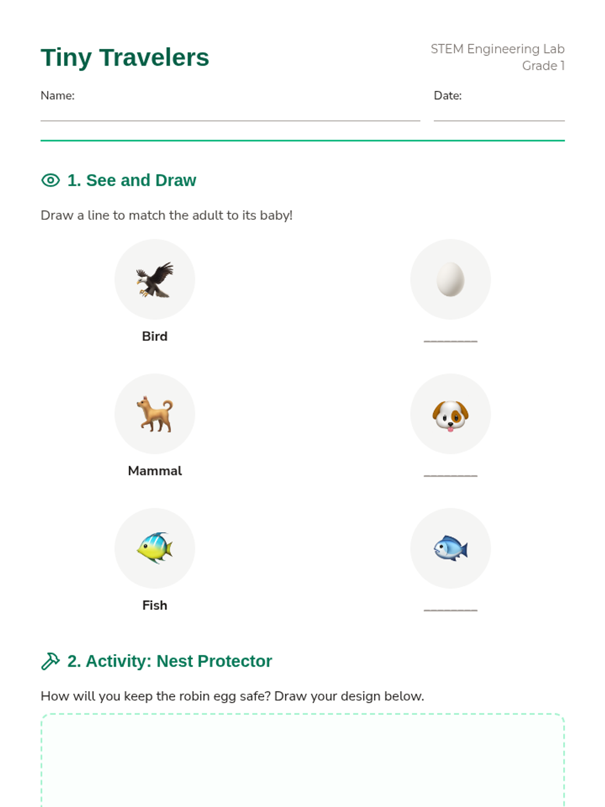 Students explore the life cycles of birds, mammals, and fish through engineering challenges focused on protection and migration.