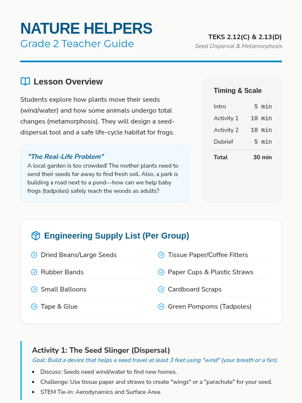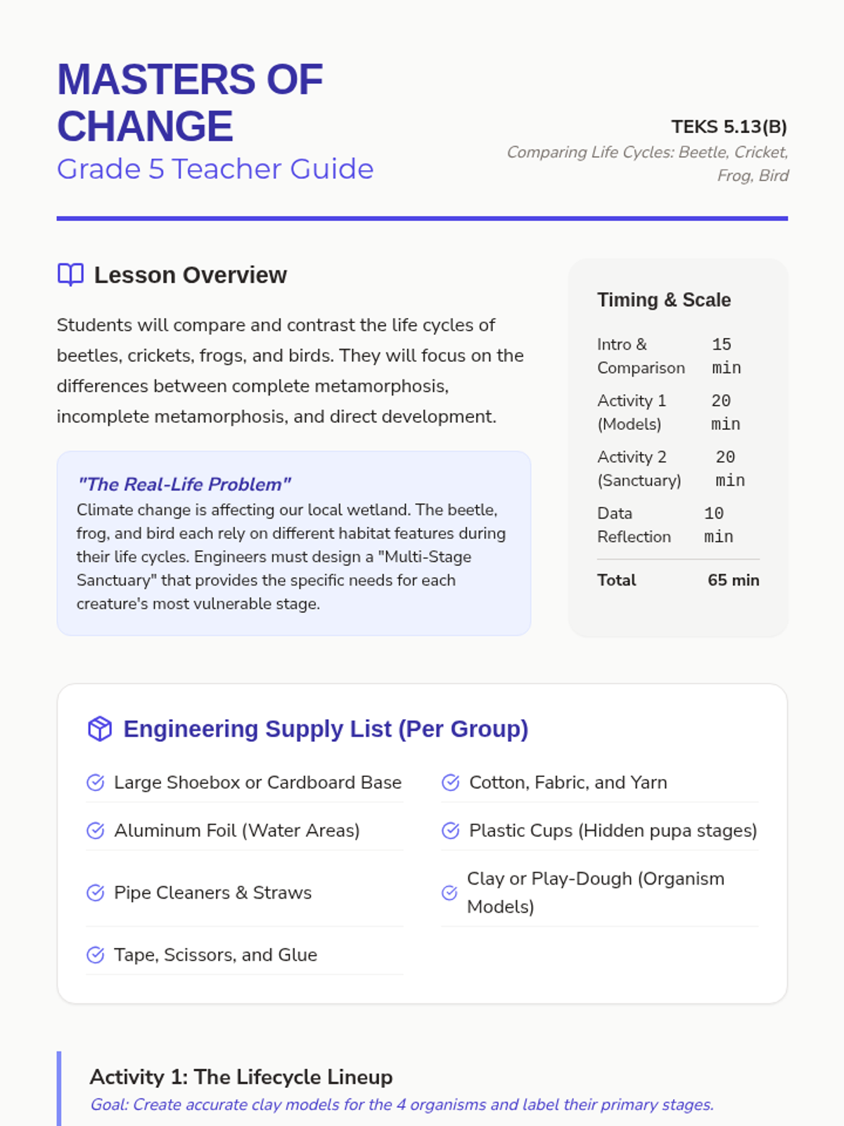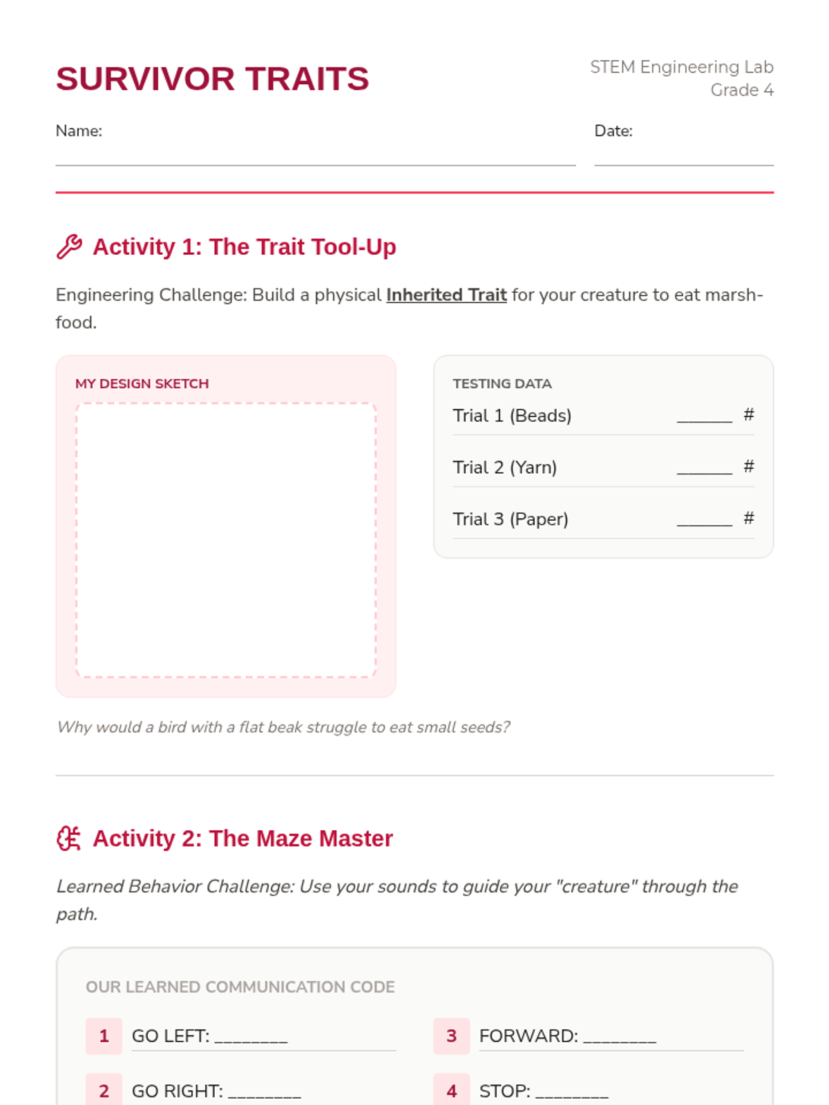 Students explore the life cycles of birds, mammals, and fish through engineering challenges focused on protection and migration.