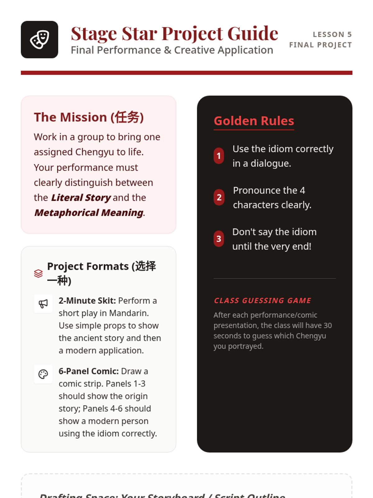 Groups enact skits or create comic strips that demonstrate the literal vs. figurative meaning of assigned idioms. The class guesses the idiom based on the performance.