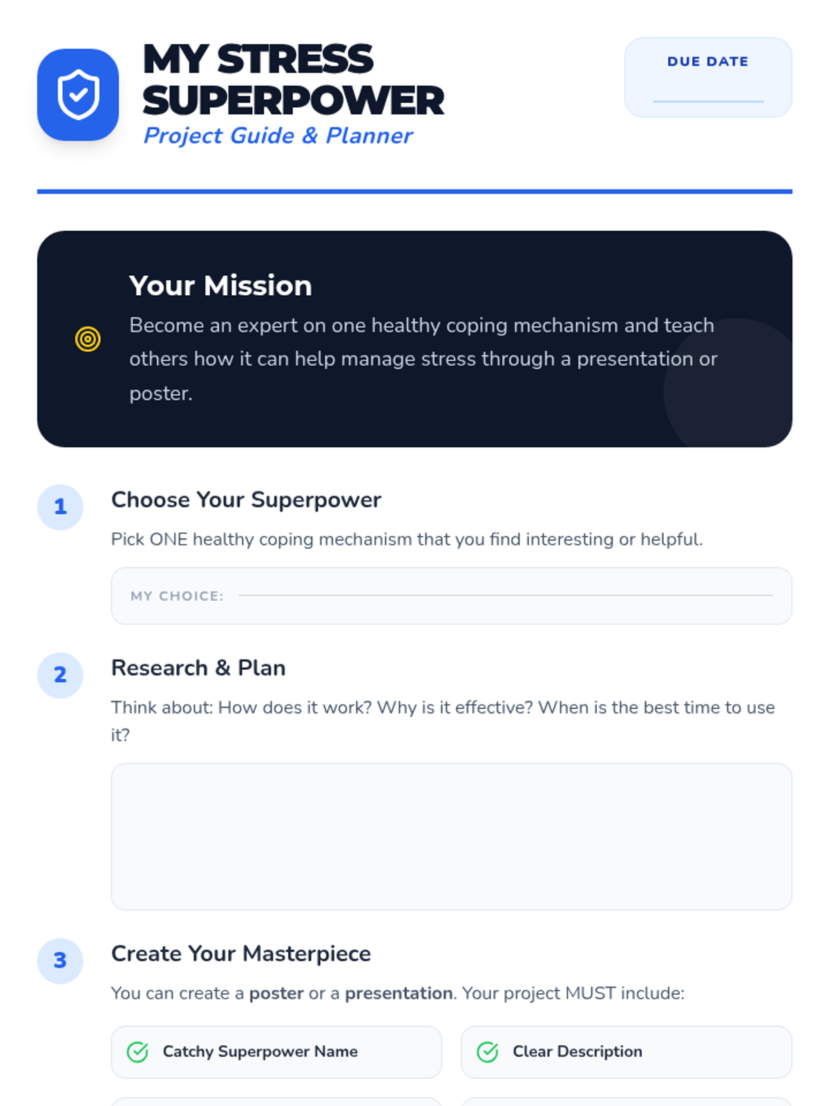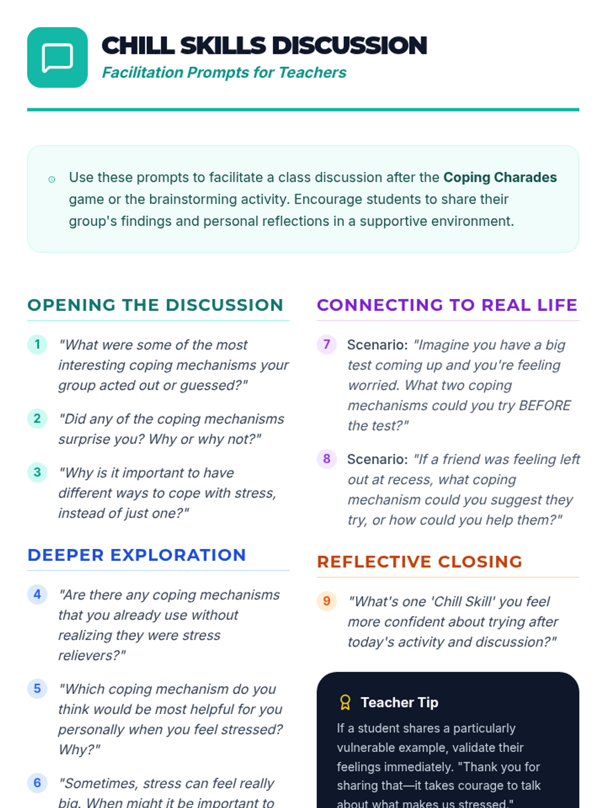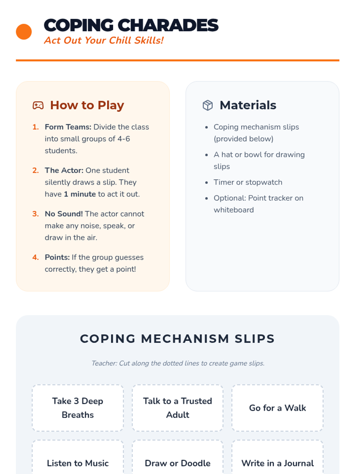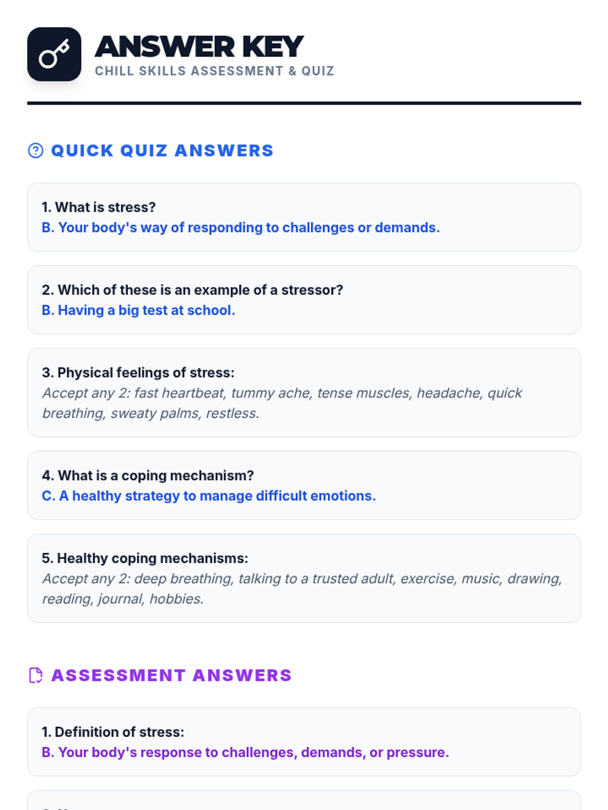 A 60-minute lesson for 5th and 6th graders that introduces the concept of stress, helps identify personal stressors, and teaches healthy coping mechanisms through interactive activities and a creative project.