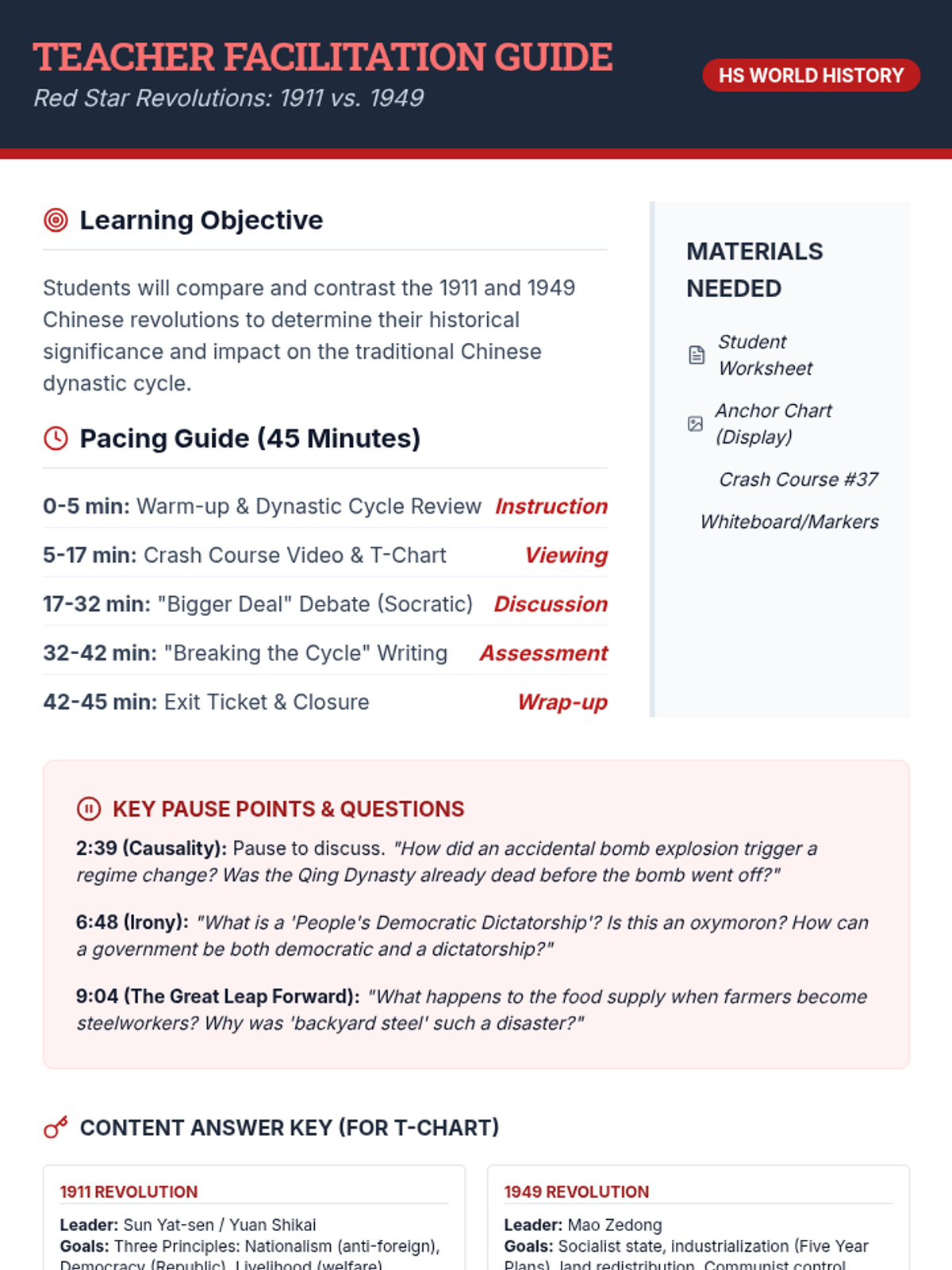 This lesson explores the transformative 20th-century revolutions in China, comparing the fall of the Qing Dynasty (1911) with the rise of the People's Republic (1949). Students analyze John Green's argument regarding historical continuity versus radical change.