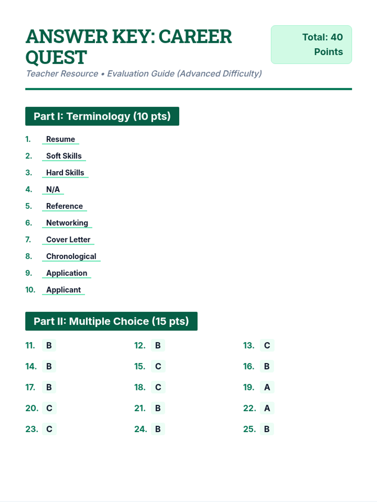 A final assessment module to evaluate student understanding of career readiness concepts and application proficiency.