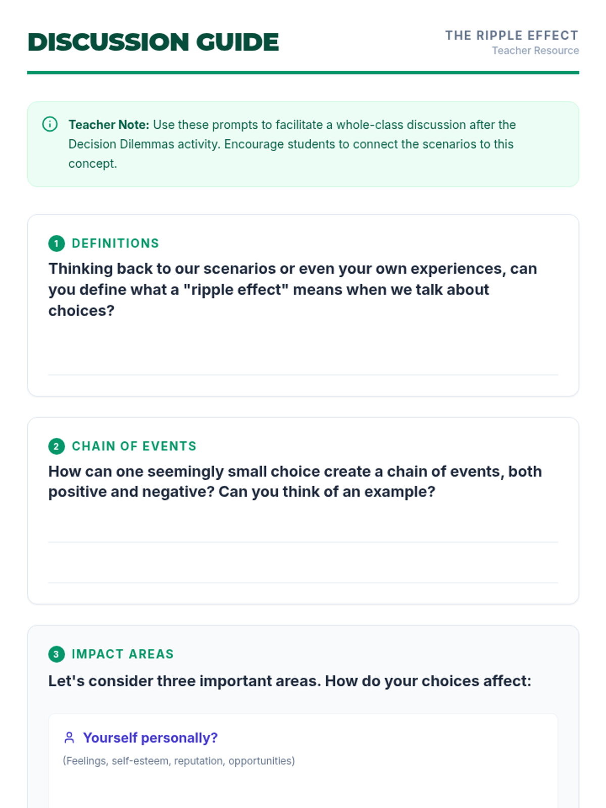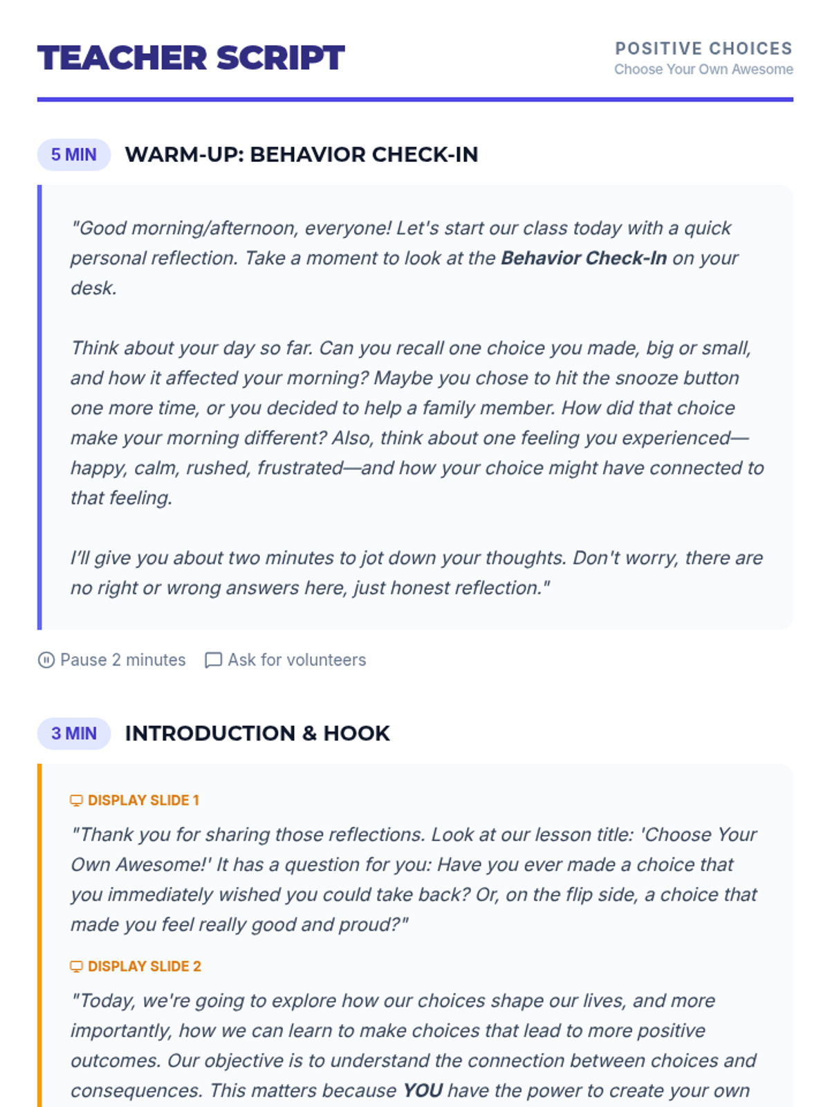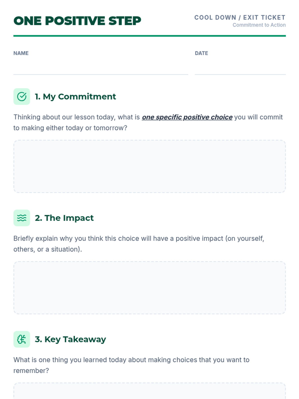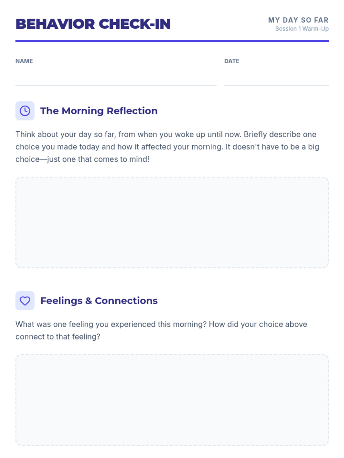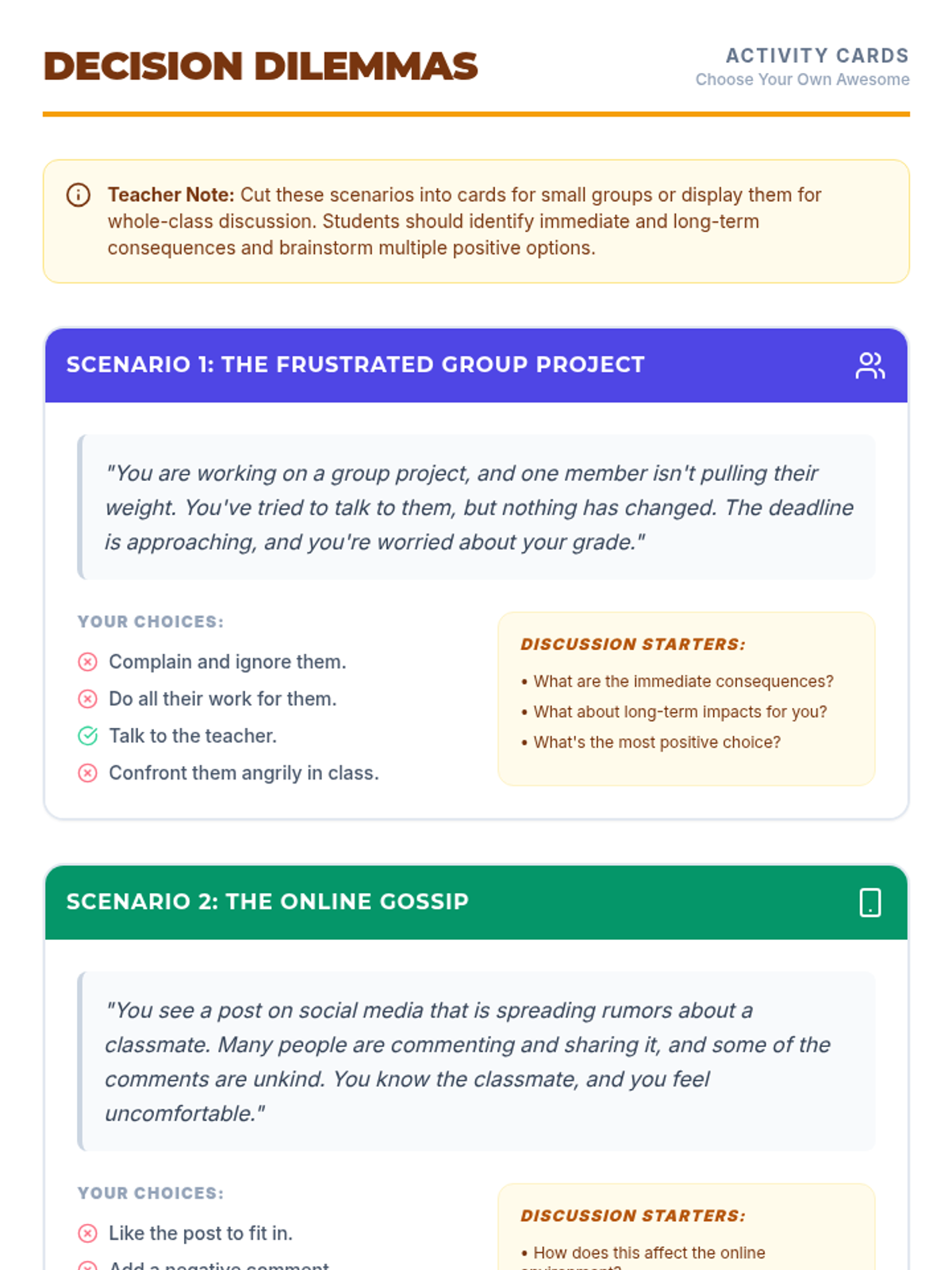 A middle school behavior lesson focused on self-awareness and decision-making skills, helping students understand the connection between their choices and the outcomes in their lives.