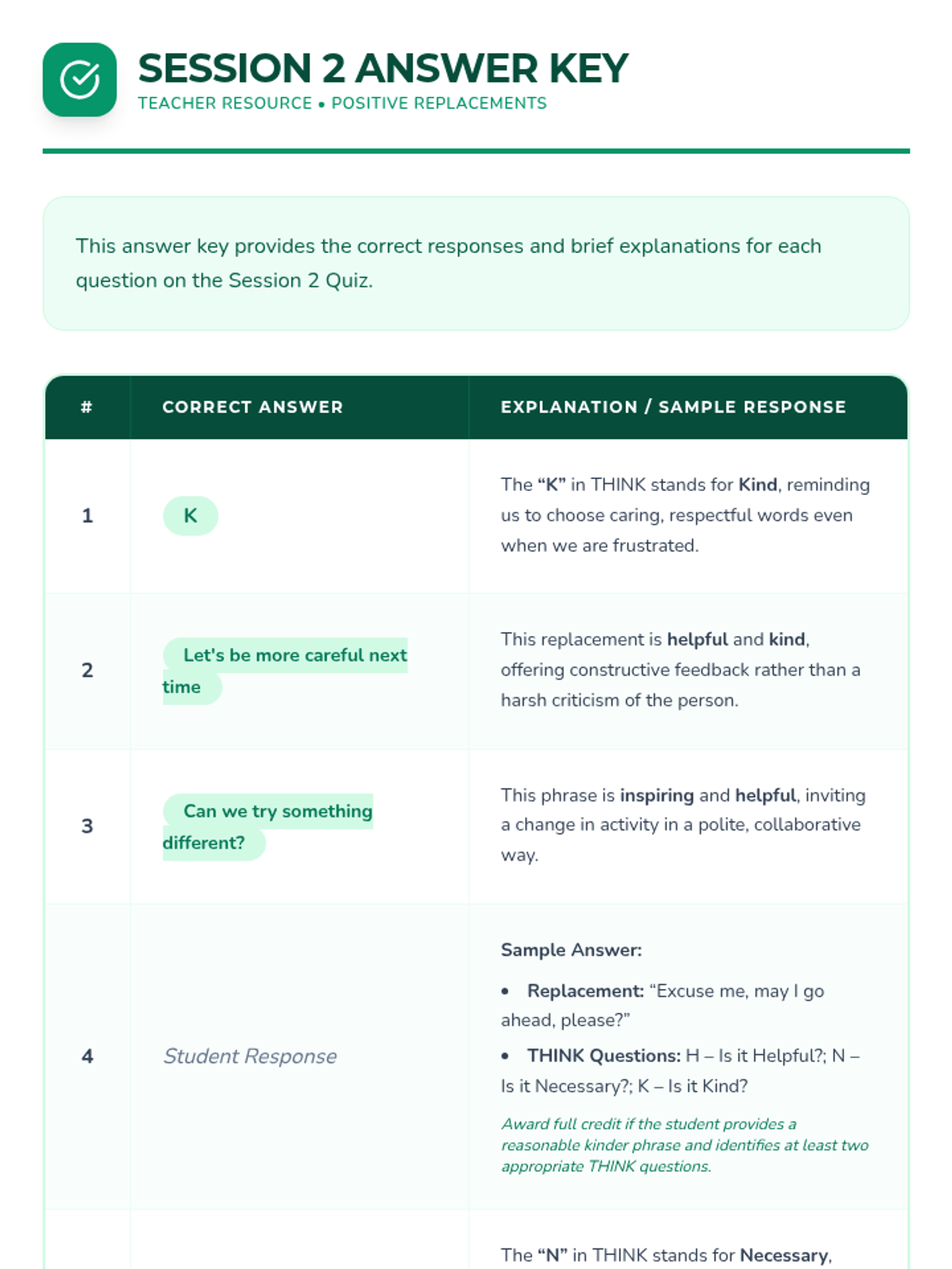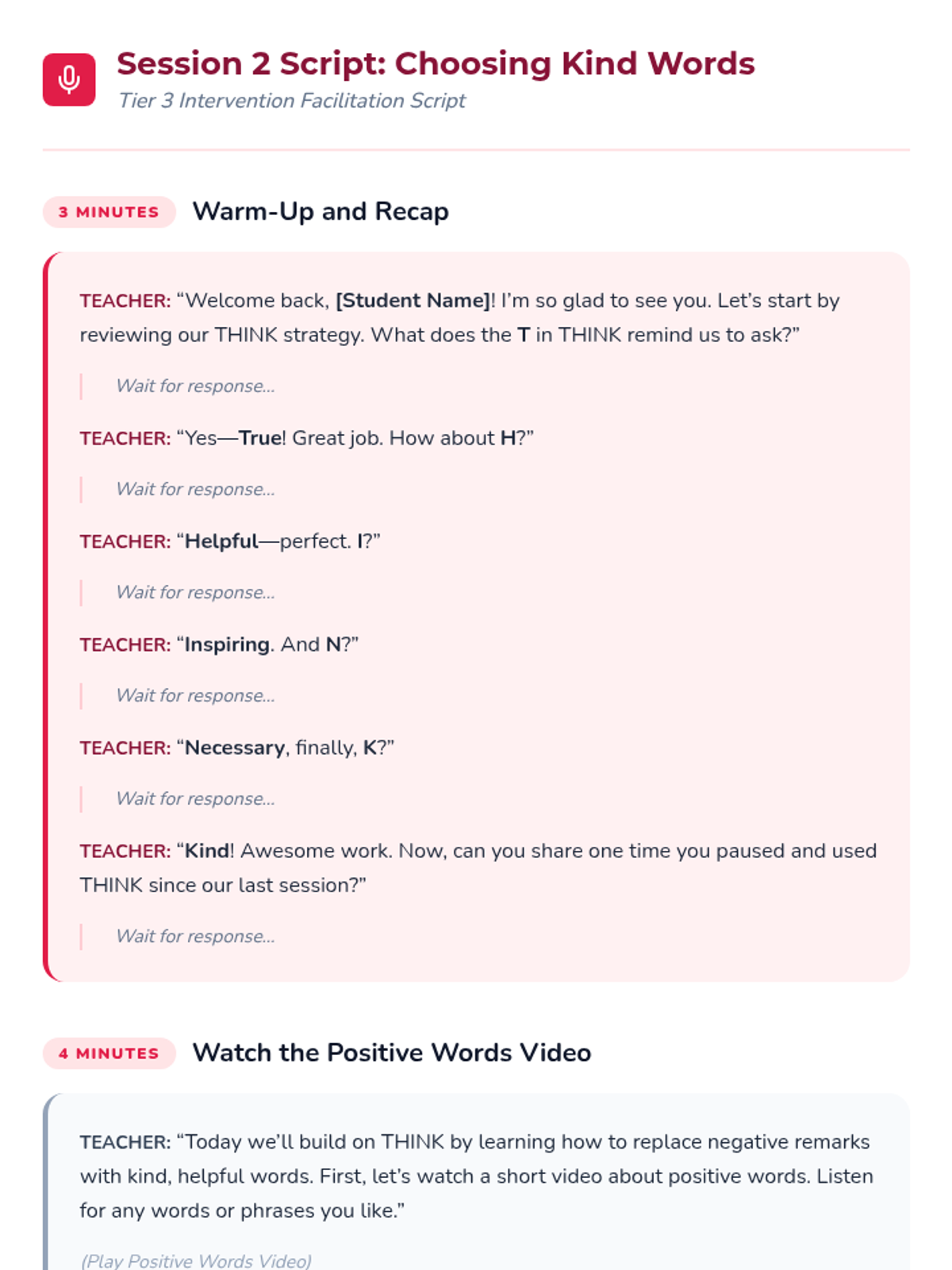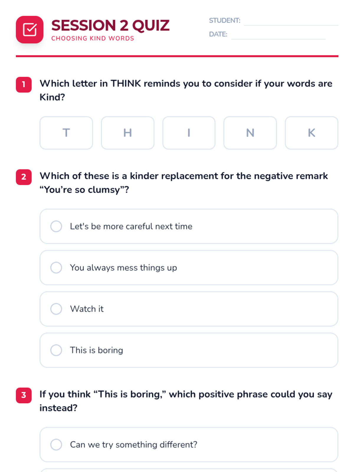 Reinforce impulse control through positive vocabulary, helping the student replace inappropriate remarks with thoughtful, constructive language.