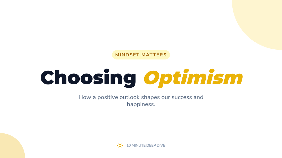 A quick 10-minute exploration of optimism, its benefits for happiness and success, and practical ways to cultivate a positive mindset.