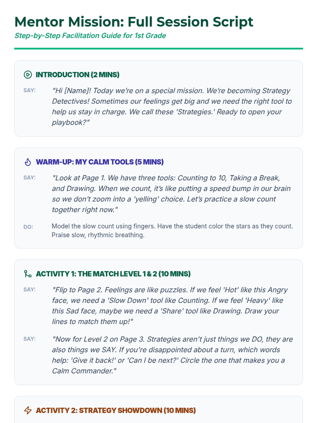 A 30-minute lesson introducing Grade 1 and 2 students to self-regulation during whole-group instruction through the 'Focus Pilot' metaphor, covering whole body listening and concentration skills.
