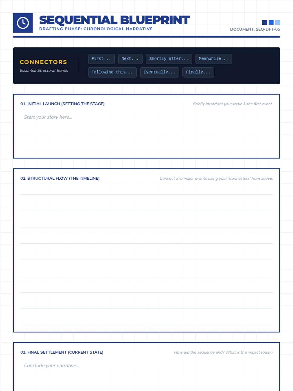 Students transform their research into a chronological narrative, focusing on temporal transitions and the logic of sequence.