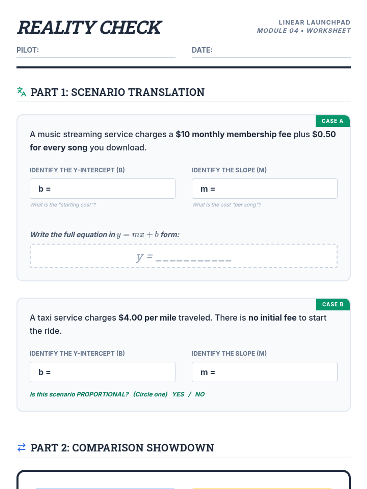 Interpret the meaning of slope and y-intercept in real-world scenarios and compare linear functions presented in different formats.
