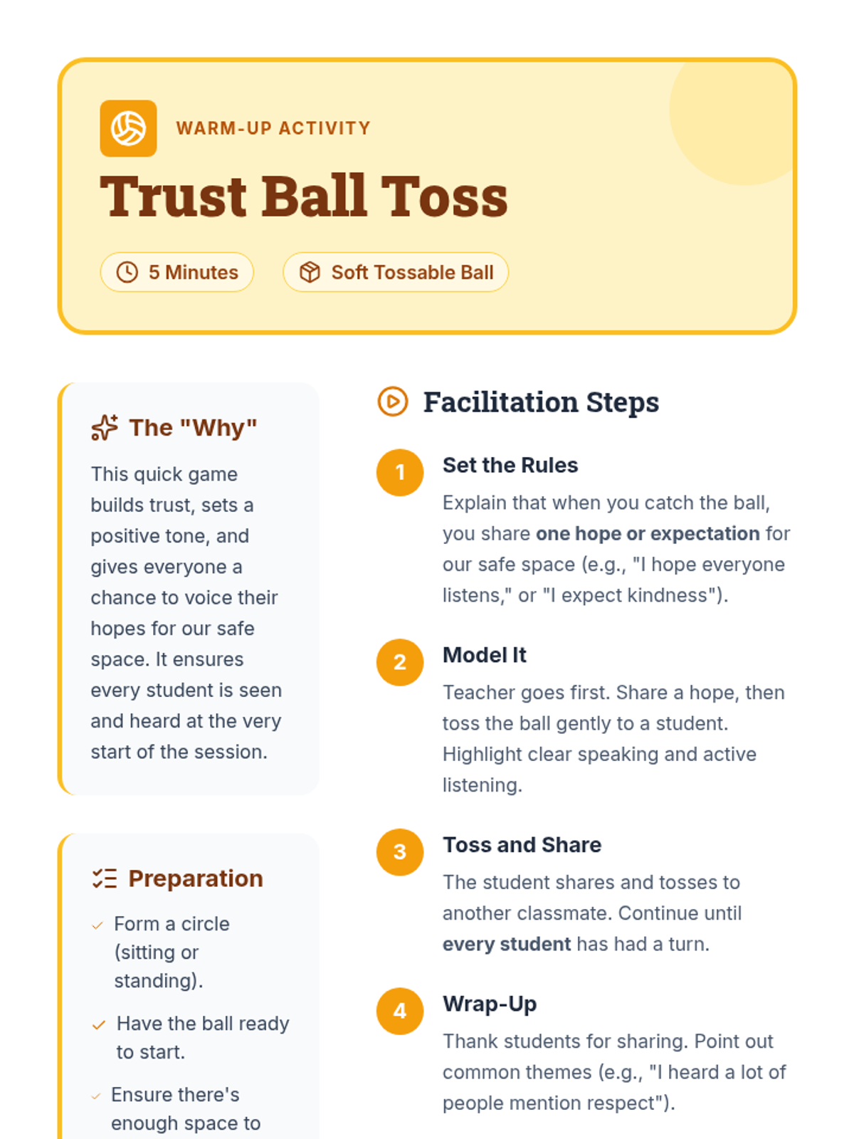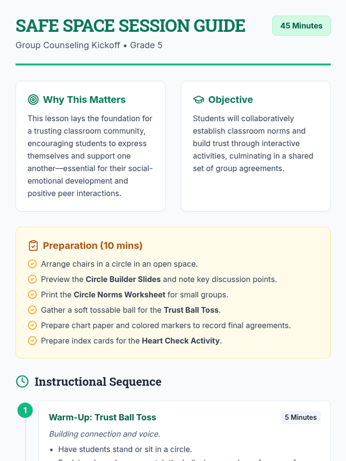 A kickoff session for 5th graders to build trust and establish classroom norms for a supportive and safe environment.