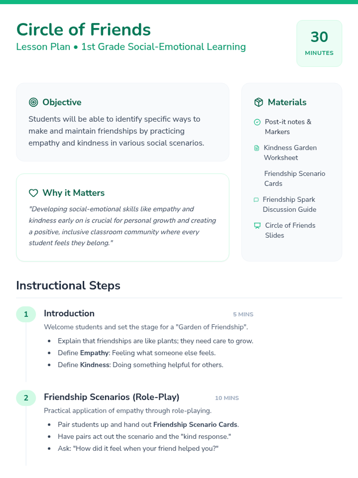 An end-of-year lesson for K-2 students focused on navigating social interactions using the Circle of Control and celebrating friendship growth. Students will learn what they can influence in their friendships and reflect on their social successes throughout the year.