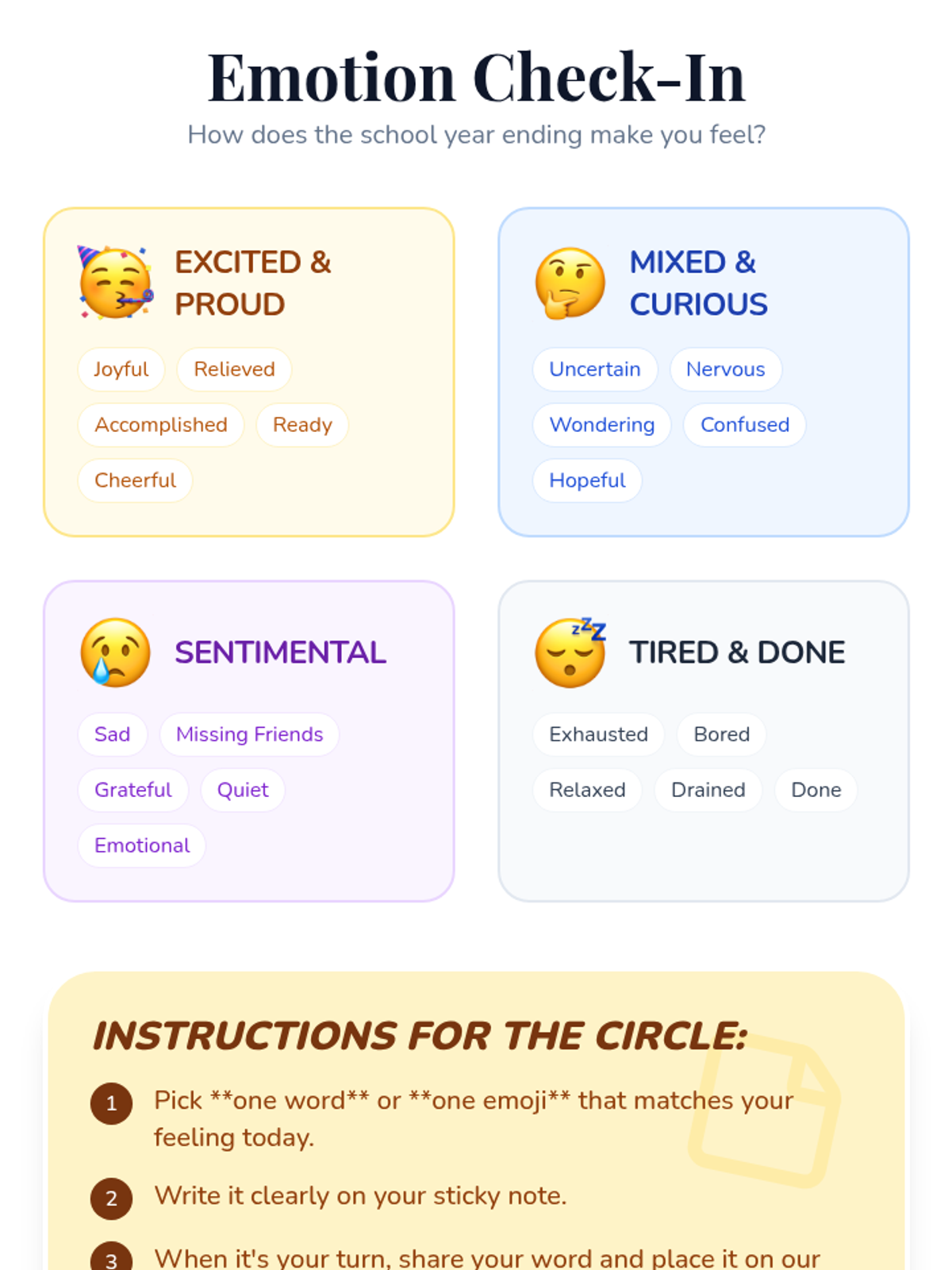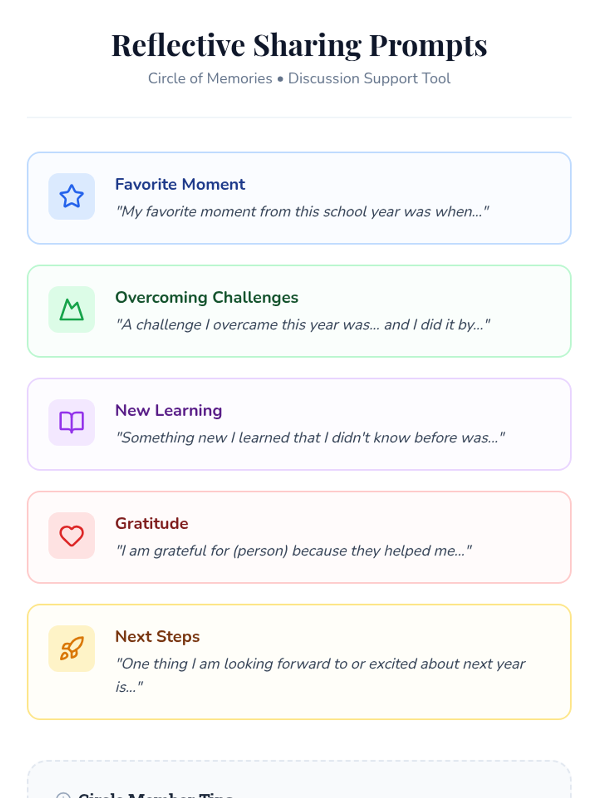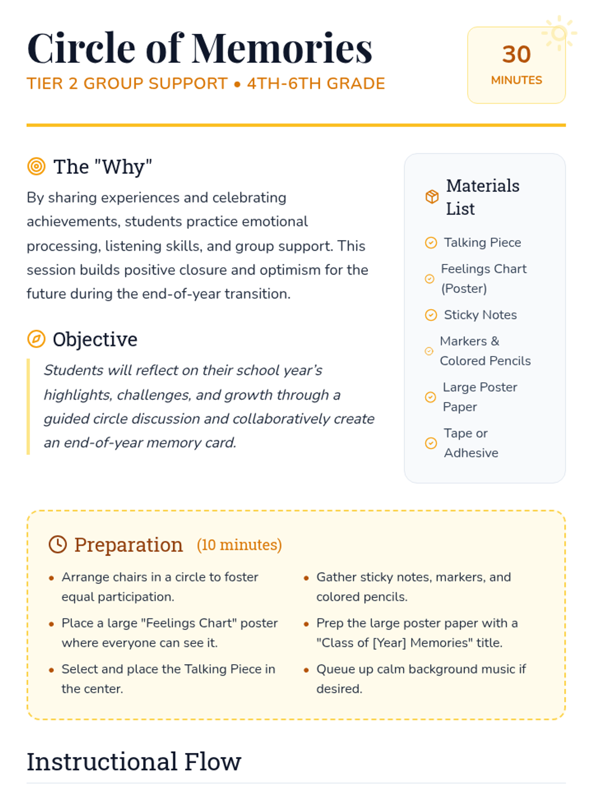 A 30-minute Tier 2 group session for 4th-6th graders to reflect on their school year, celebrate growth, and create a collaborative memory card for closure.
