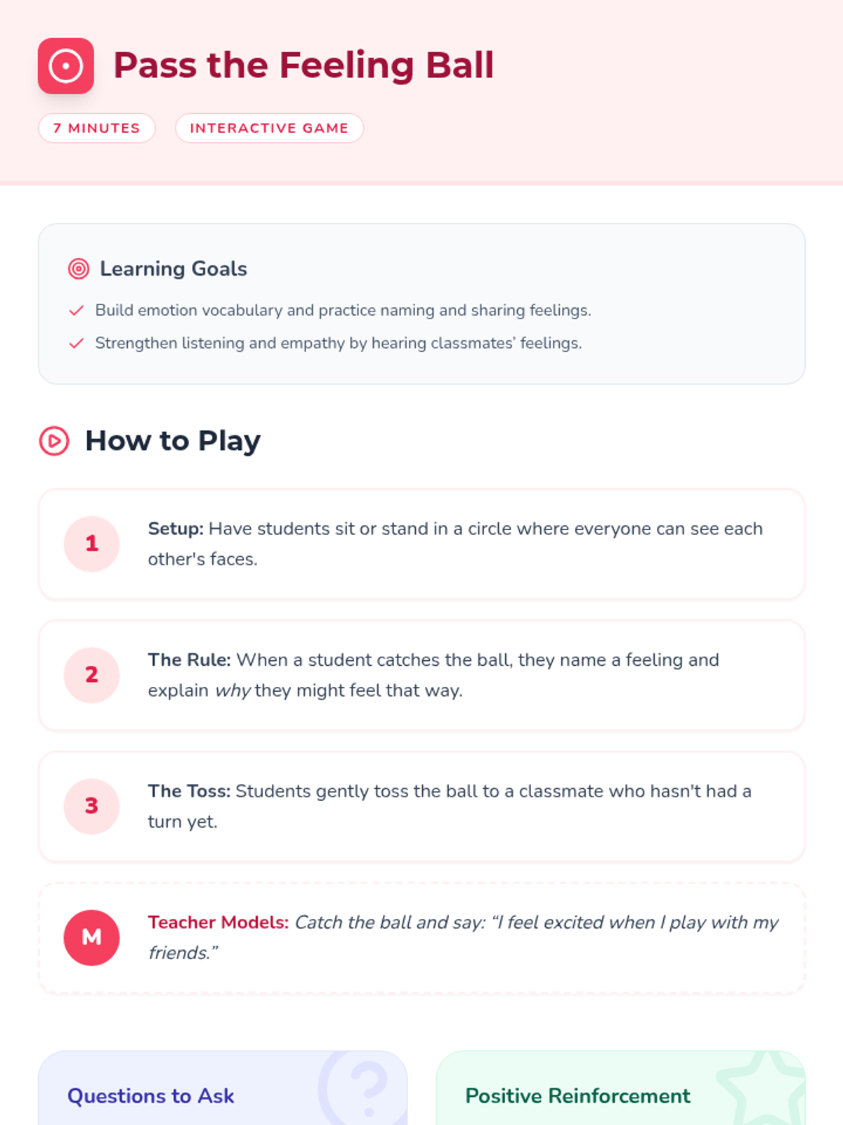 A social-emotional learning lesson designed to help students identify 'big feelings' and practice safe replacement behaviors for physical aggression. Includes a narrative story, situational practice, and a personalized reflection plan.
