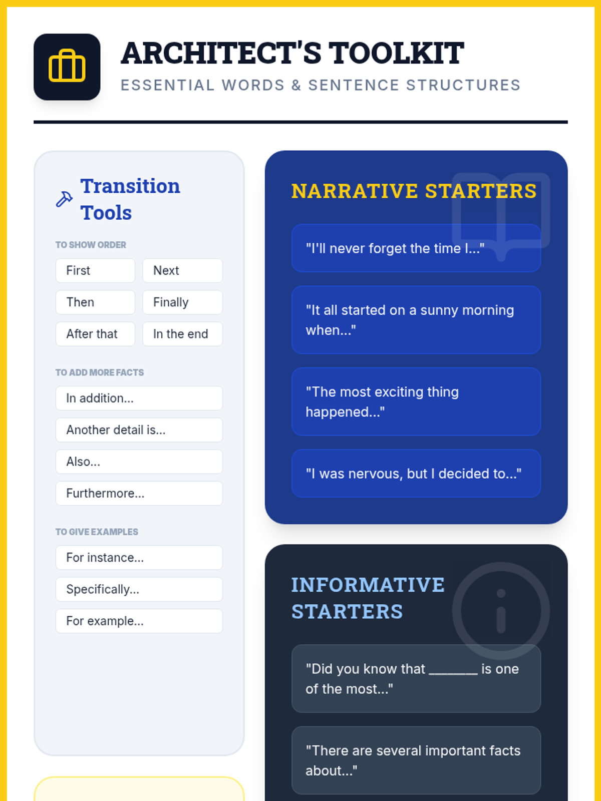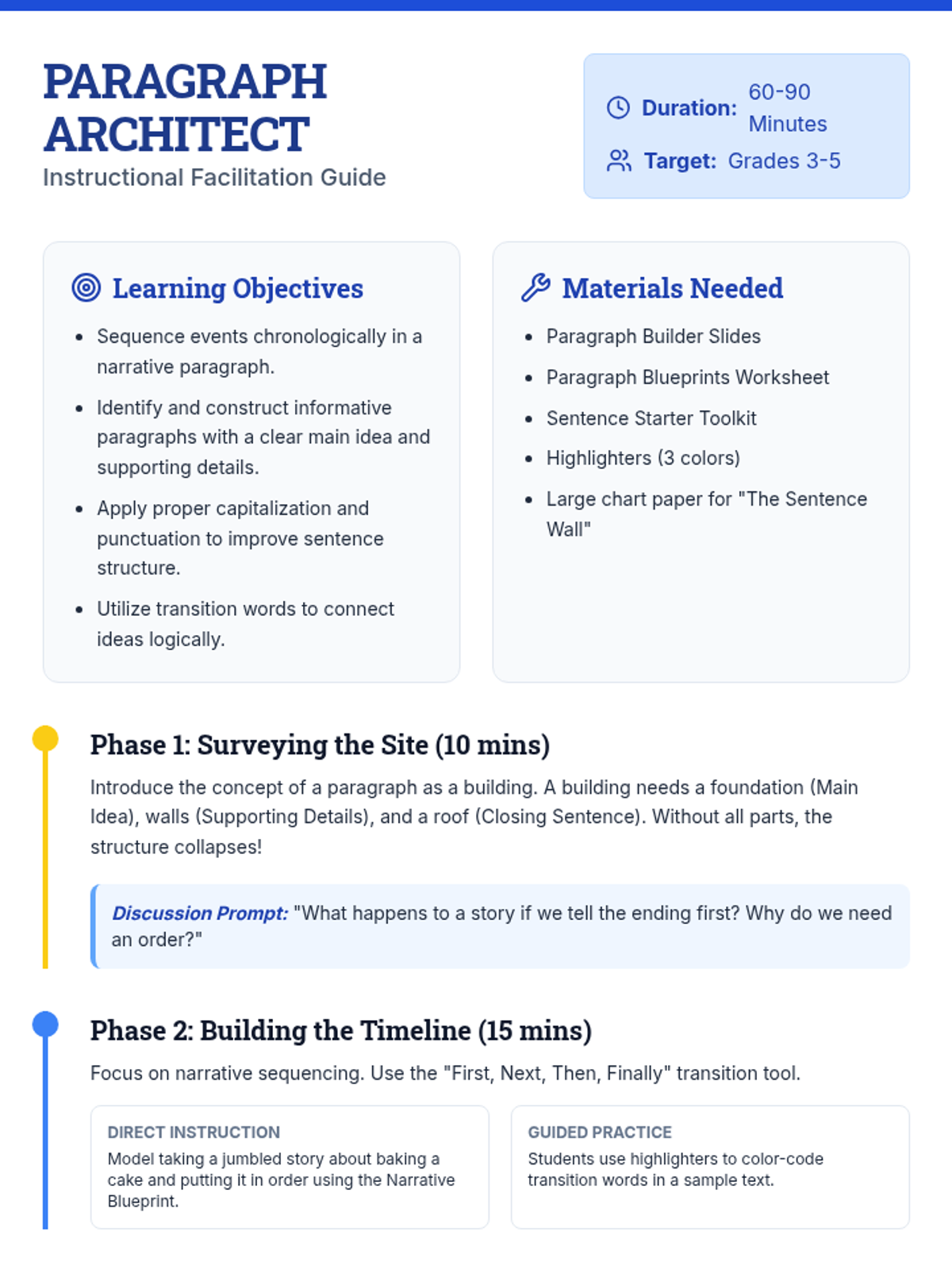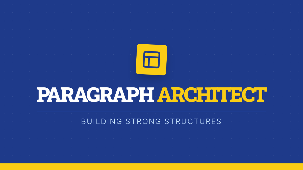A comprehensive lesson on building strong paragraphs, focusing on narrative sequencing, informative structure, and sentence-level mechanics using an architectural theme.