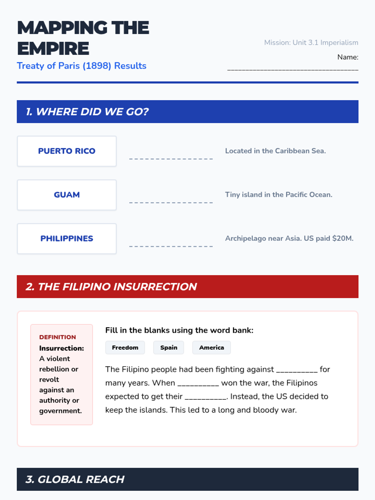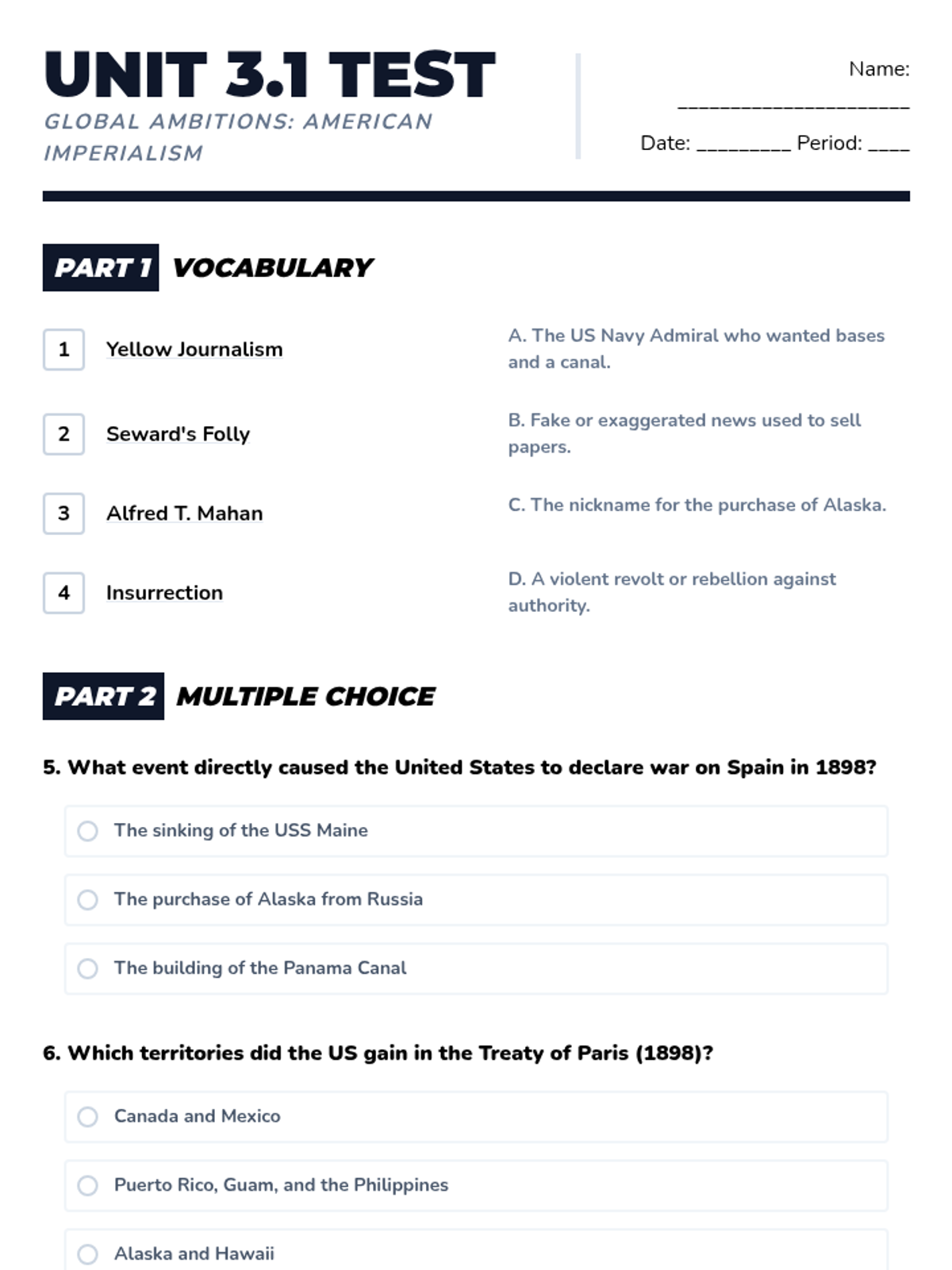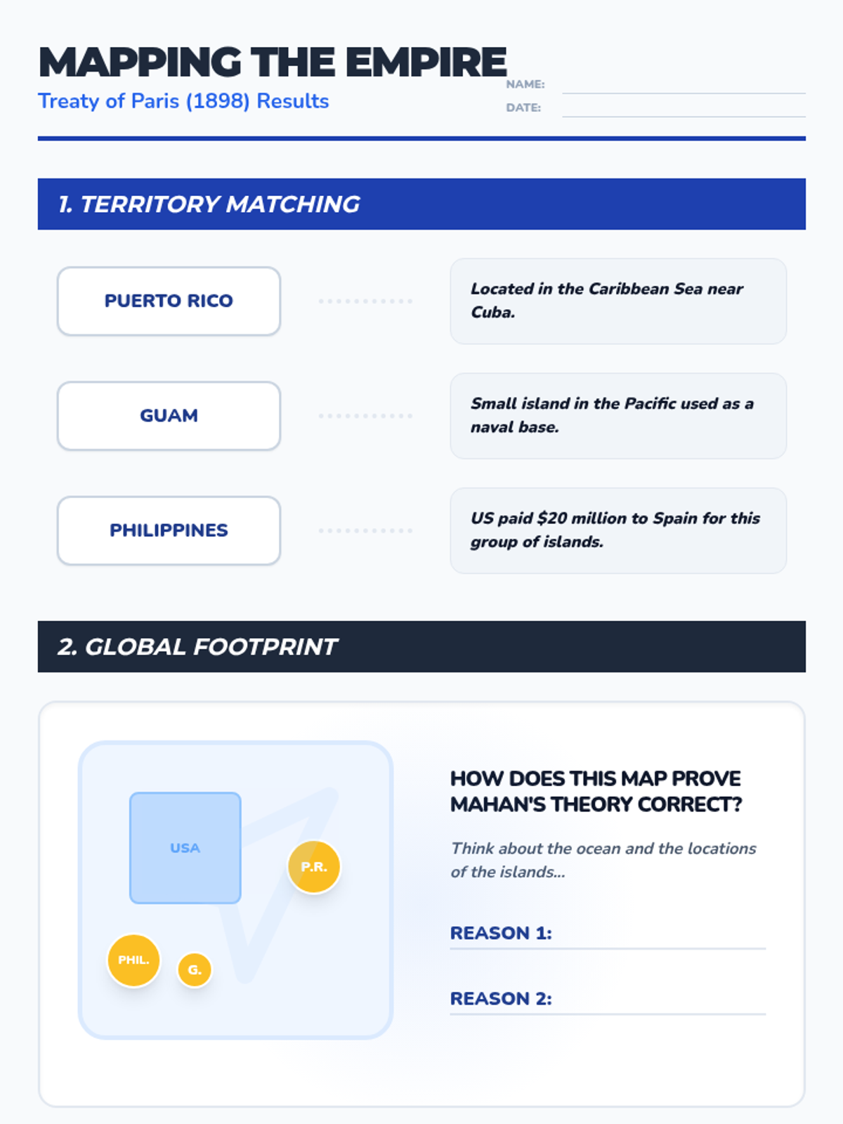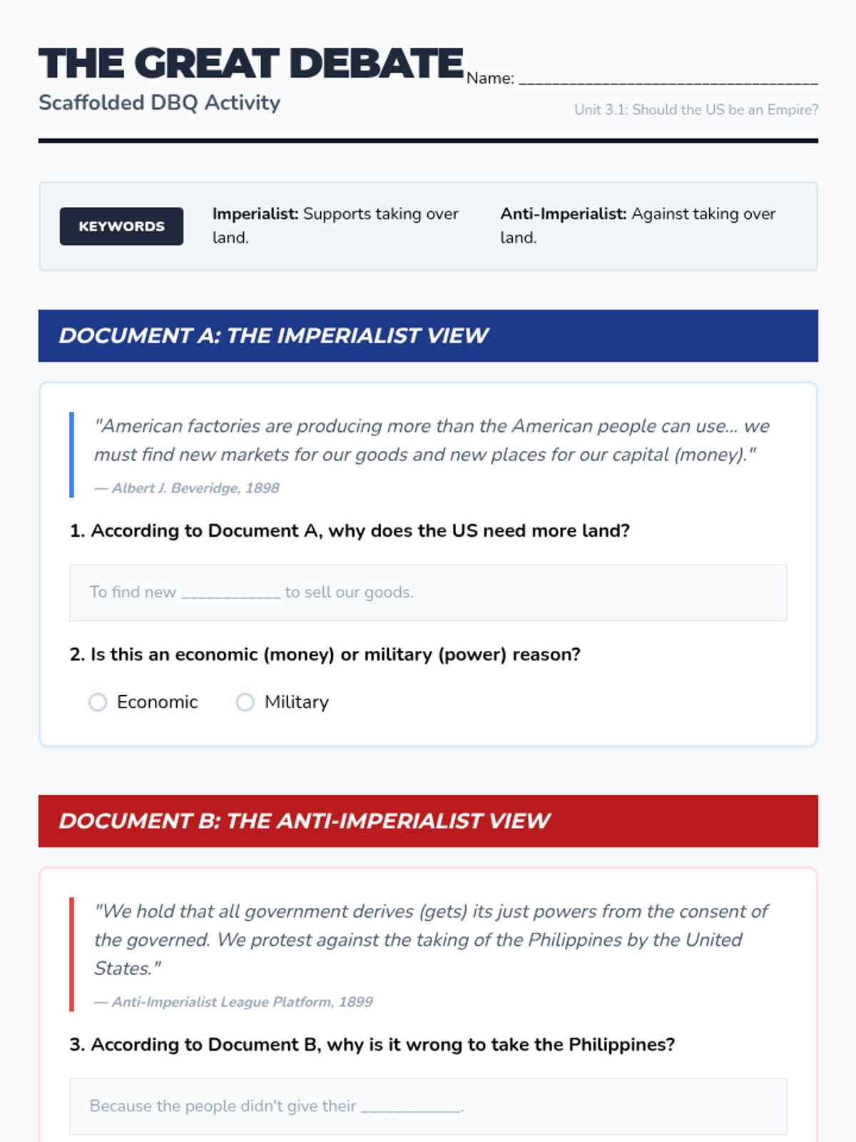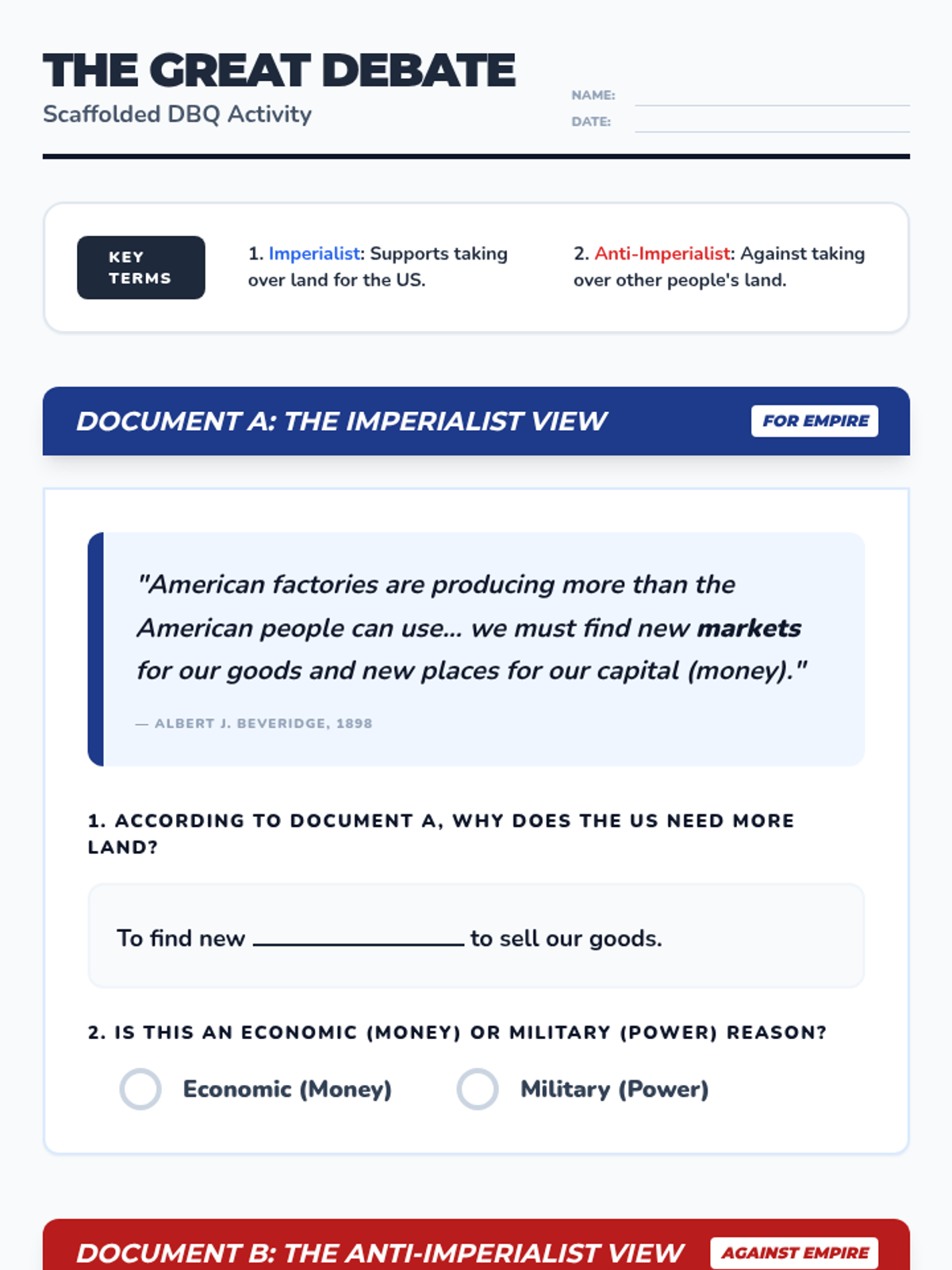 A scaffolded DBQ activity exploring the core arguments for and against American imperialism.