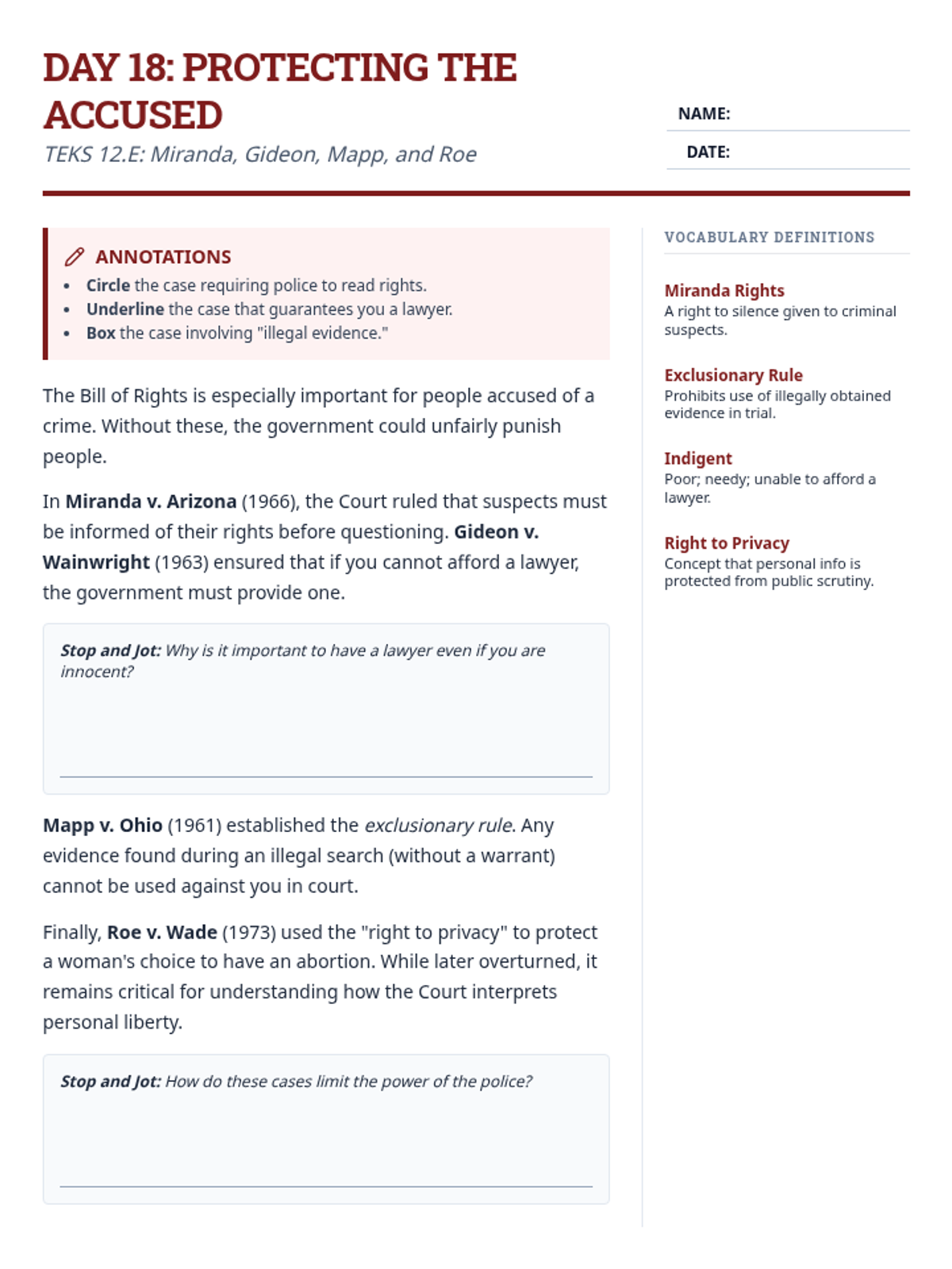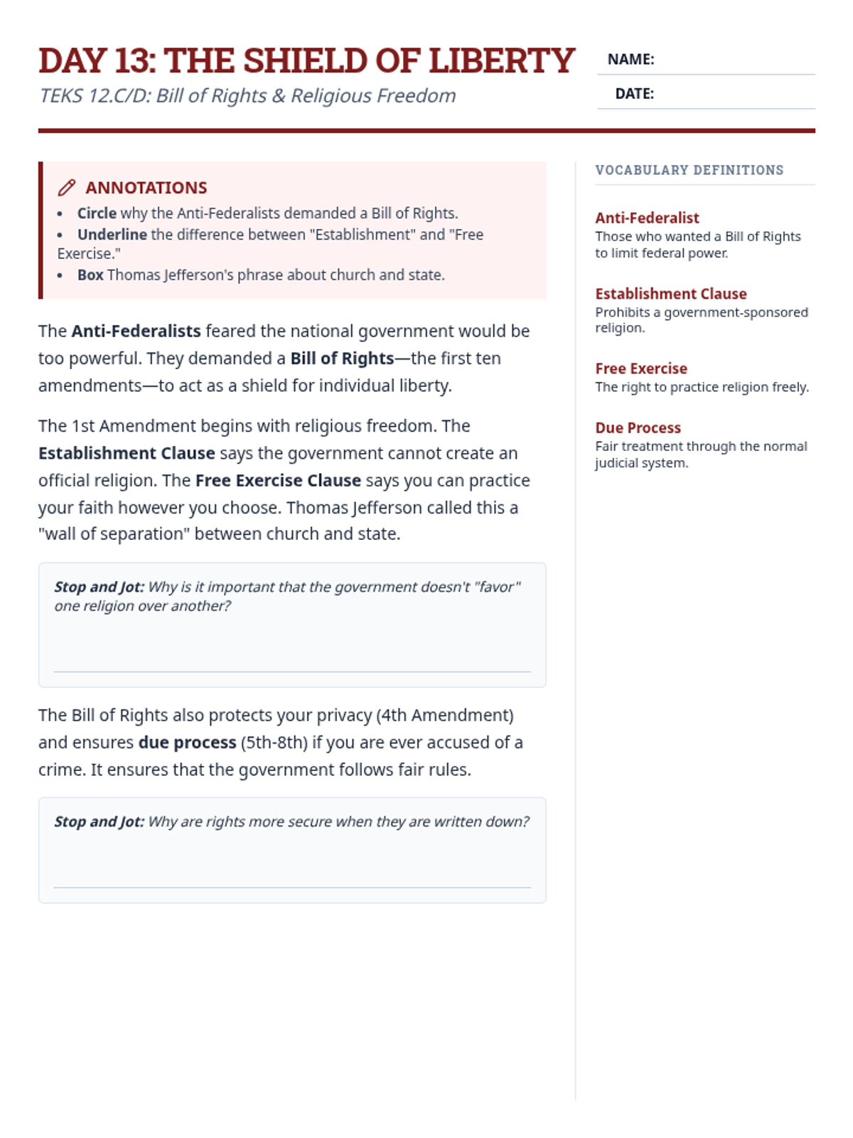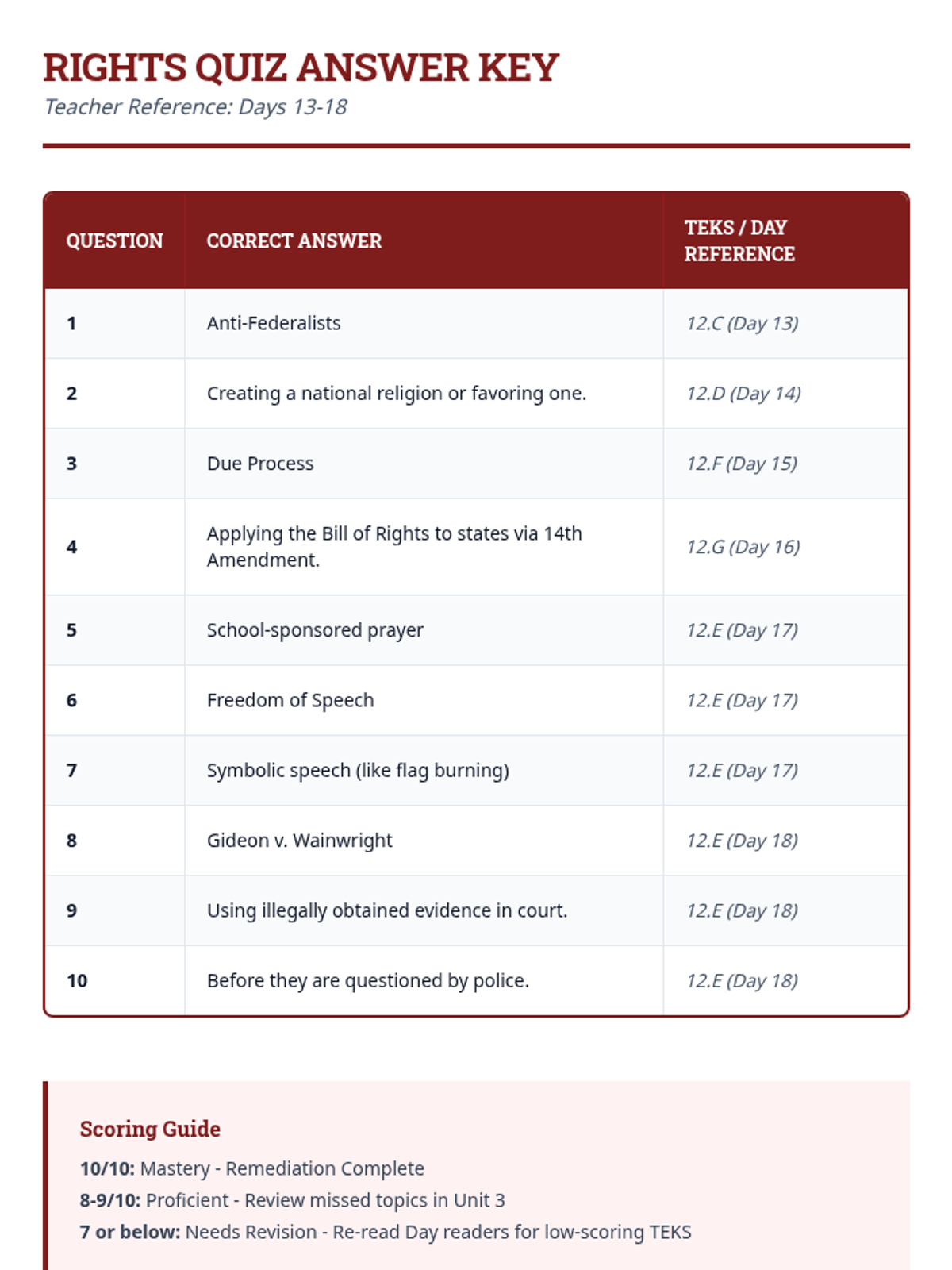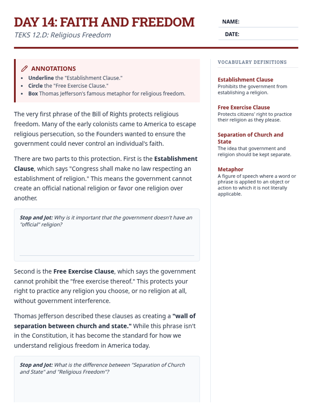 Examines individual rights, religious freedom, landmark Supreme Court cases, and the impact of the 14th Amendment on state government.