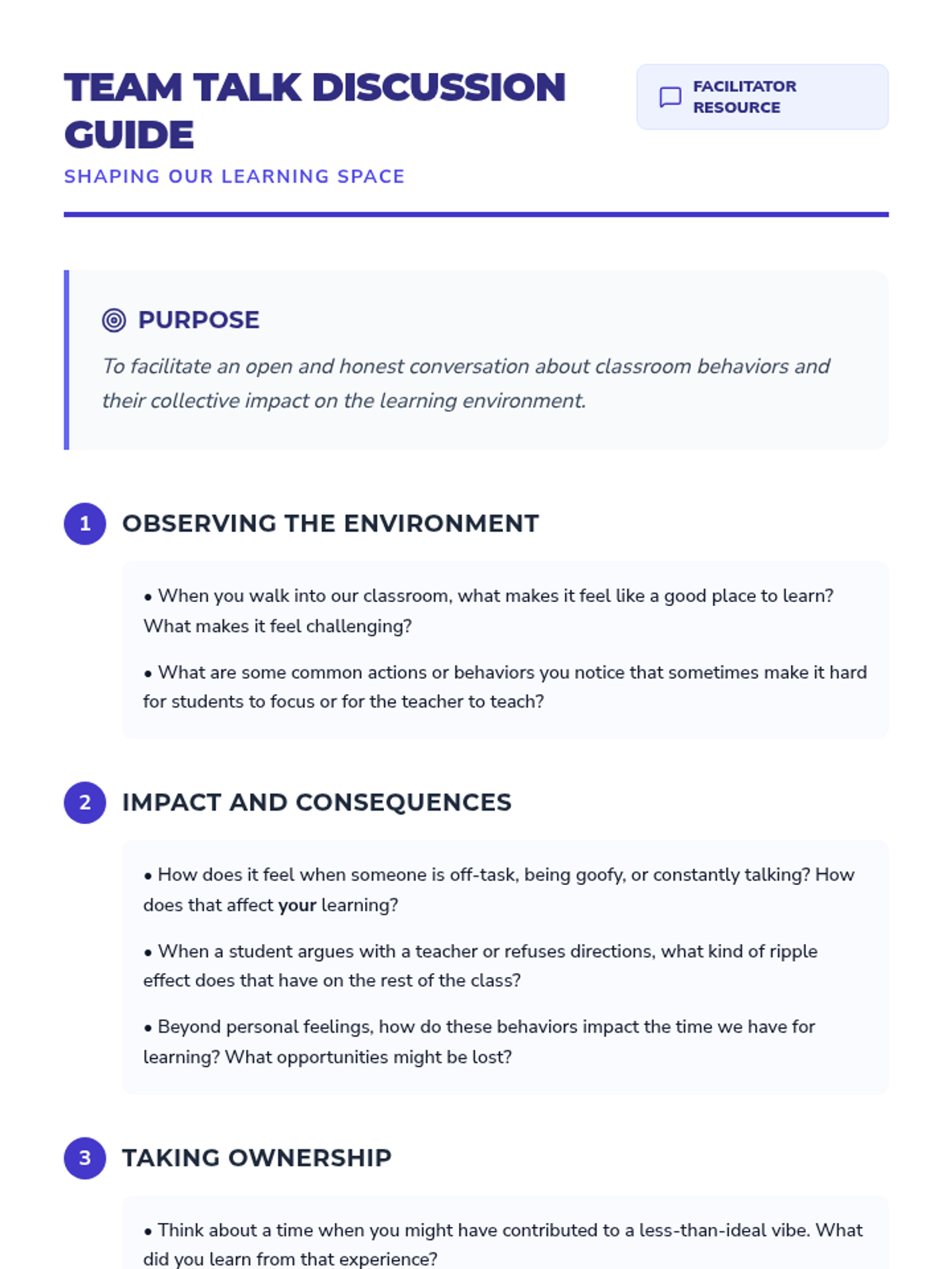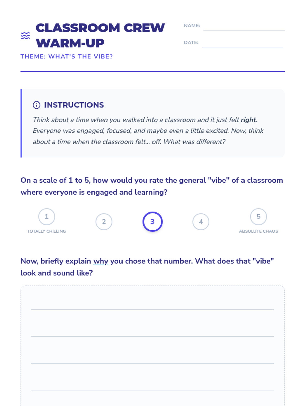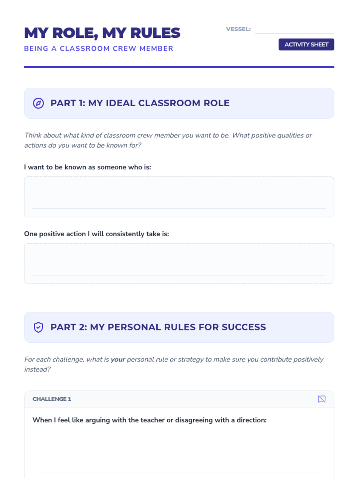 A 30-minute Tier 2 lesson for 8th-grade students to understand the impact of their classroom behaviors and develop self-management strategies using a 'Crew' metaphor.