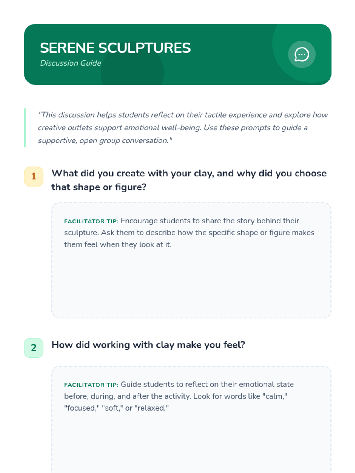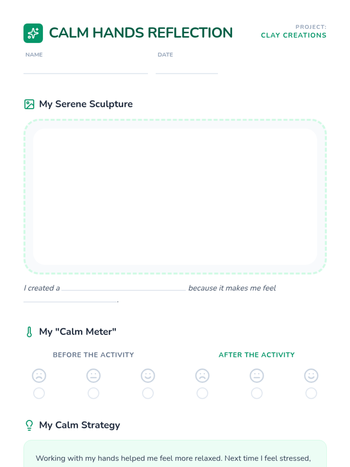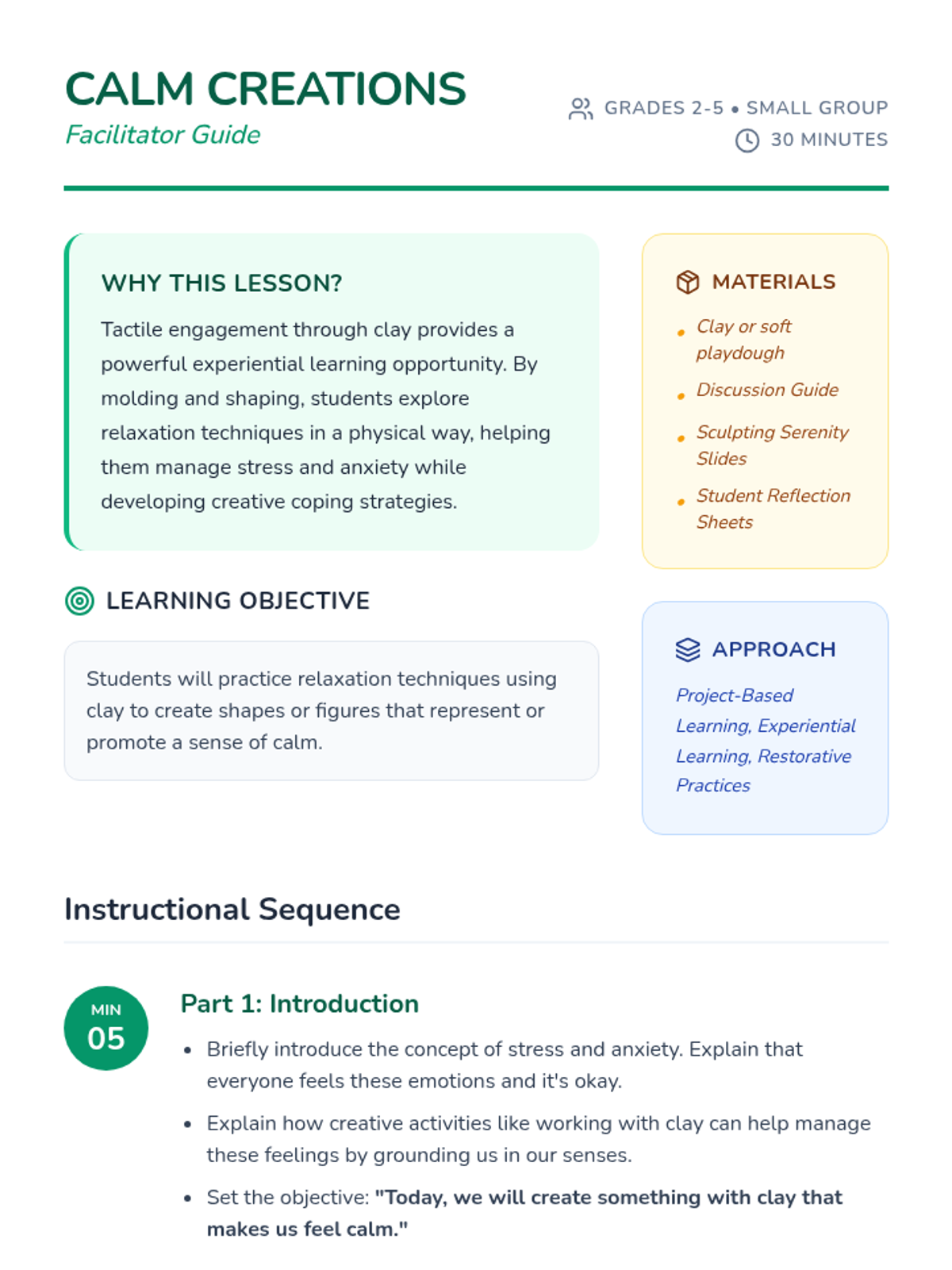 A hands-on experiential lesson where students use clay to explore relaxation techniques and develop coping strategies for stress management through tactile engagement.