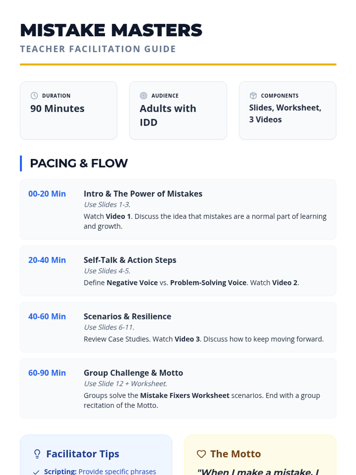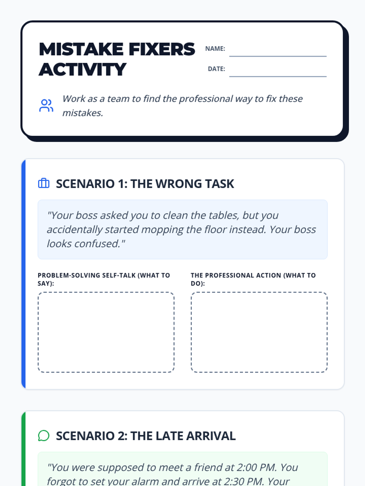 A 90-minute comprehensive lesson on the importance of self-advocacy and the practical techniques for seeking clarification in social, academic, and professional settings. students learn to identify 'static' in communication and use a 'troubleshooting' approach to clear it up.