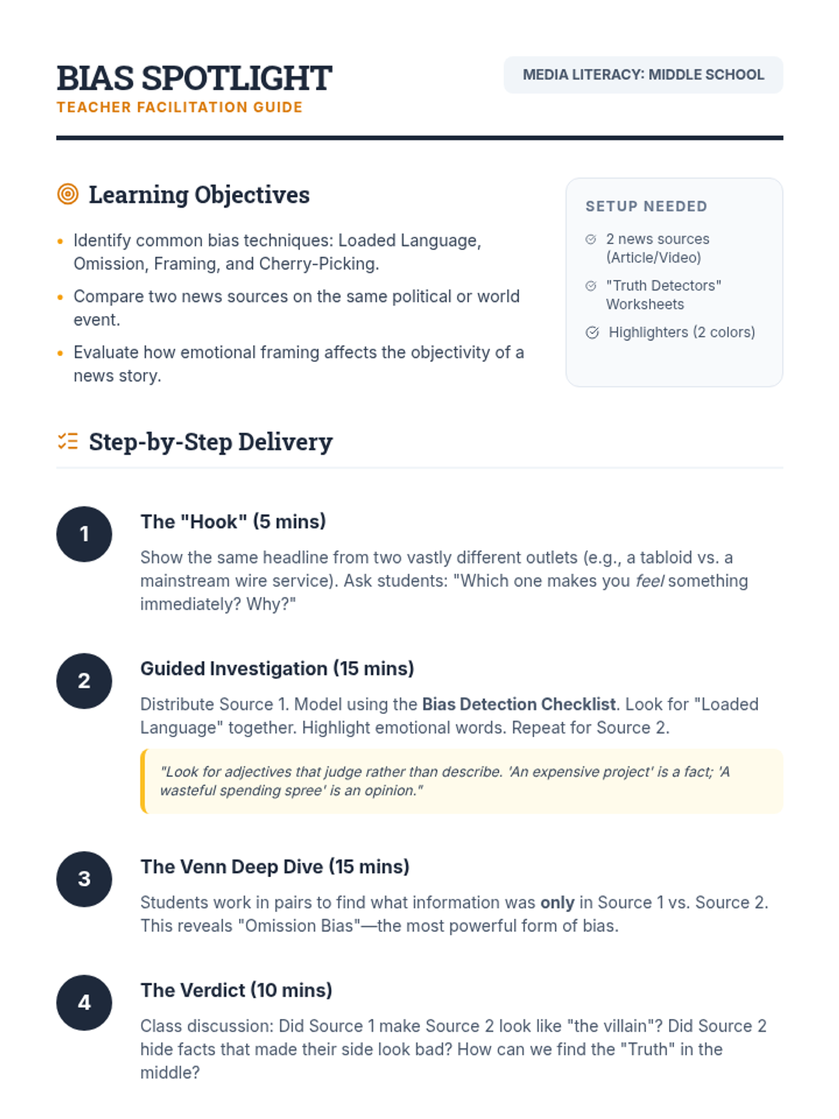 In this media literacy lesson, 6th-grade students become 'Digital Detectives' to uncover the hidden tactics of clickbait. They will analyze sensational headlines, identify emotional triggers, and practice transforming misleading viral content into factual reporting.