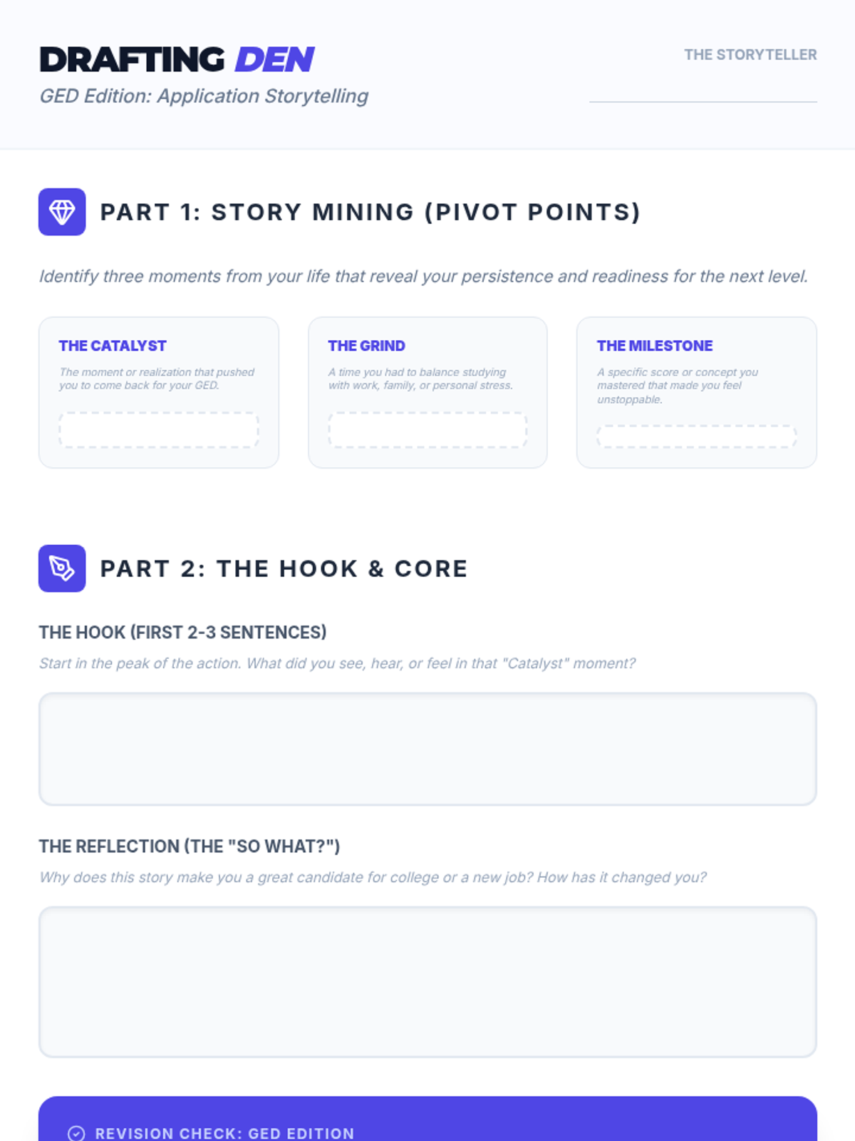 Transforming the non-traditional educational journey into a powerful asset for college and job applications through narrative storytelling.