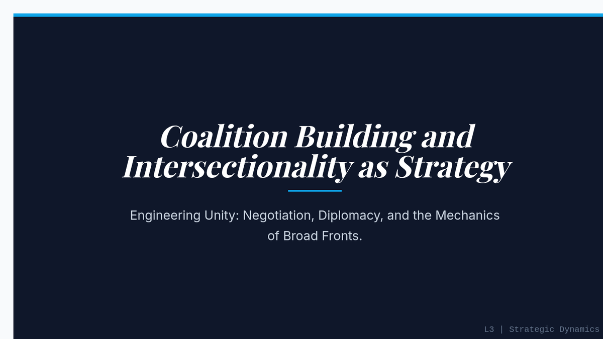 Focuses on the internal dynamics of building broad-based, intersectional coalitions and the negotiation required to maintain unity across diverse ideological groups.