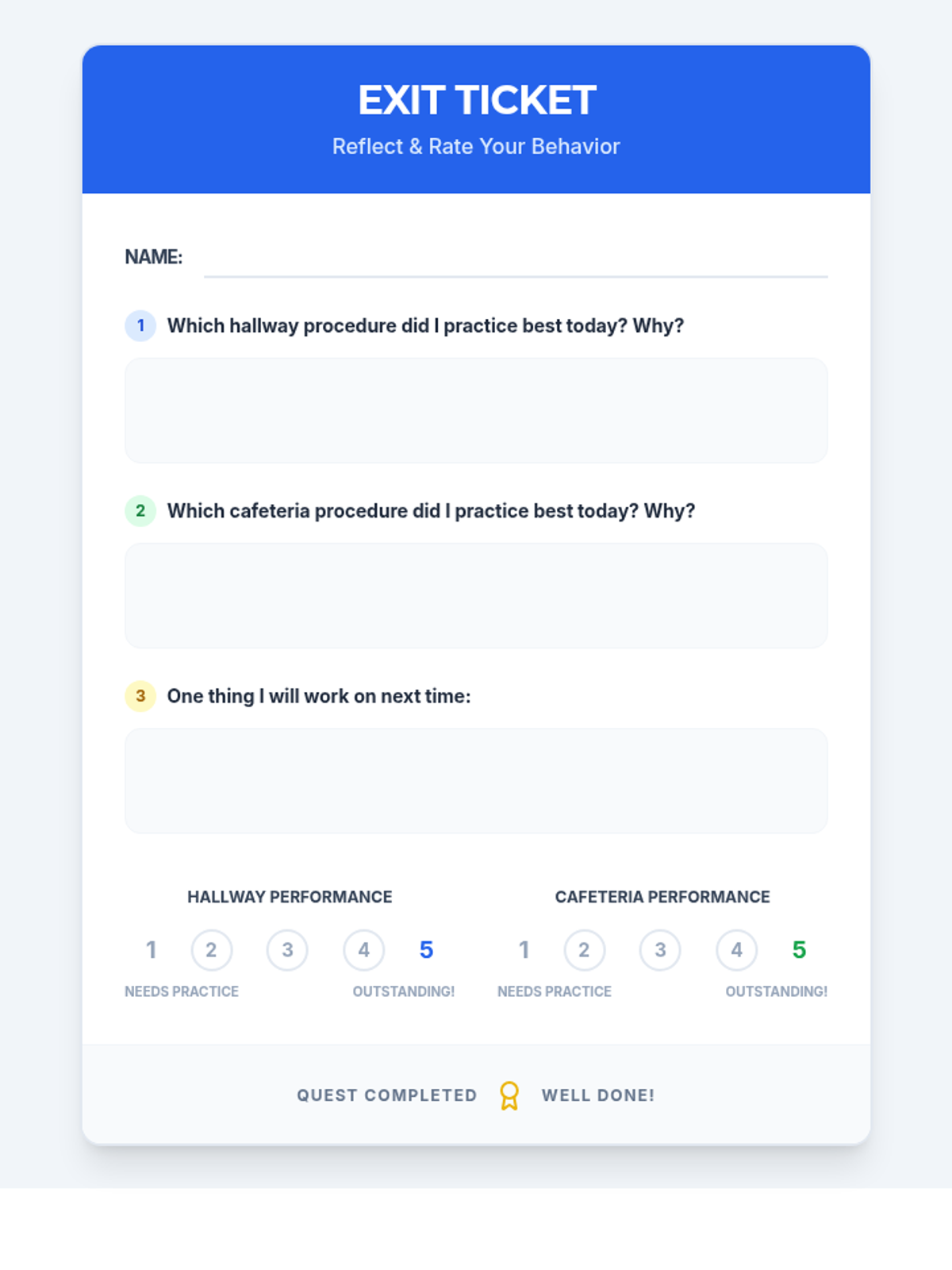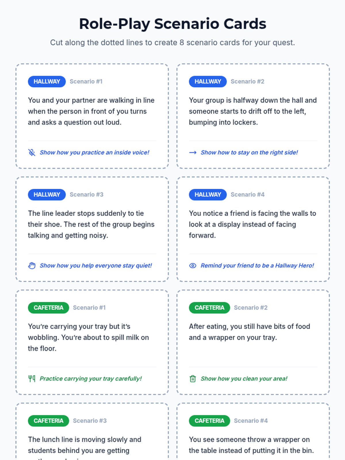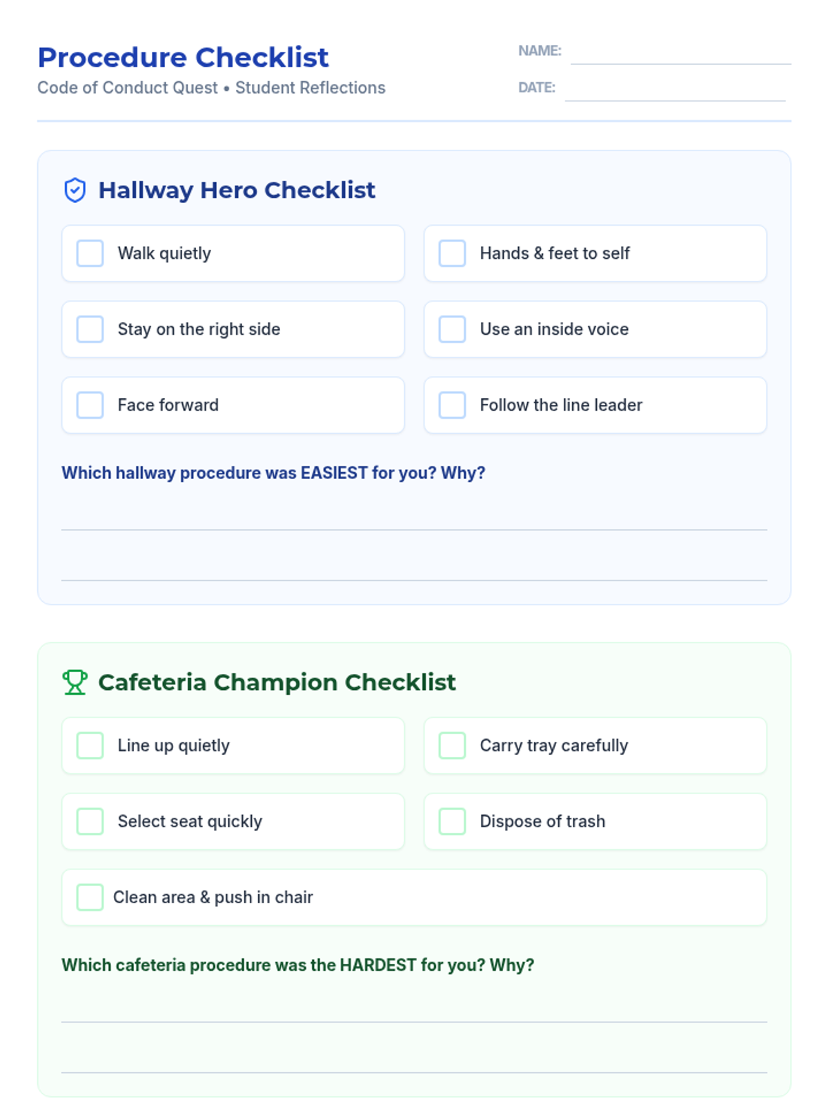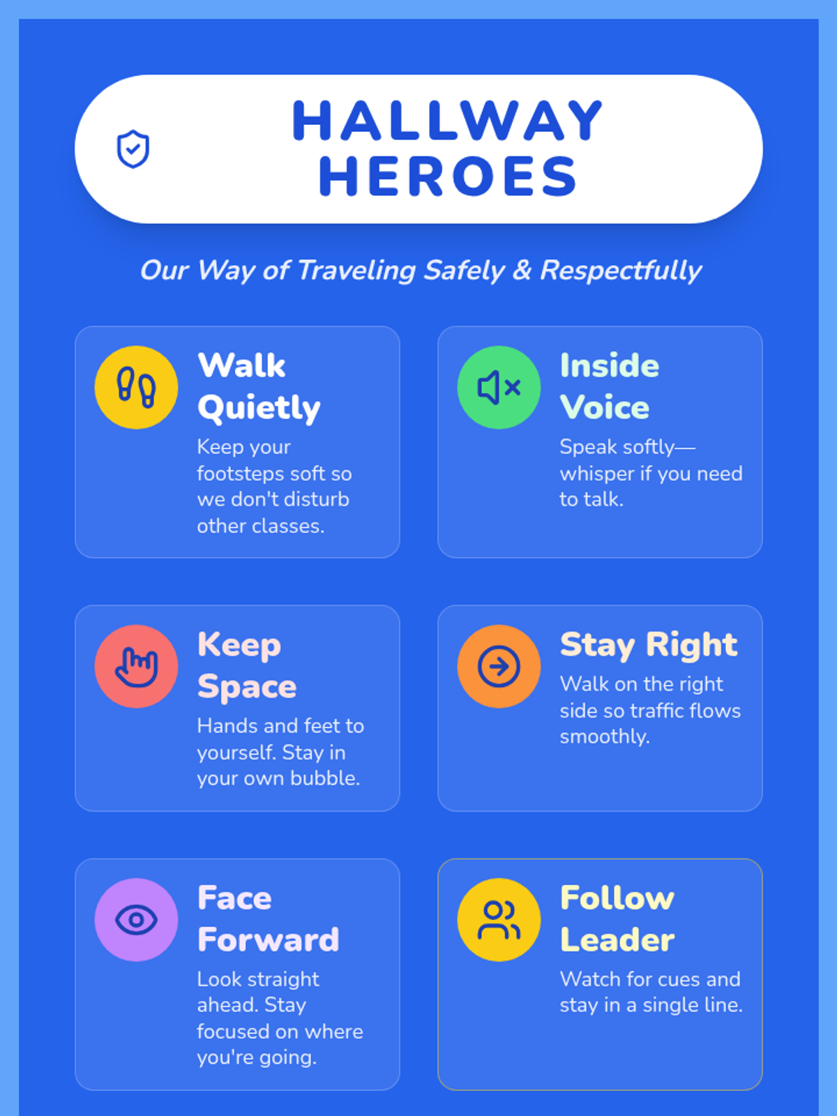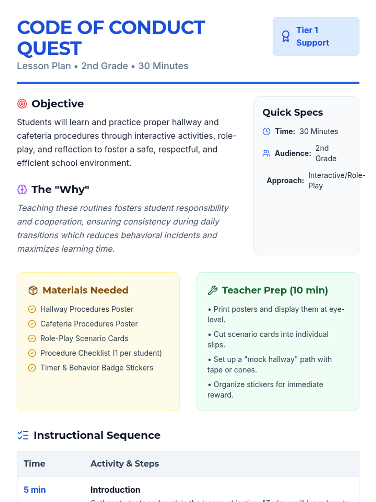 An interactive 30-minute lesson for 2nd graders to master hallway and cafeteria procedures through posters, role-play, and reflective checklists. Students earn 'Behavior Badges' as they practice being respectful school citizens.