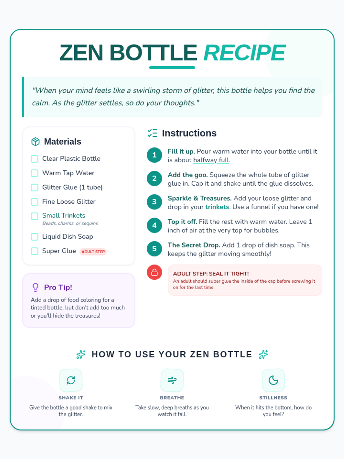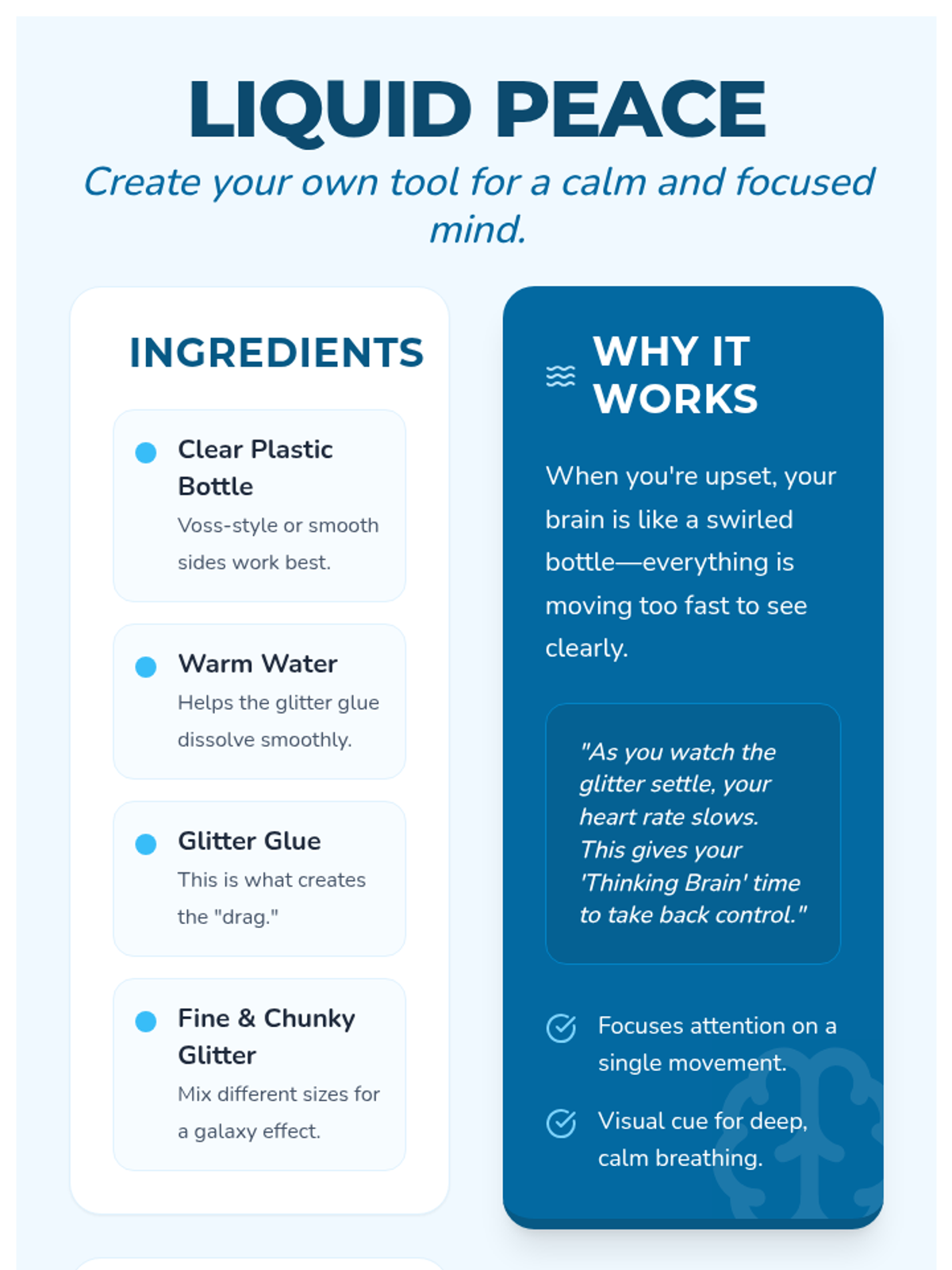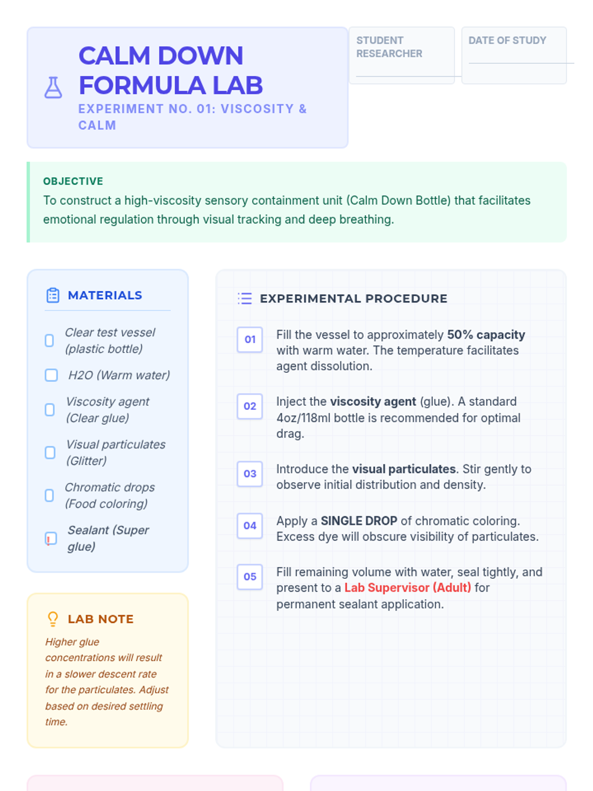 A lesson focused on creating sensory tools for self-regulation, specifically a calm-down water bottle.