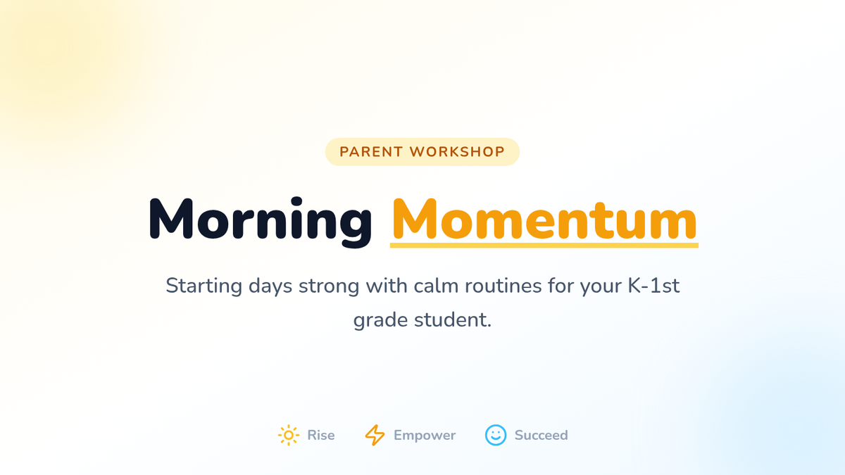 A parent workshop focused on establishing calm and effective morning routines for K-1st grade students to reduce stress and foster independence.