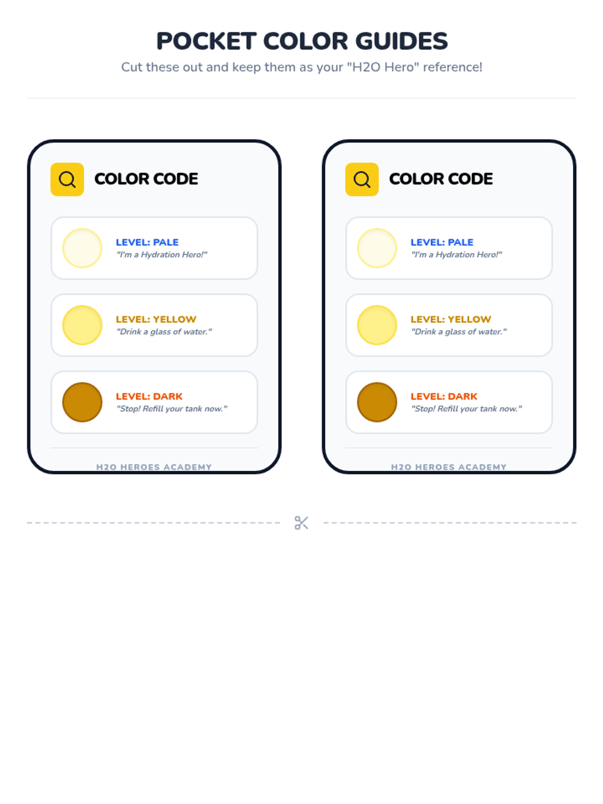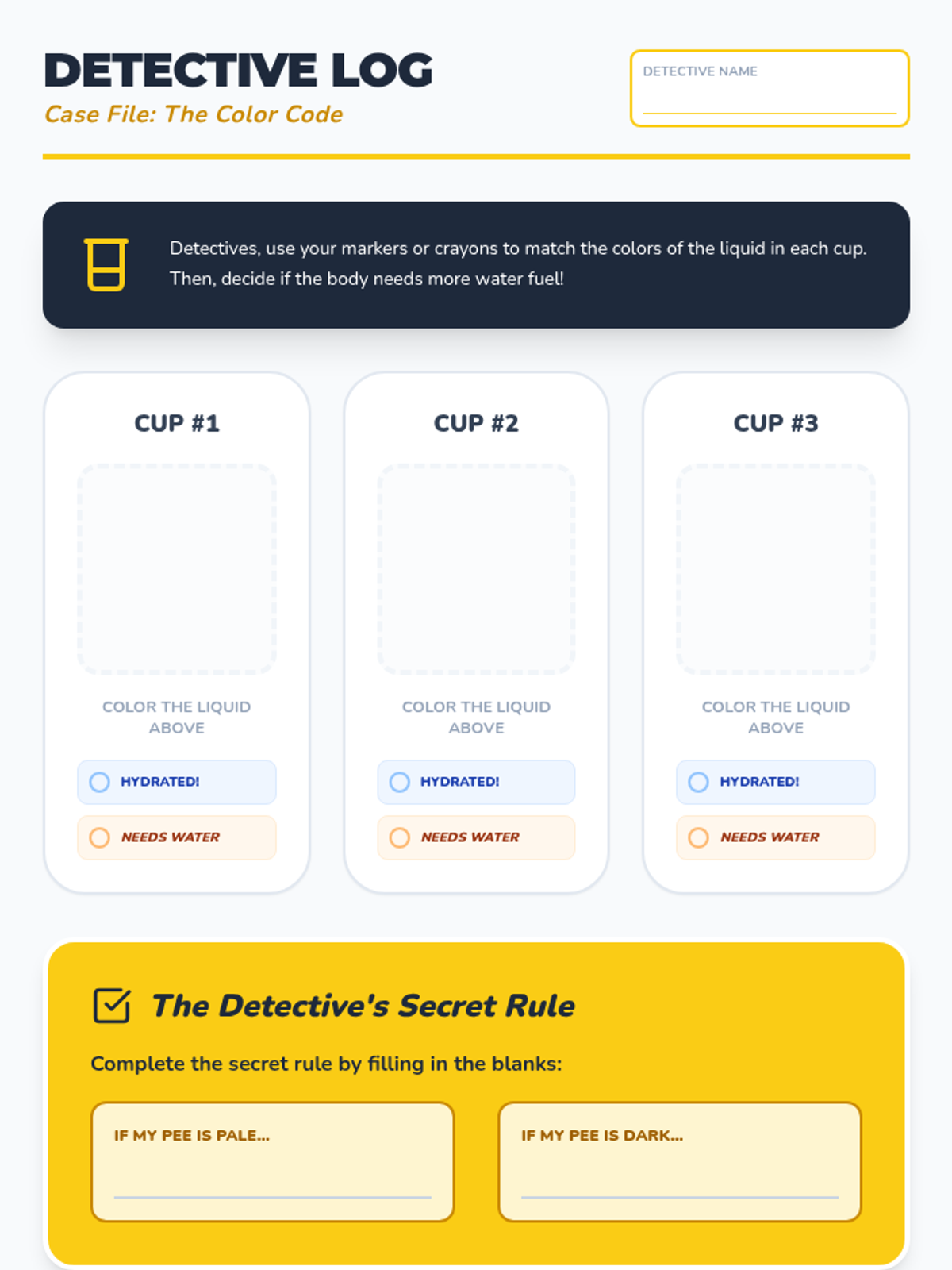 Students use a simulated urine color test to learn how to monitor their own hydration levels independently.