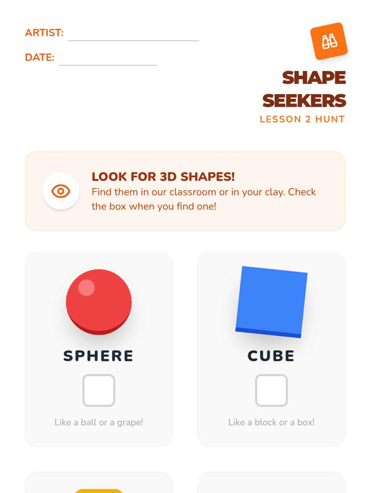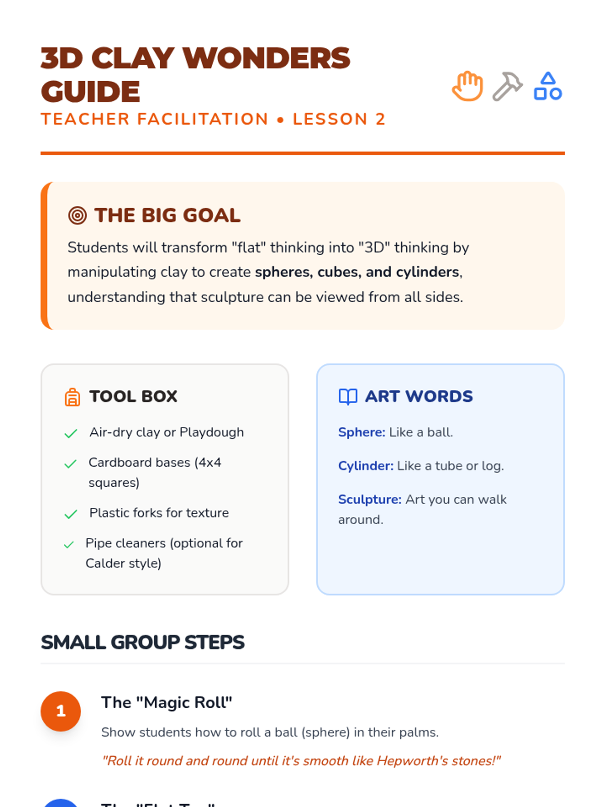 Students transform 2D shapes into 3D forms using clay and secondary materials, inspired by the abstract sculptures of Barbara Hepworth and Alexander Calder.