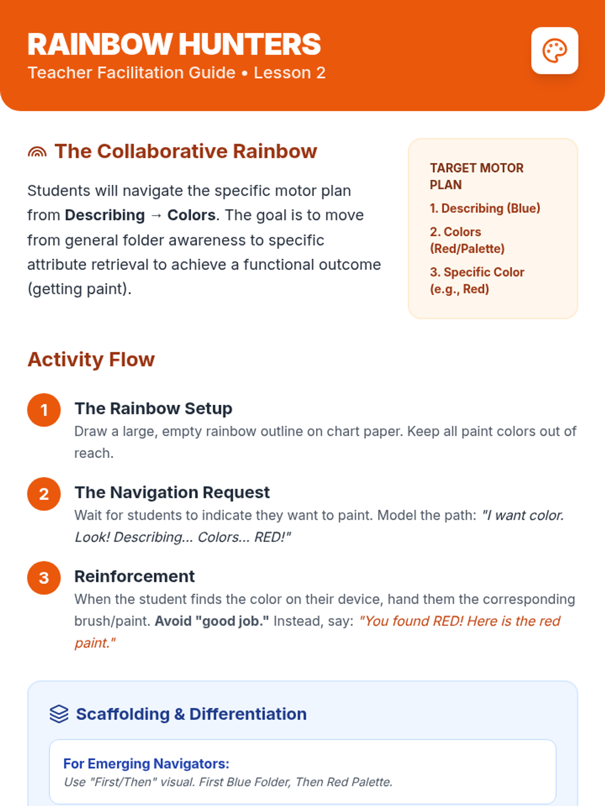 This lesson focuses on the specific transition from preferred art activities to non-preferred learning tasks, providing strategies for emotional regulation and physical safety.
