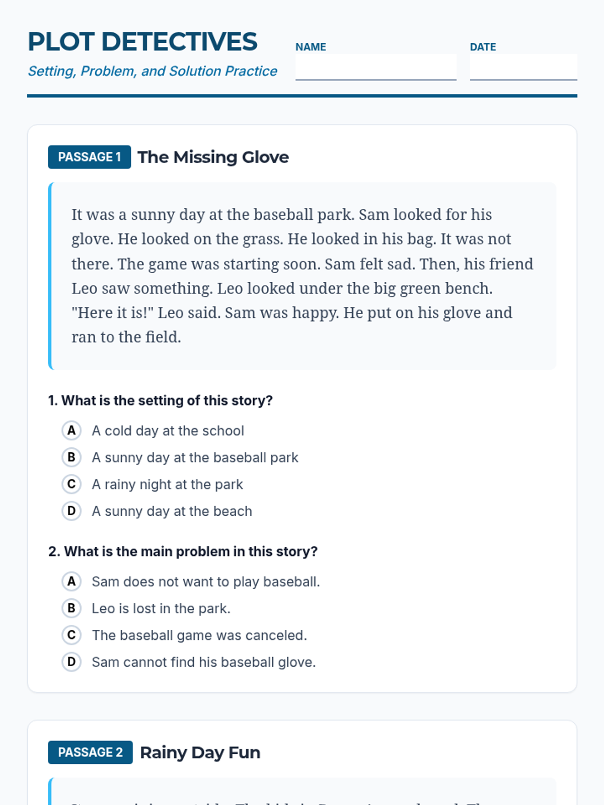 A lesson focused on identifying setting, problem, and solution in fiction, specifically adapted for 5th-grade students reading at a 2nd-grade level to prepare for STAAR-style assessments.