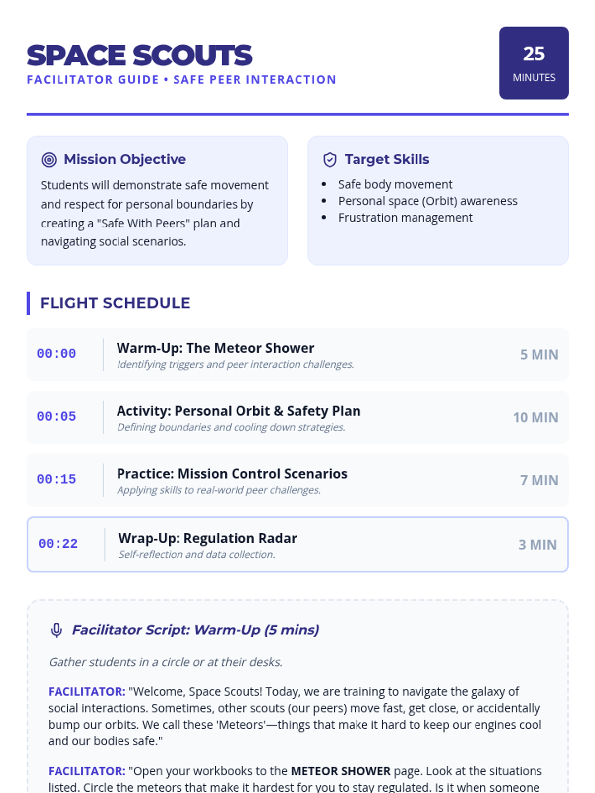 A comprehensive 90-120 minute morning activity designed to teach students the social nuances of interrupting. It covers identifying appropriate times to speak, respectful interruption techniques, and emotional regulation when others interrupt.