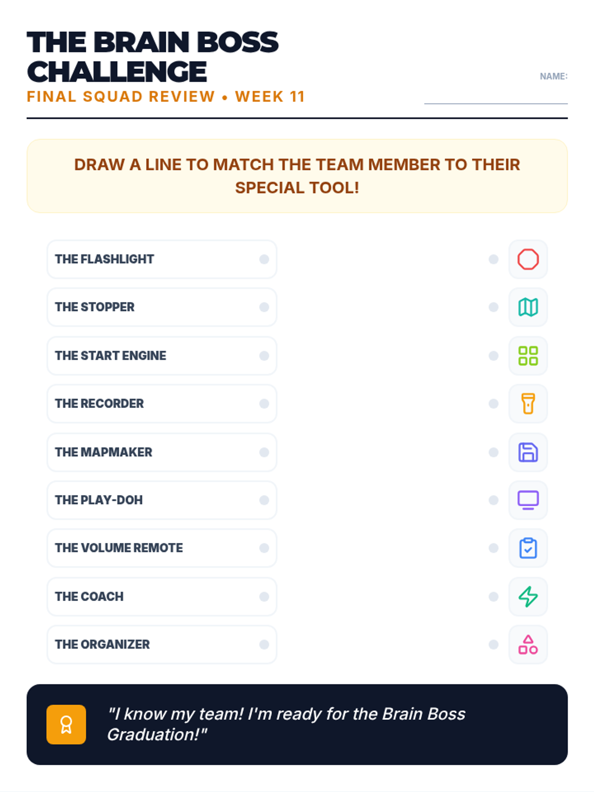 A lesson designed to help students identify distractions and implement mindfulness and organizational strategies to improve their concentration. Students will engage in group discussions and practical exercises to build their 'focus muscles'.