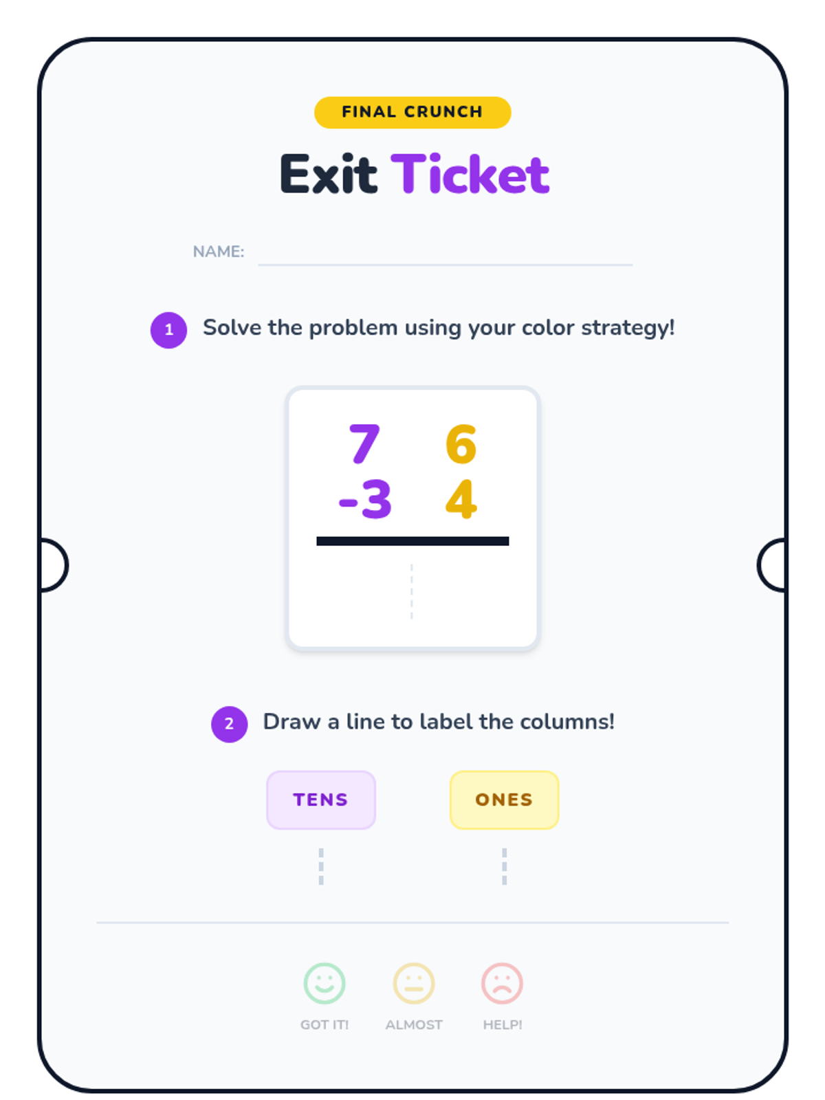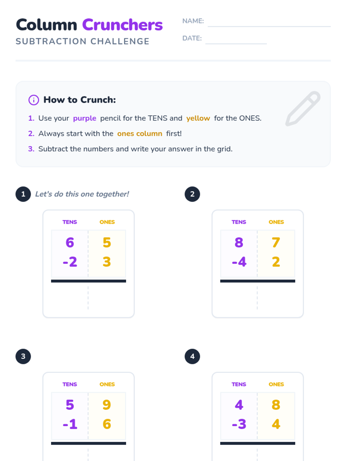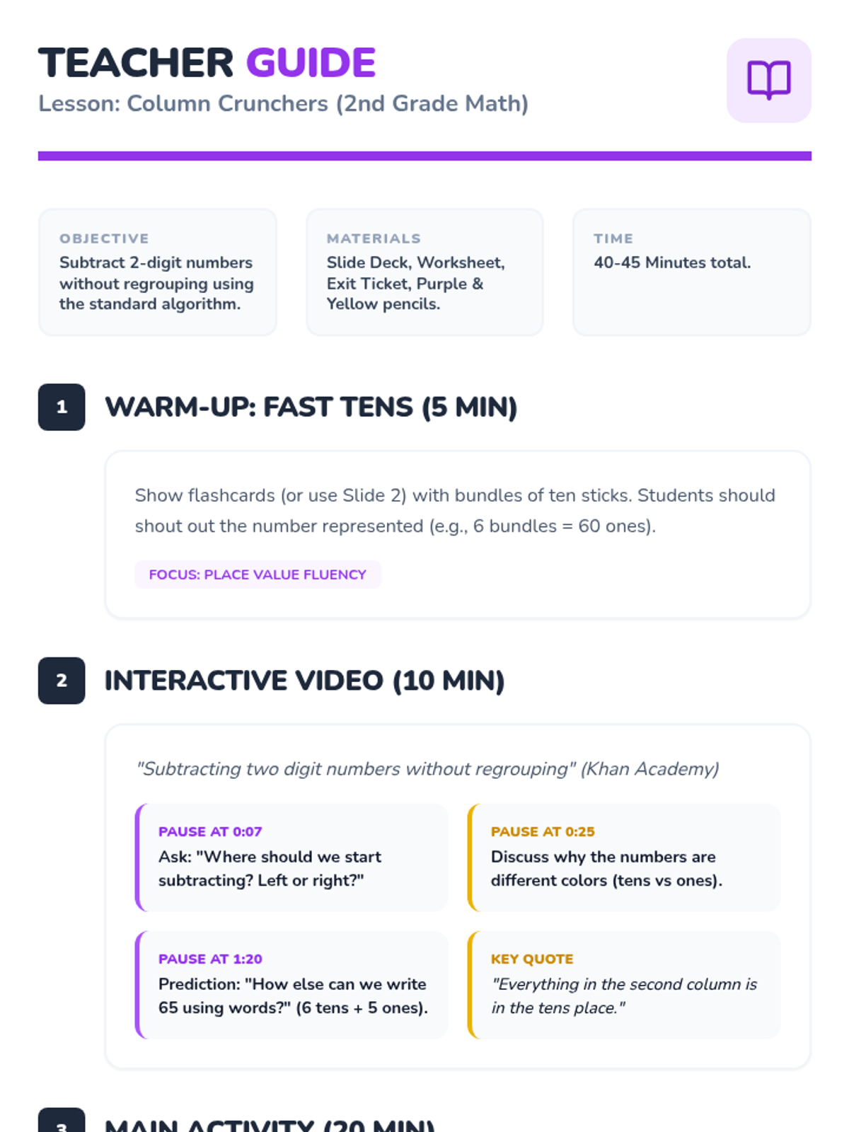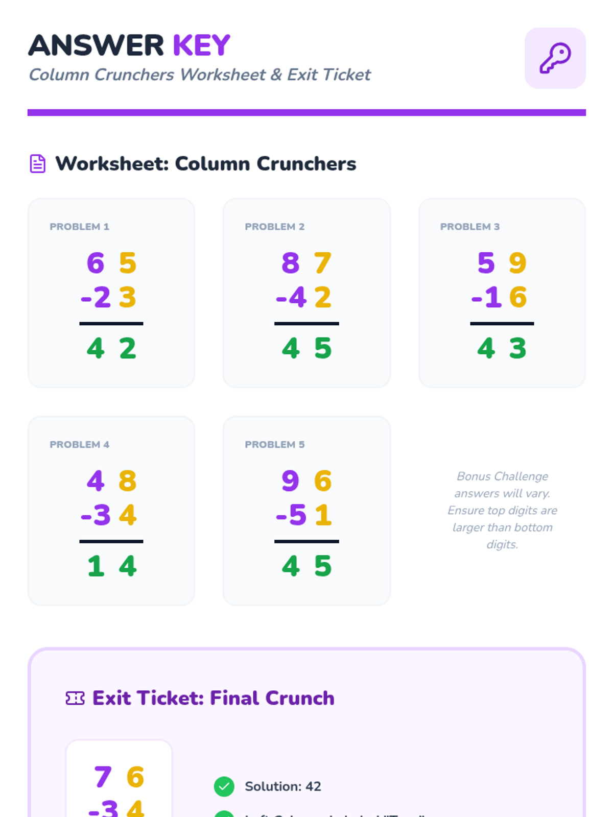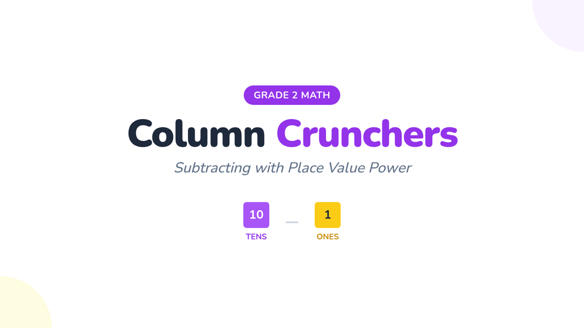 A focused lesson on 3-digit subtraction where students practice regrouping from the tens place to the ones place. includes a visual-heavy worksheet and an answer key.
