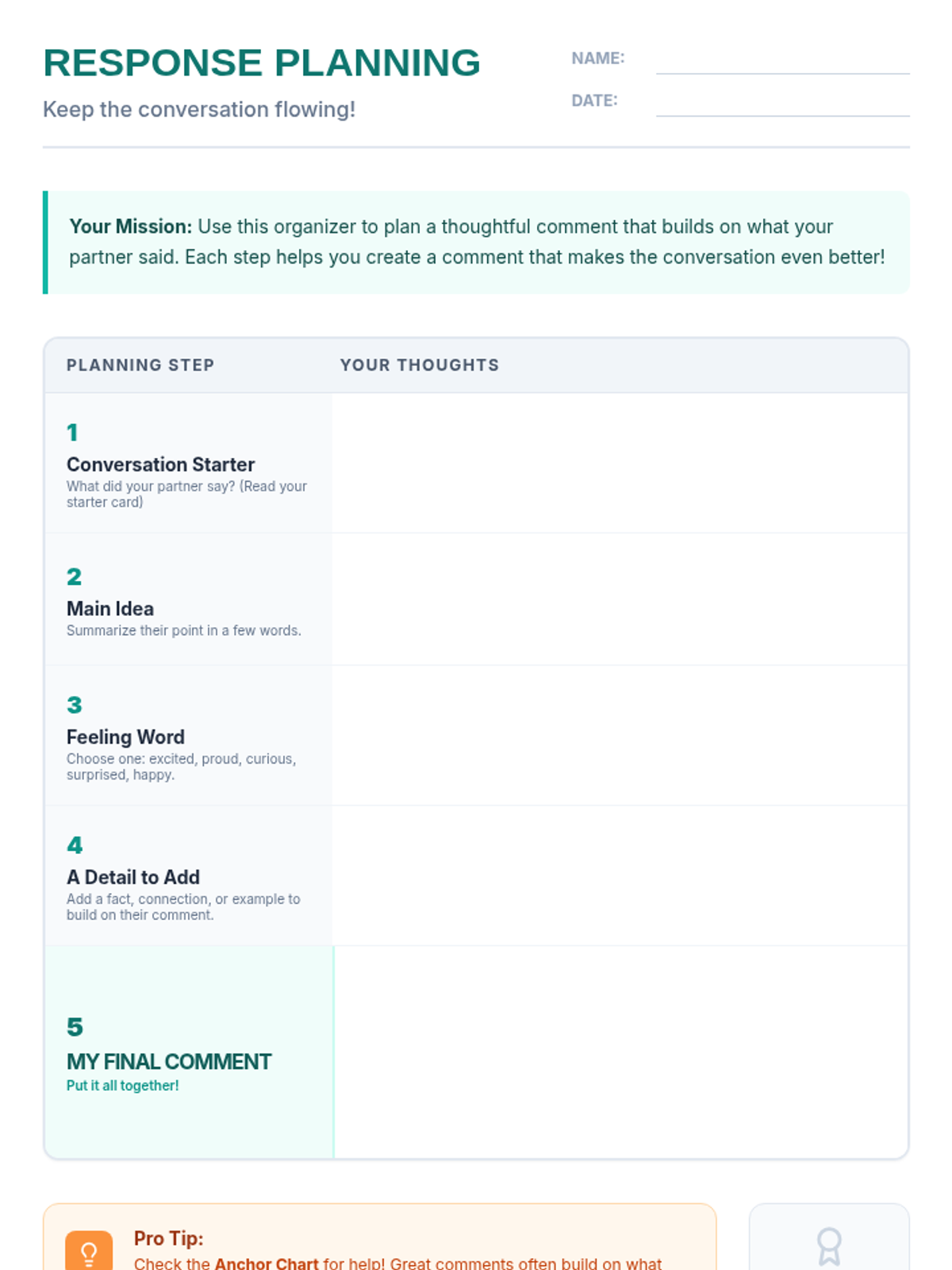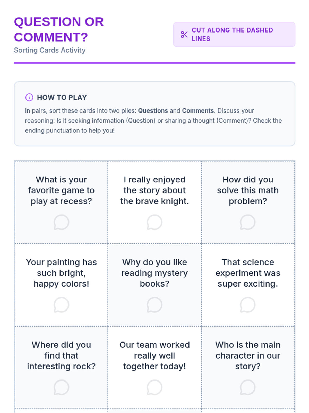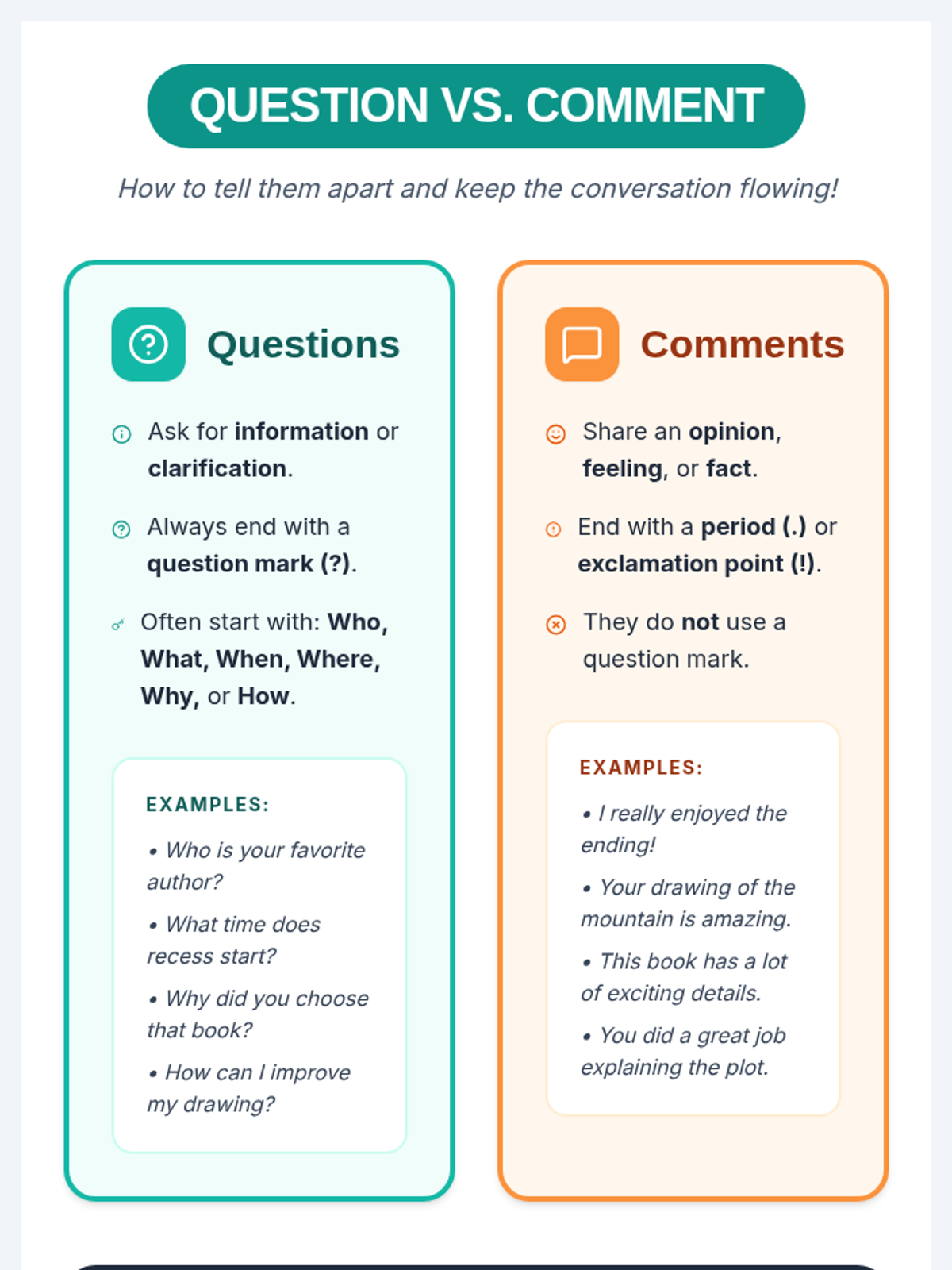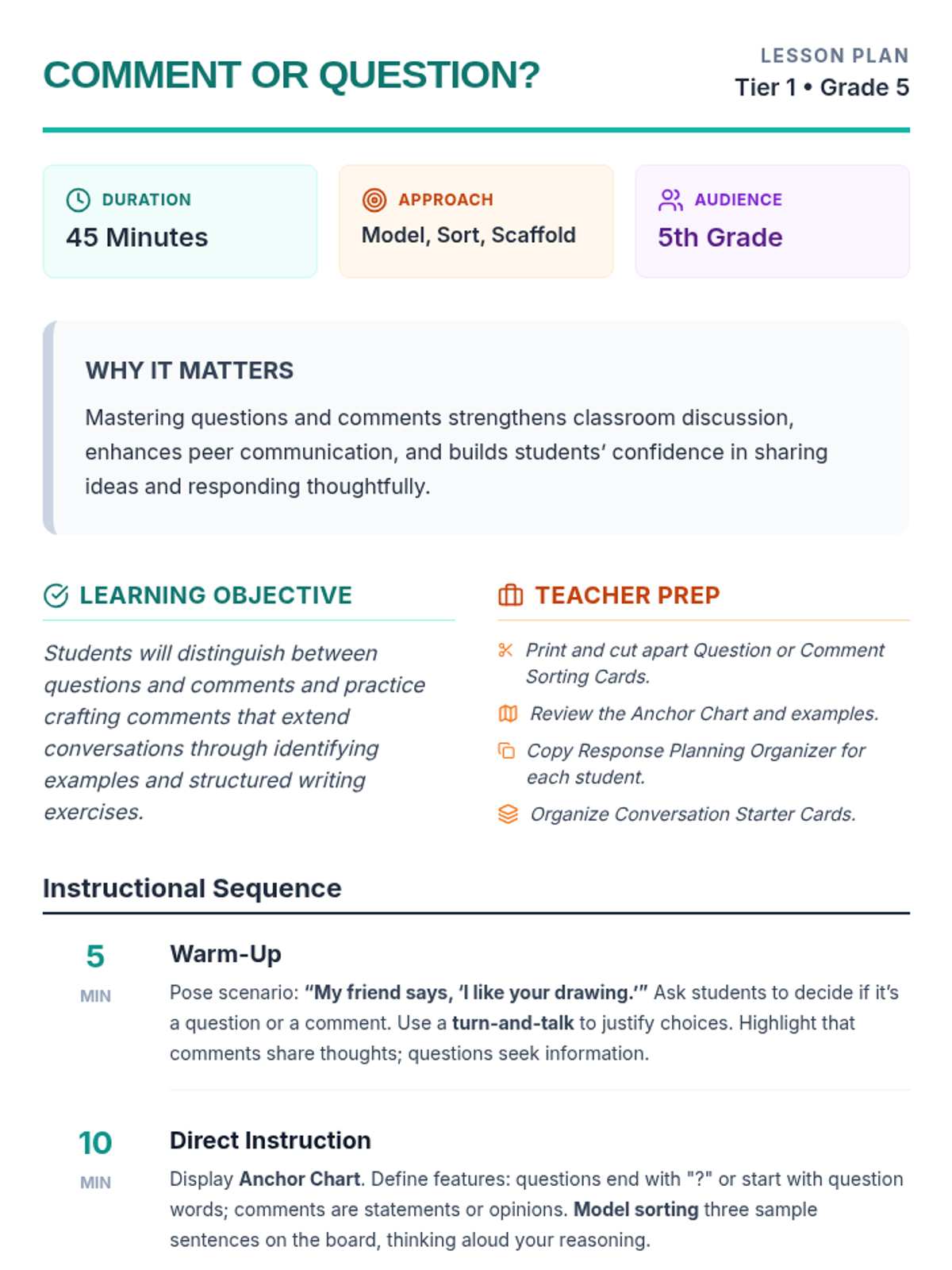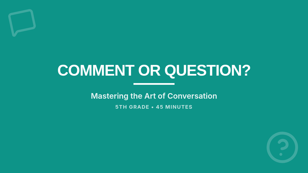 A 45-minute lesson for 5th graders to distinguish between questions and comments, and learn how to craft responses that keep conversations flowing.