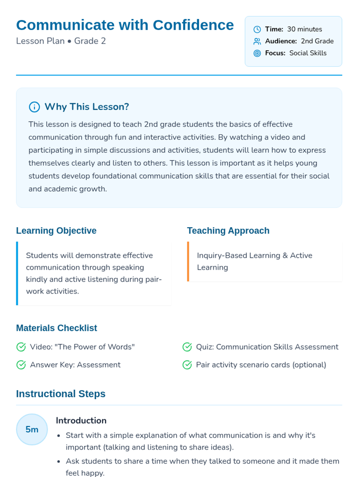 This lesson teaches 2nd grade students foundational communication skills, including clear expression and active listening, through interactive activities and discussion.
