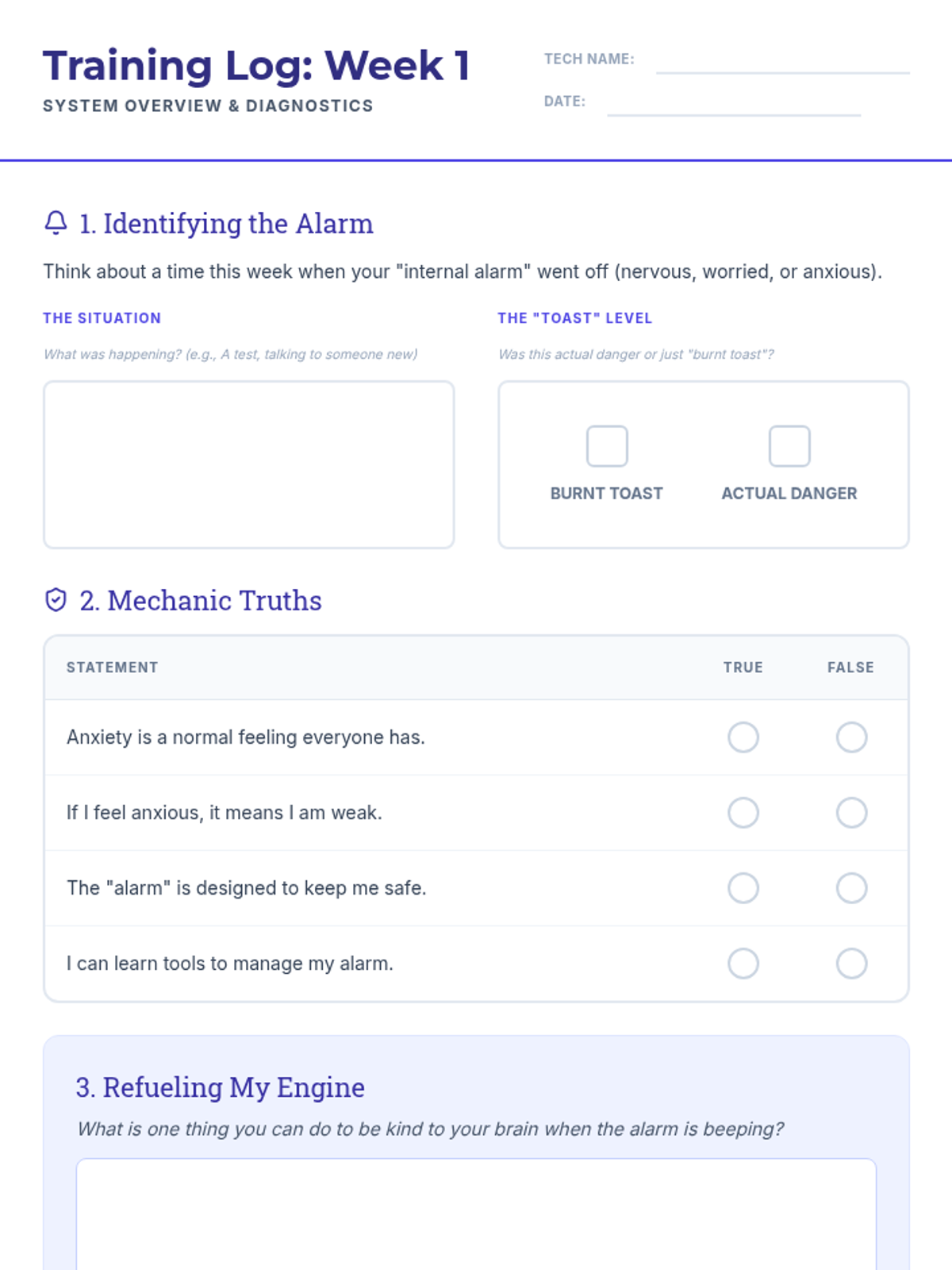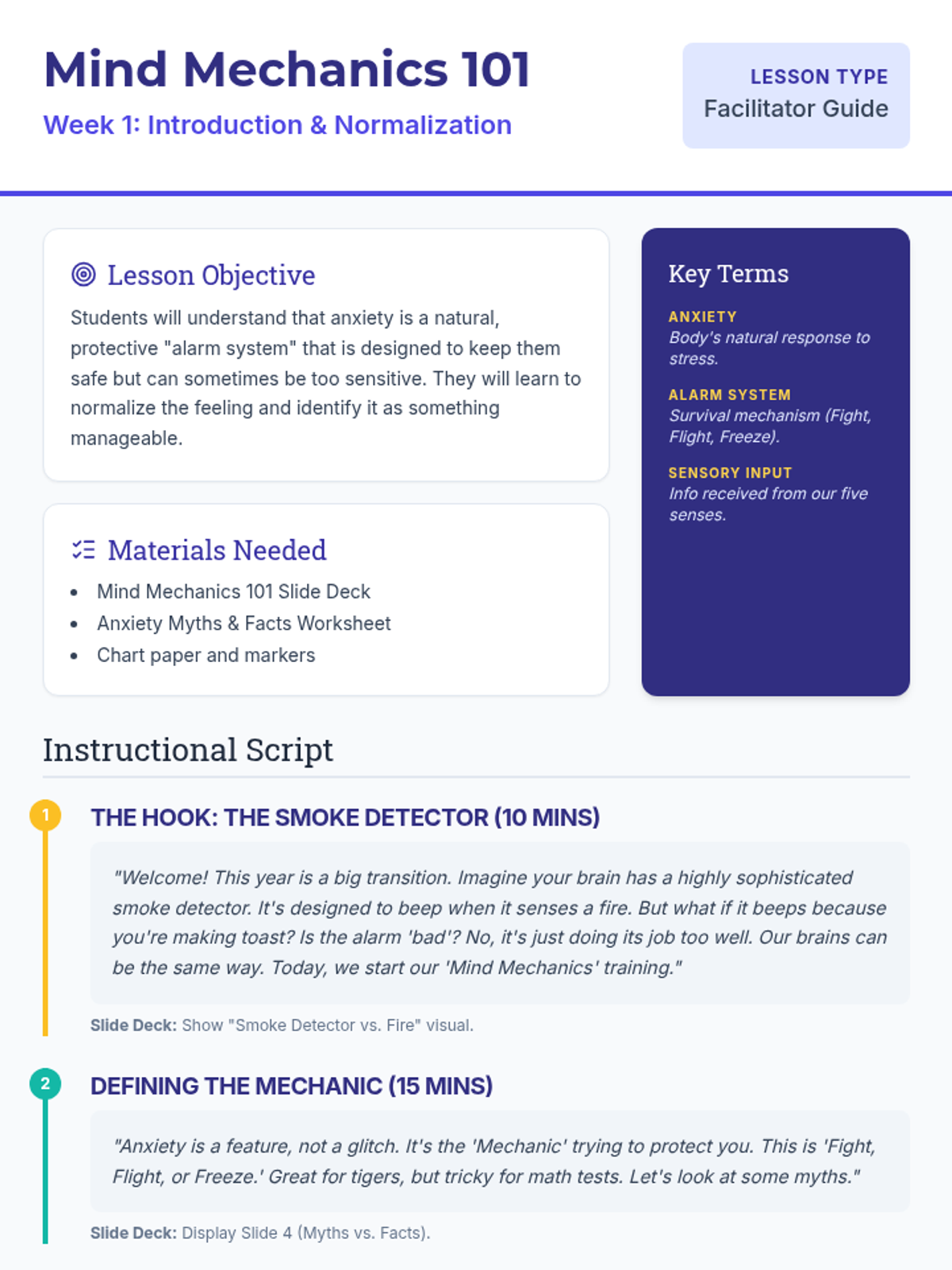 Focused on helping students recognize the physical sensations of anxiety in their bodies through 'sensor' mapping.