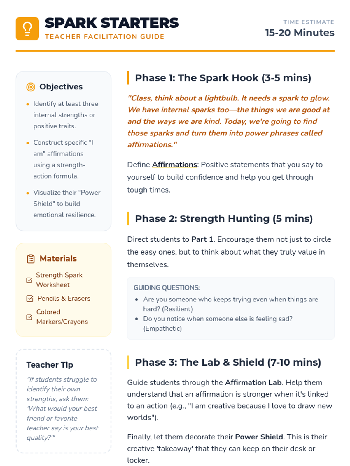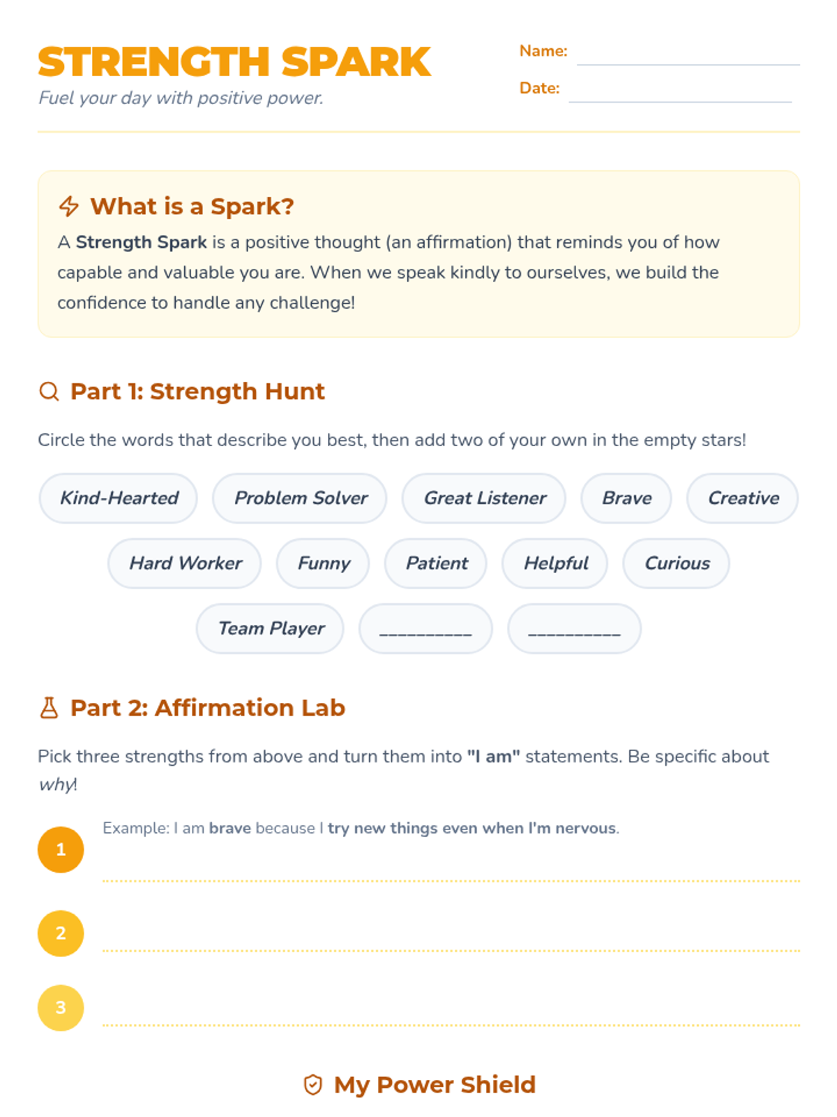 A social-emotional learning lesson focused on helping students identify their internal strengths and transform them into positive daily affirmations.