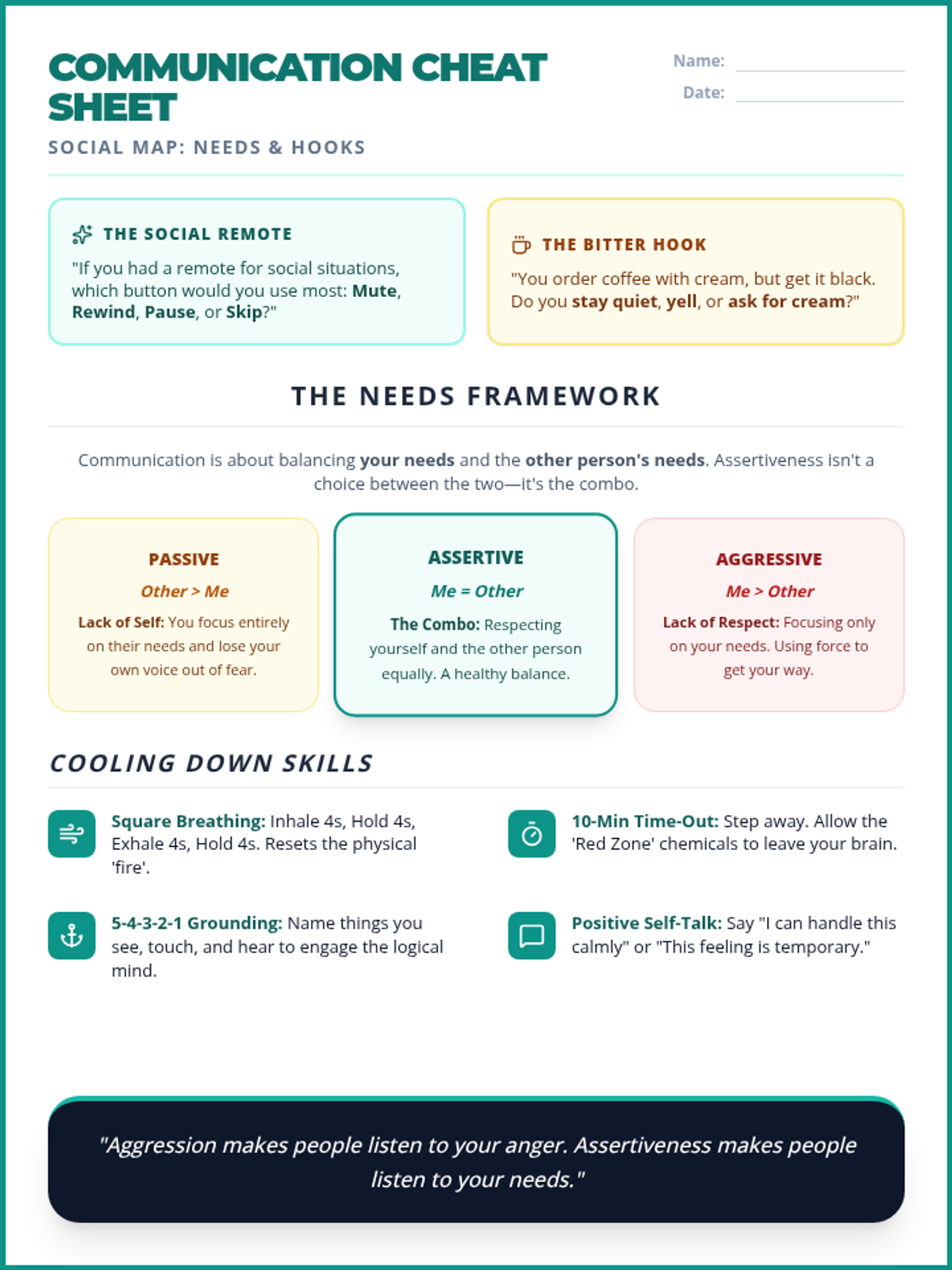 A high-energy, 30-minute coaching session focused on five critical self-advocacy scenarios. Includes role-play, visual aids, and practical toolkits for immediate application in real-world settings.