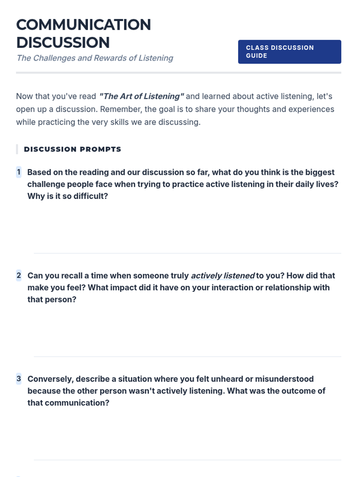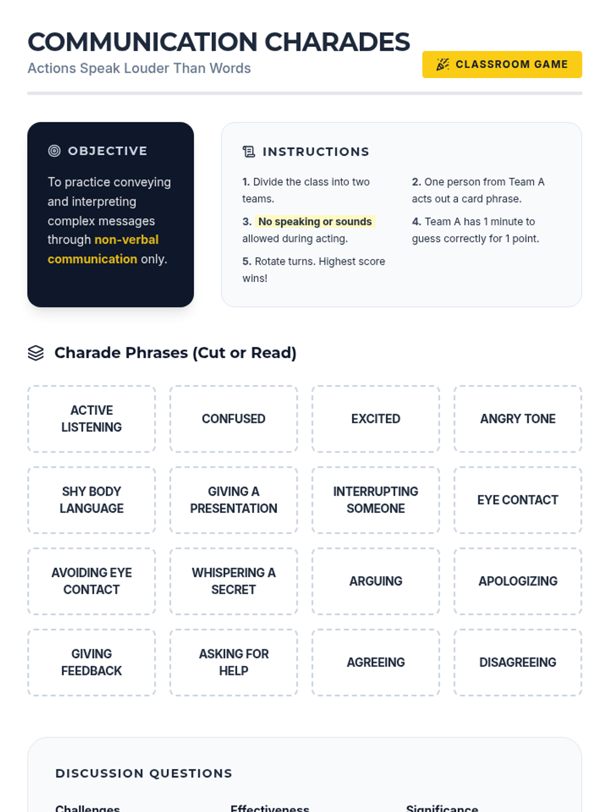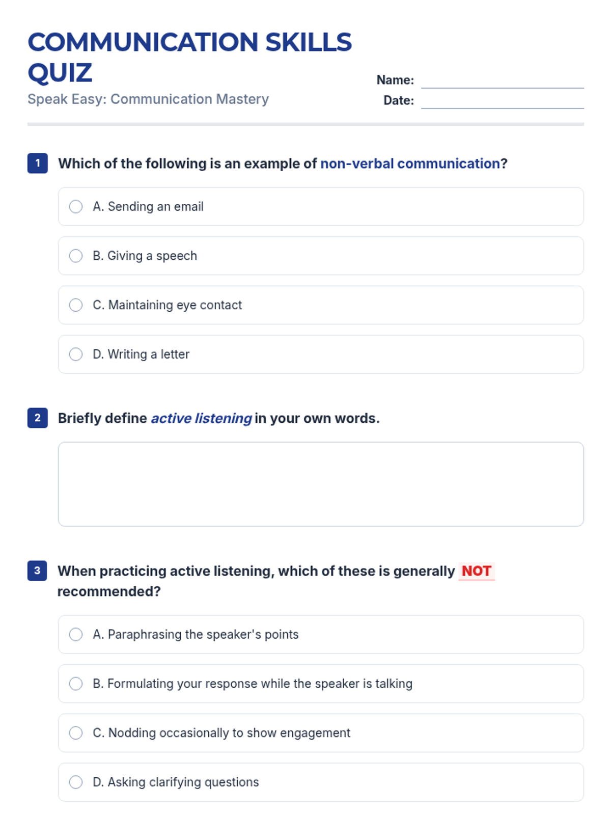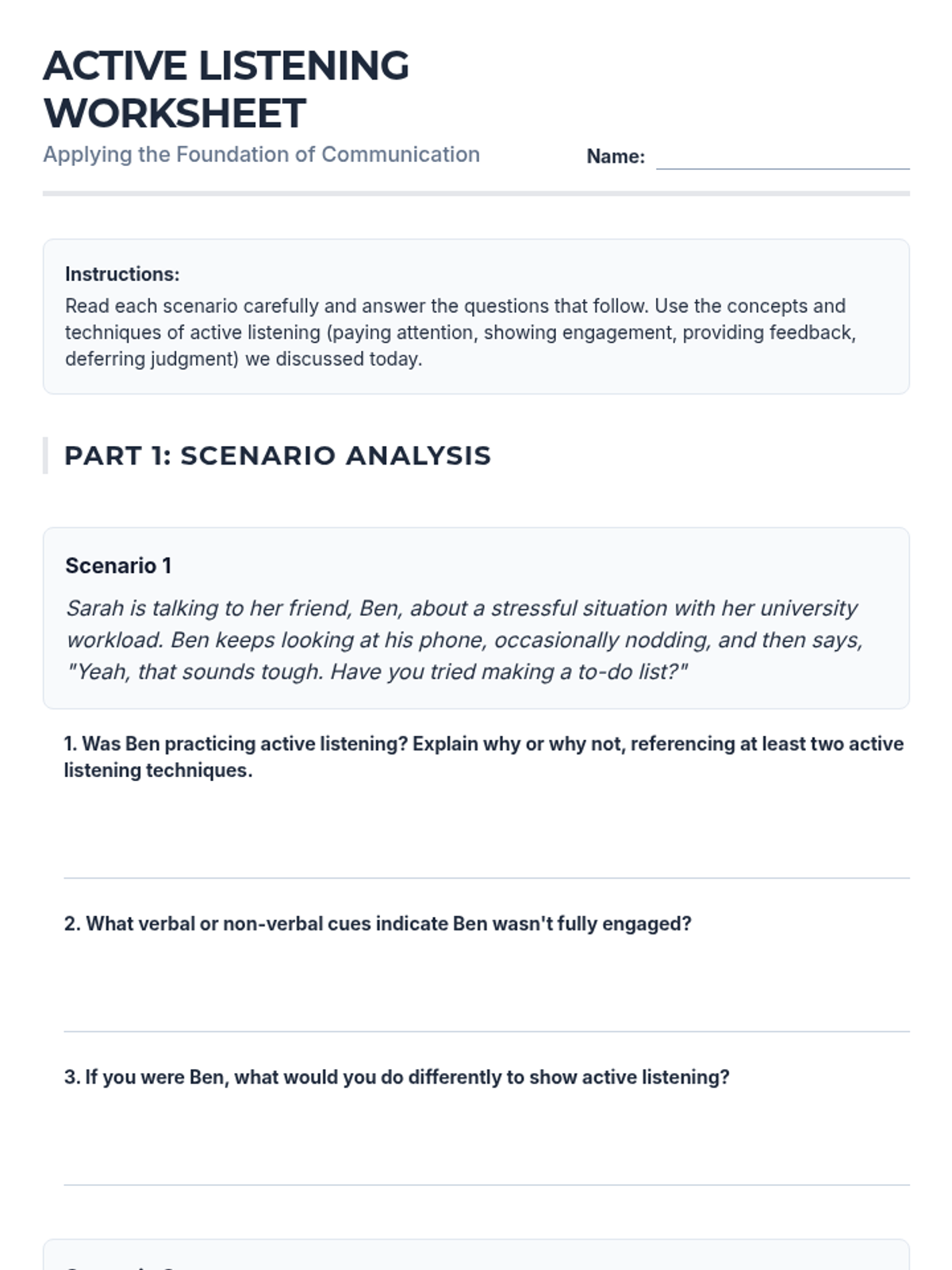 A 60-minute interactive lesson for university students focusing on essential verbal, non-verbal, and active listening skills for academic and professional success.