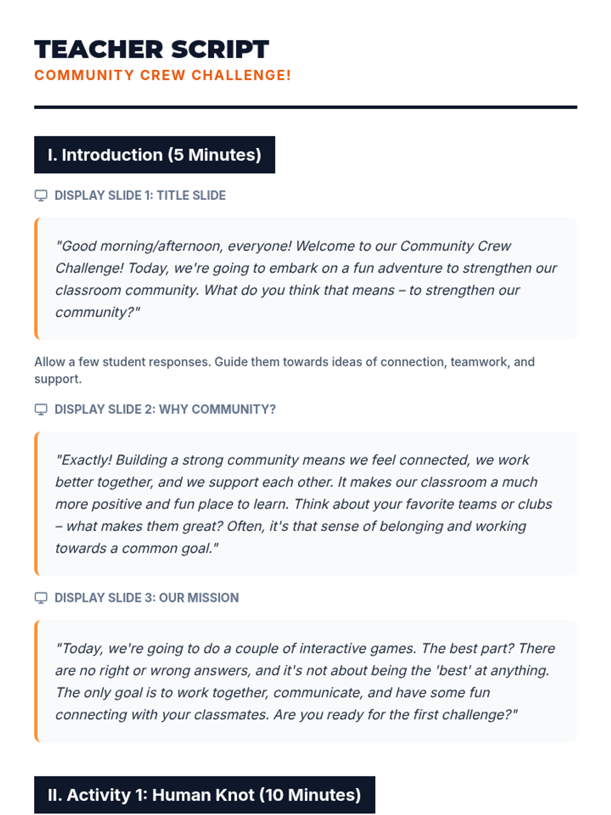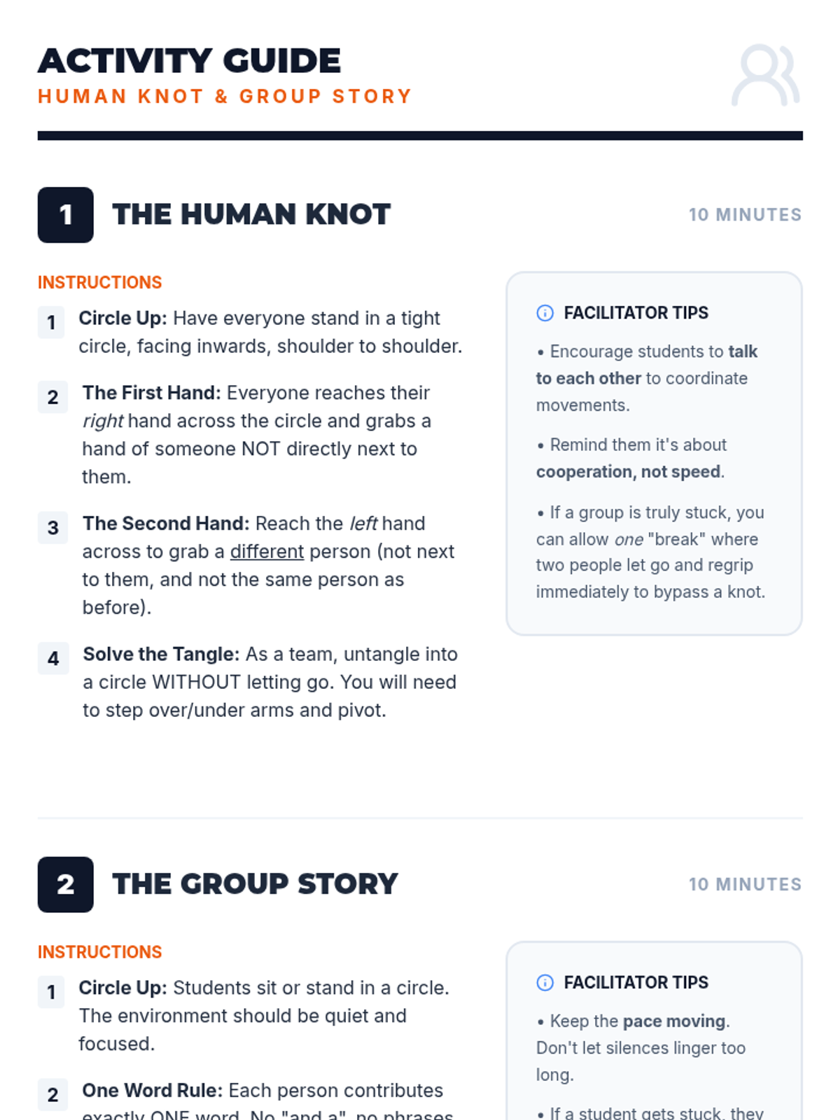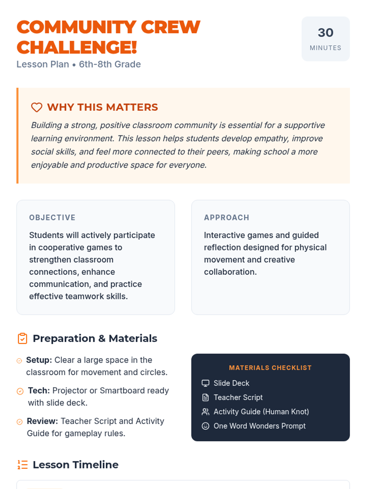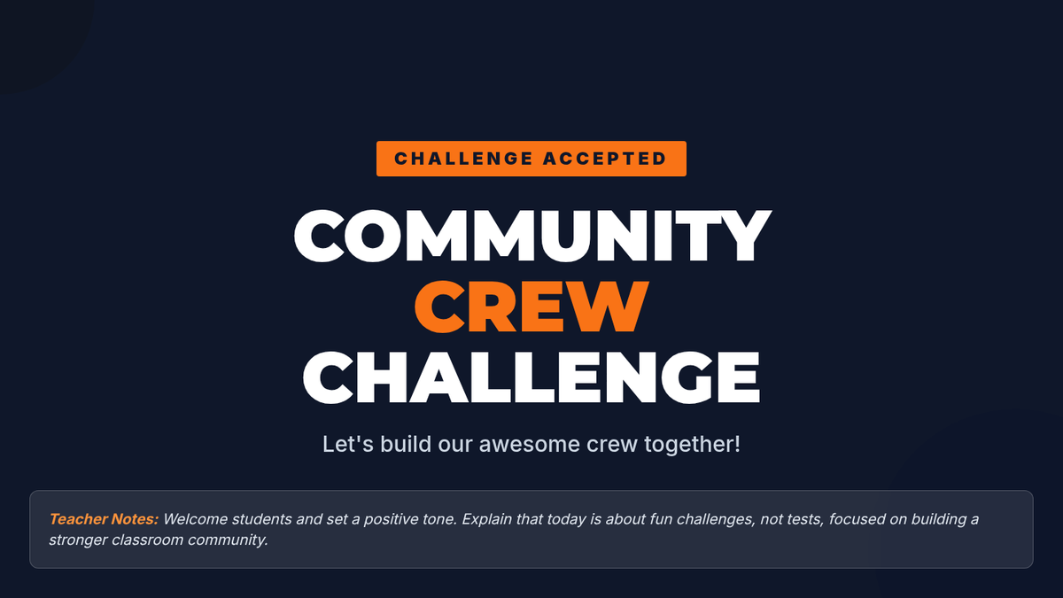 A 30-minute interactive lesson for 6th-8th graders designed to strengthen classroom community through cooperative games and shared storytelling. Students practice communication, problem-solving, and empathy in a low-stakes, fun environment.