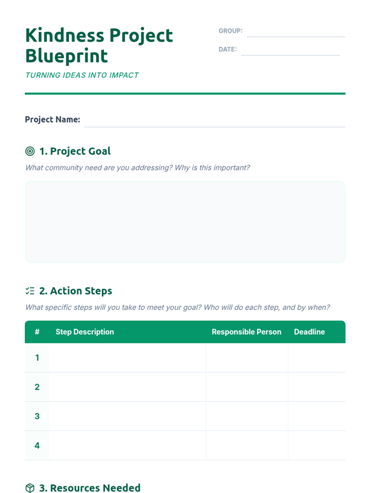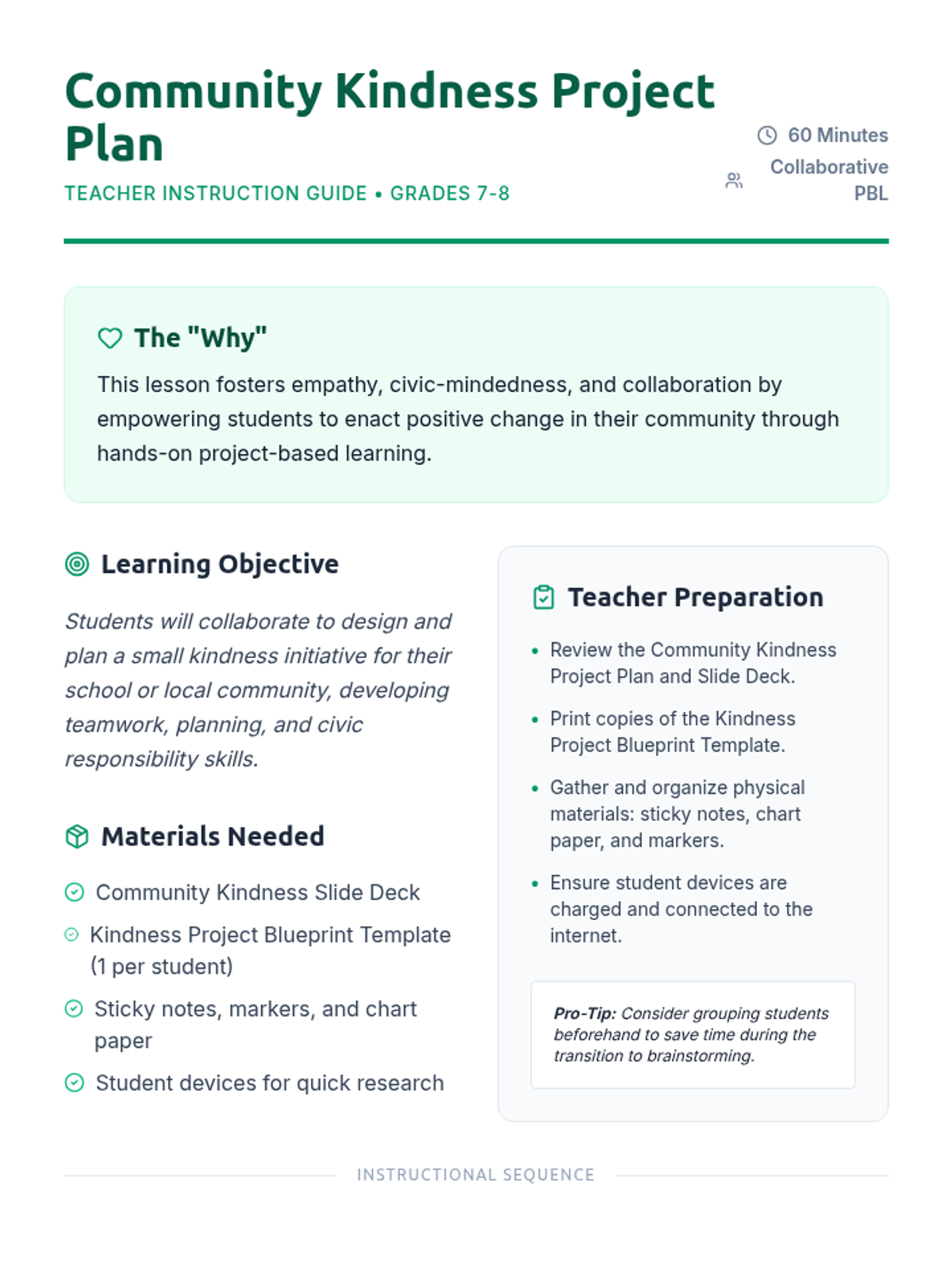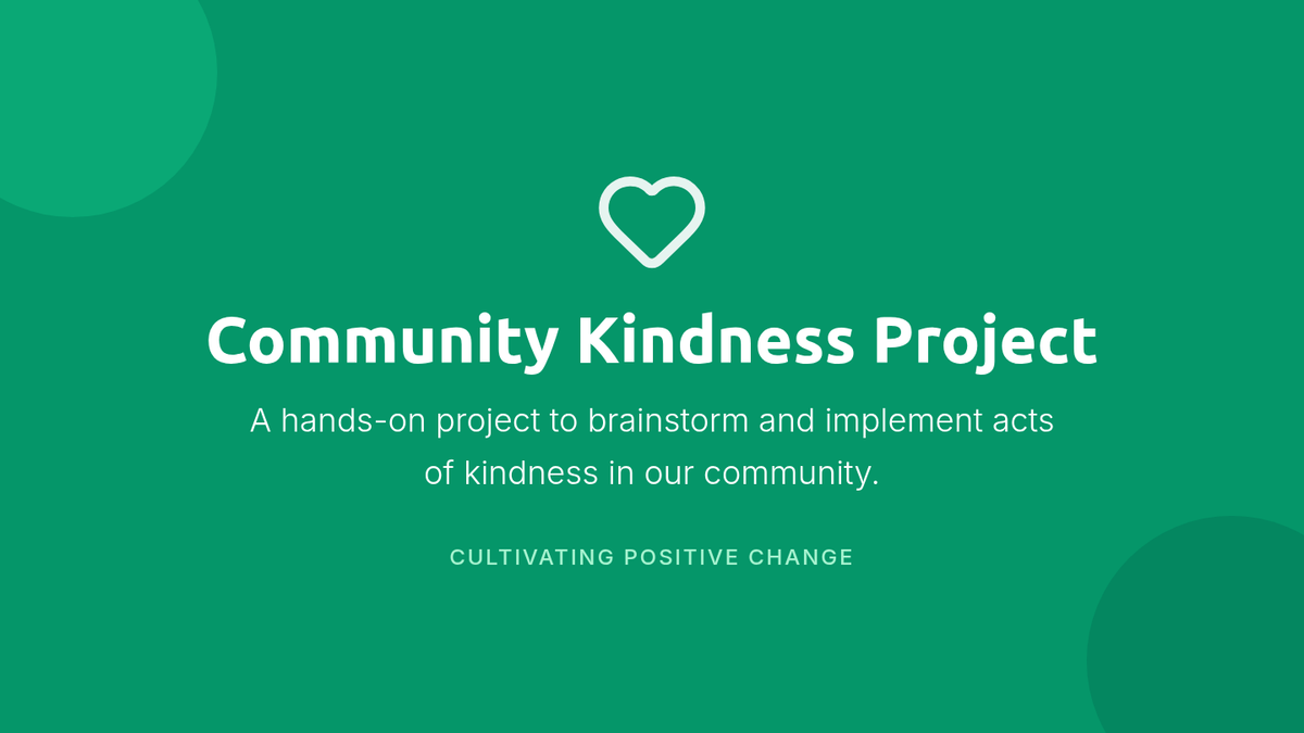 Students collaborate to design and plan a small kindness initiative for their school or local community, developing teamwork, planning, and civic responsibility skills.