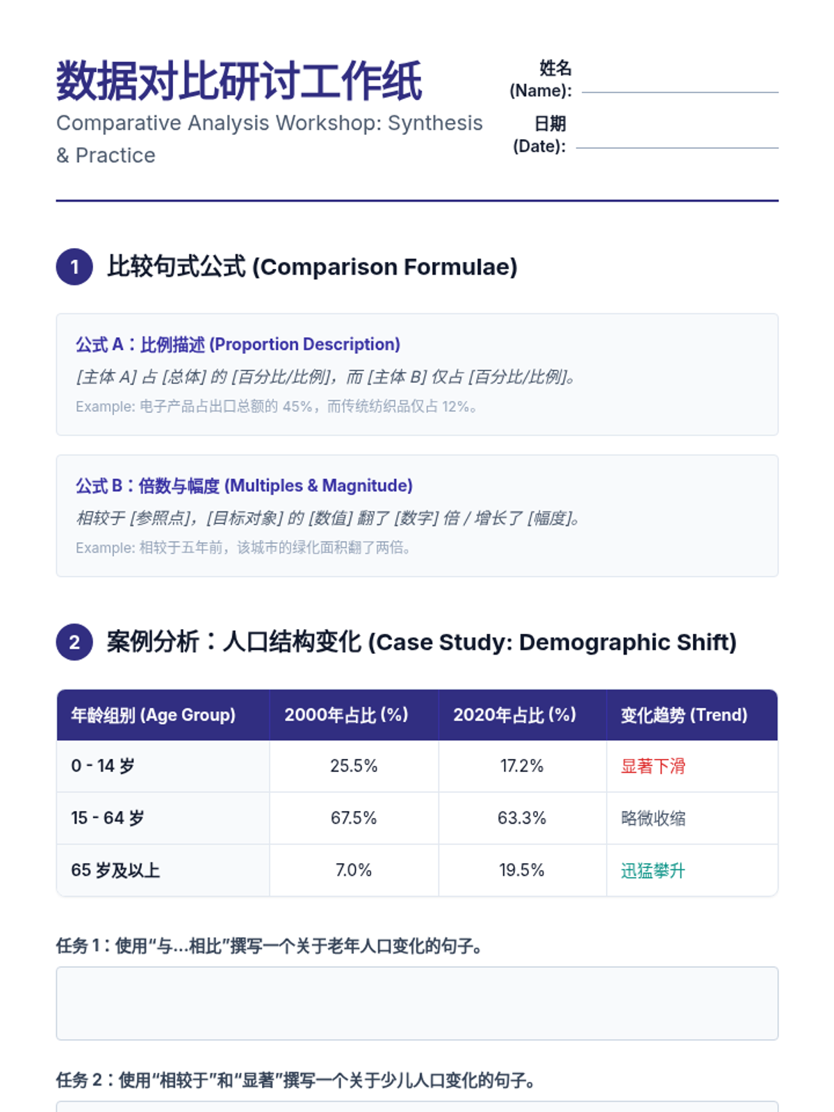 Focuses on complex comparison sentence structures and ratio descriptions to analyze differences between multiple data sets.