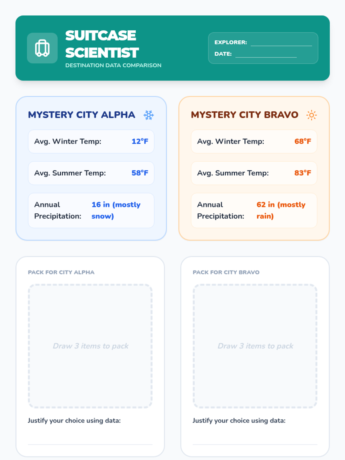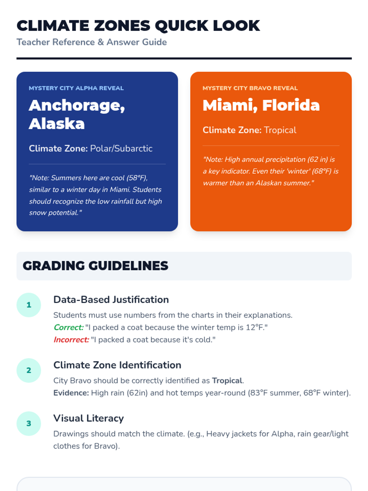 Students move from local to global analysis by comparing weather data between distinct climate zones (e.g., Arctic vs. Tropical). They investigate how geographic location influences temperature ranges and seasonal variations.