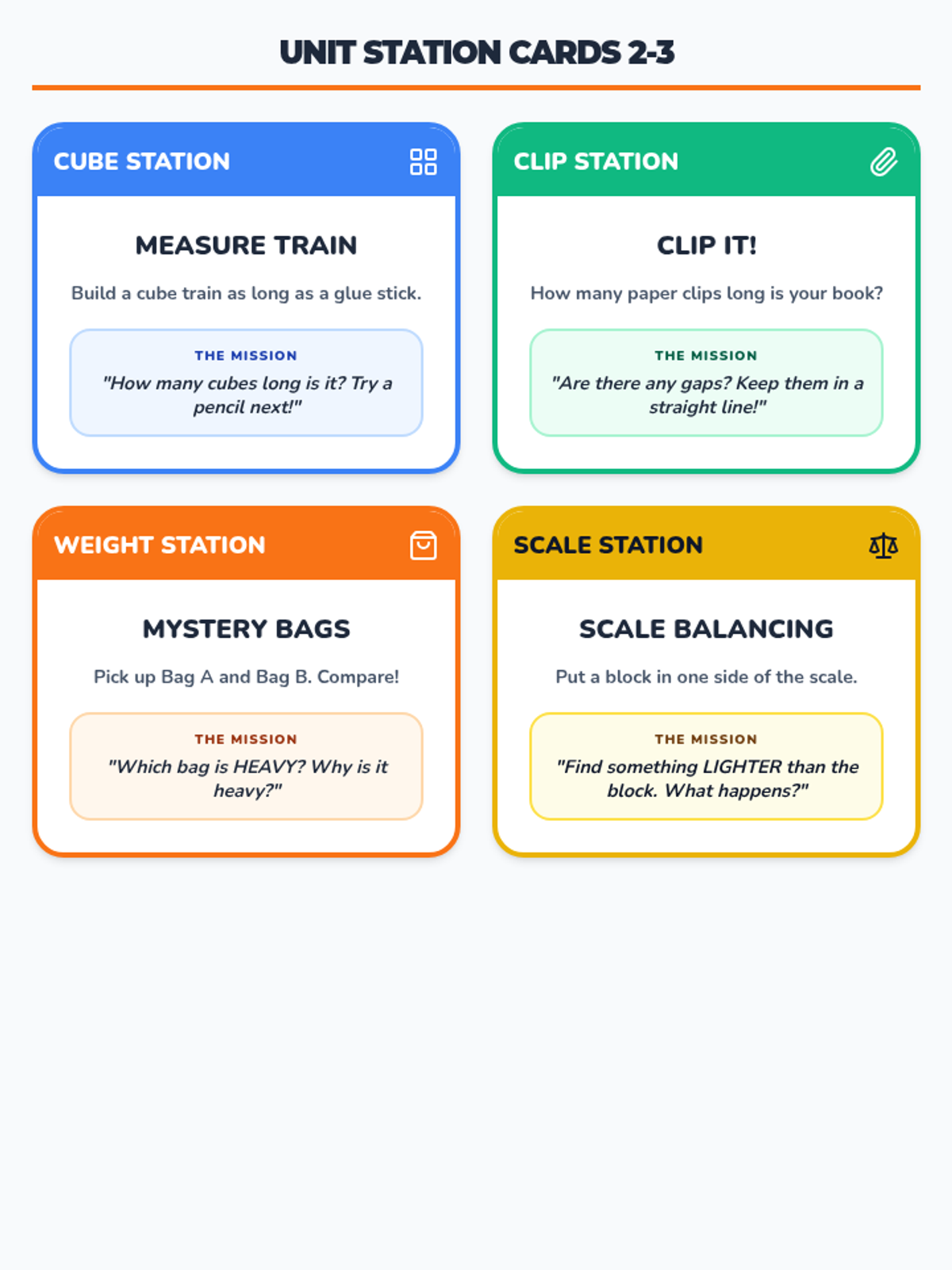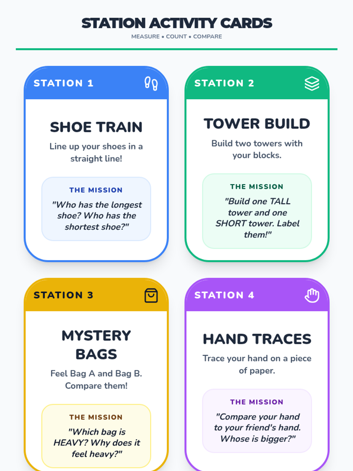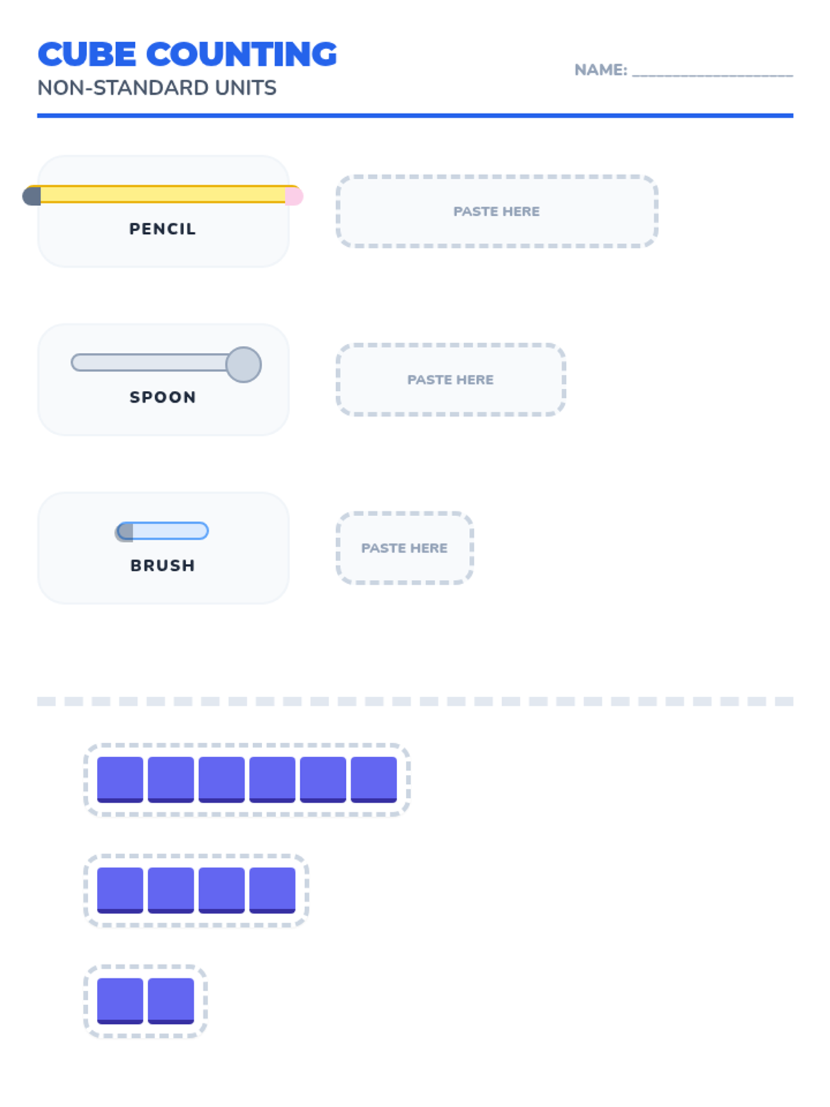 Learning to measure objects using non-standard units like snap cubes, paper clips, and handprints.