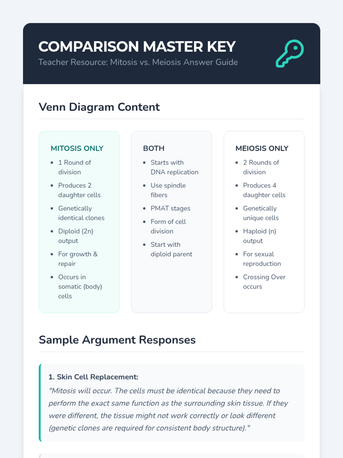 A comparative analysis of mitosis and meiosis, focusing on the purposes, outputs, and genetic variation of each process.