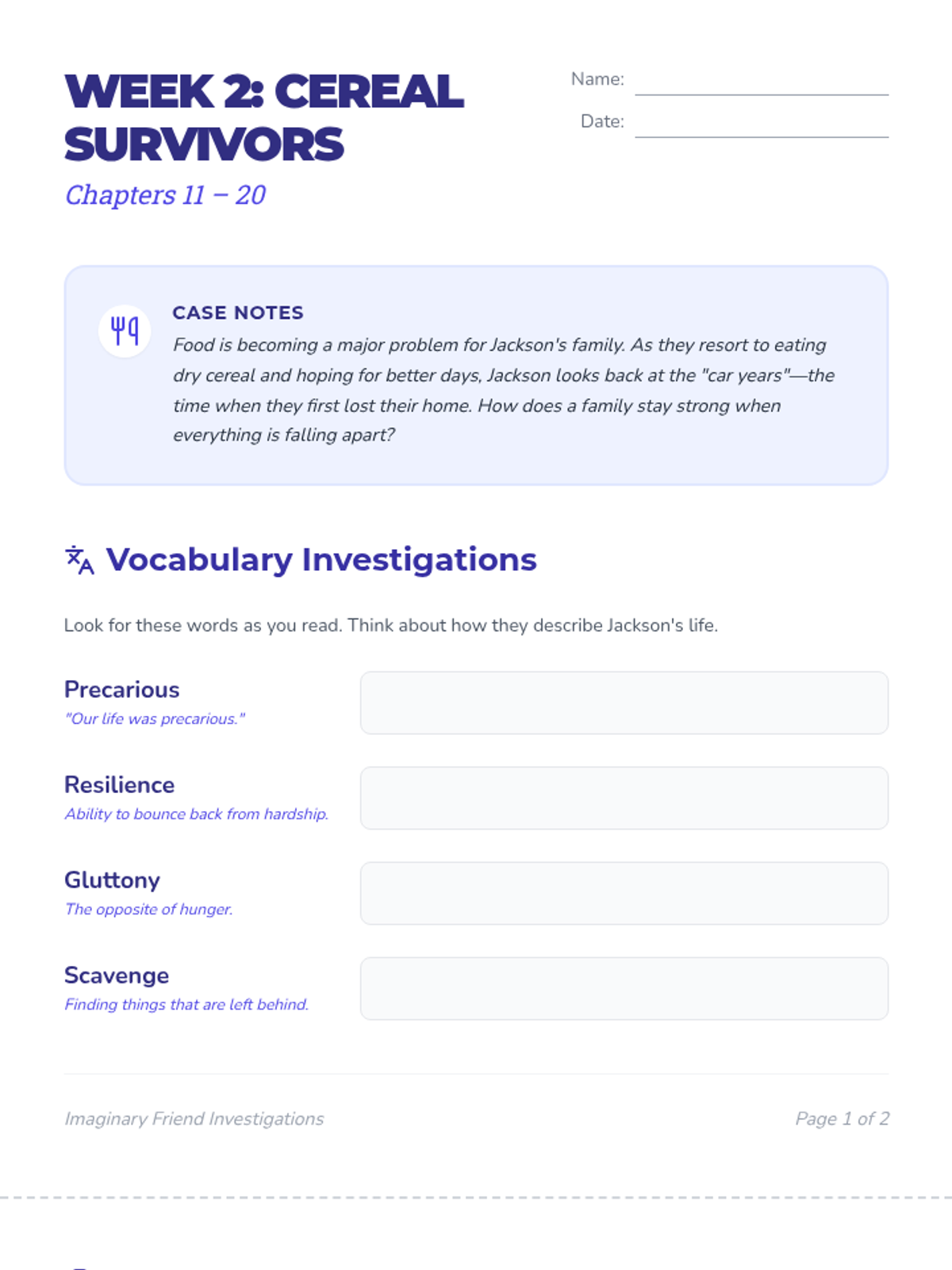Jackson struggles with his family's financial situation as he reads chapters 11-20.